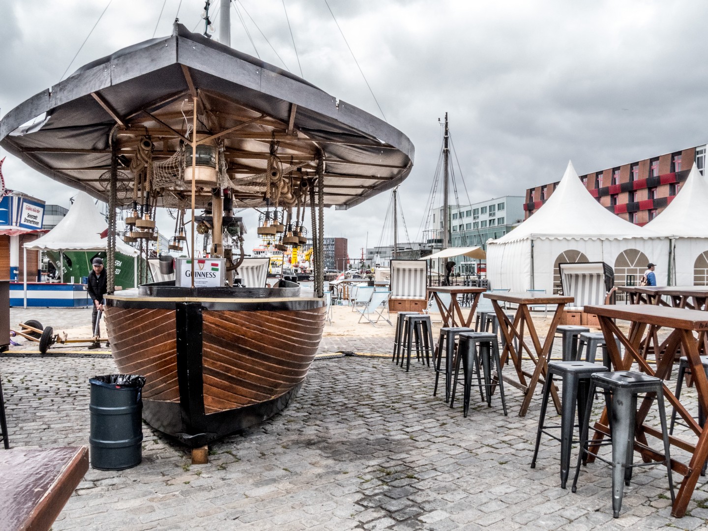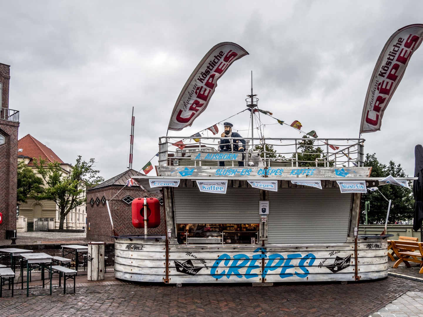 C’est le restaurant et café du Musée de l’Immigration. Sa position sur les bords du Neuer Hafen en fait un chouette endroit pour y boire un verre ou manger un morceau, surtout si le soleil est de la partie et que la terrasse est déployée. Malheureusement pour nous, la météo était à la pluie. La salle reste néanmoins chaleureuse, tout en bois. Sur la carte, on trouve toute une section de plats bios avec une belle sélectionne végane mais aussi, évidemment, du poisson, dont la soupe de poisson à la brêmoise et les maatjes, qui sont de jeunes harengs qui n’ont pas encore produit de laitance. Une spécialité hollandaise mais qui essaimé sur notre pourtour de Mer du Nord, de Belgique en Allemagne. Vous le trouverez sur chaque carte de restaurant ! Une cuisine simple, copieuse, où tout le monde trouvera son compte.