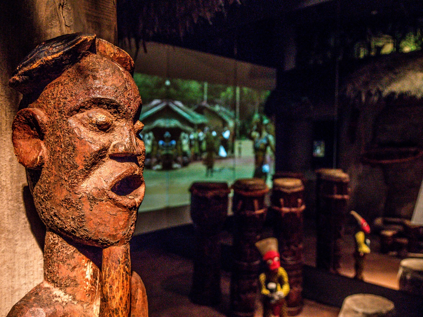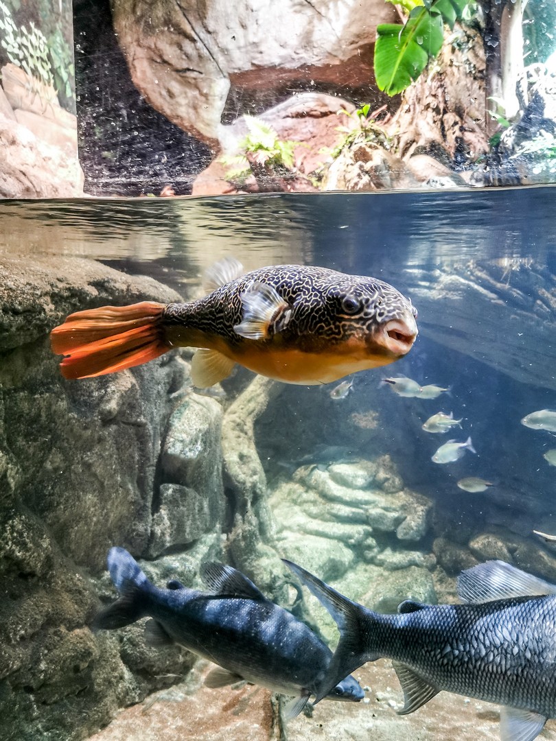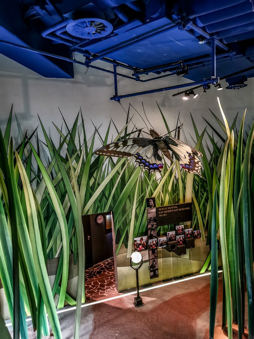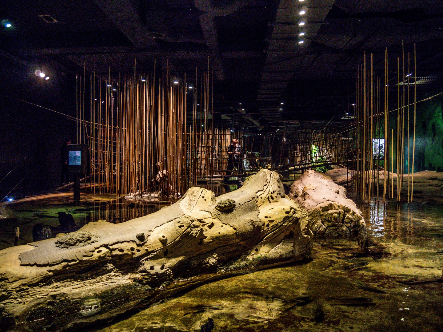 Dans la station « Cameroun », on nous invite à traverser la jungle la nuit, avec un minimum de lumière et baigné par les sons de la forêt. Les environnements aquatiques sont aussi reconstitués. Que ce soit un fleuve africain ou la barrière coralienne d’une île des Samoa.
