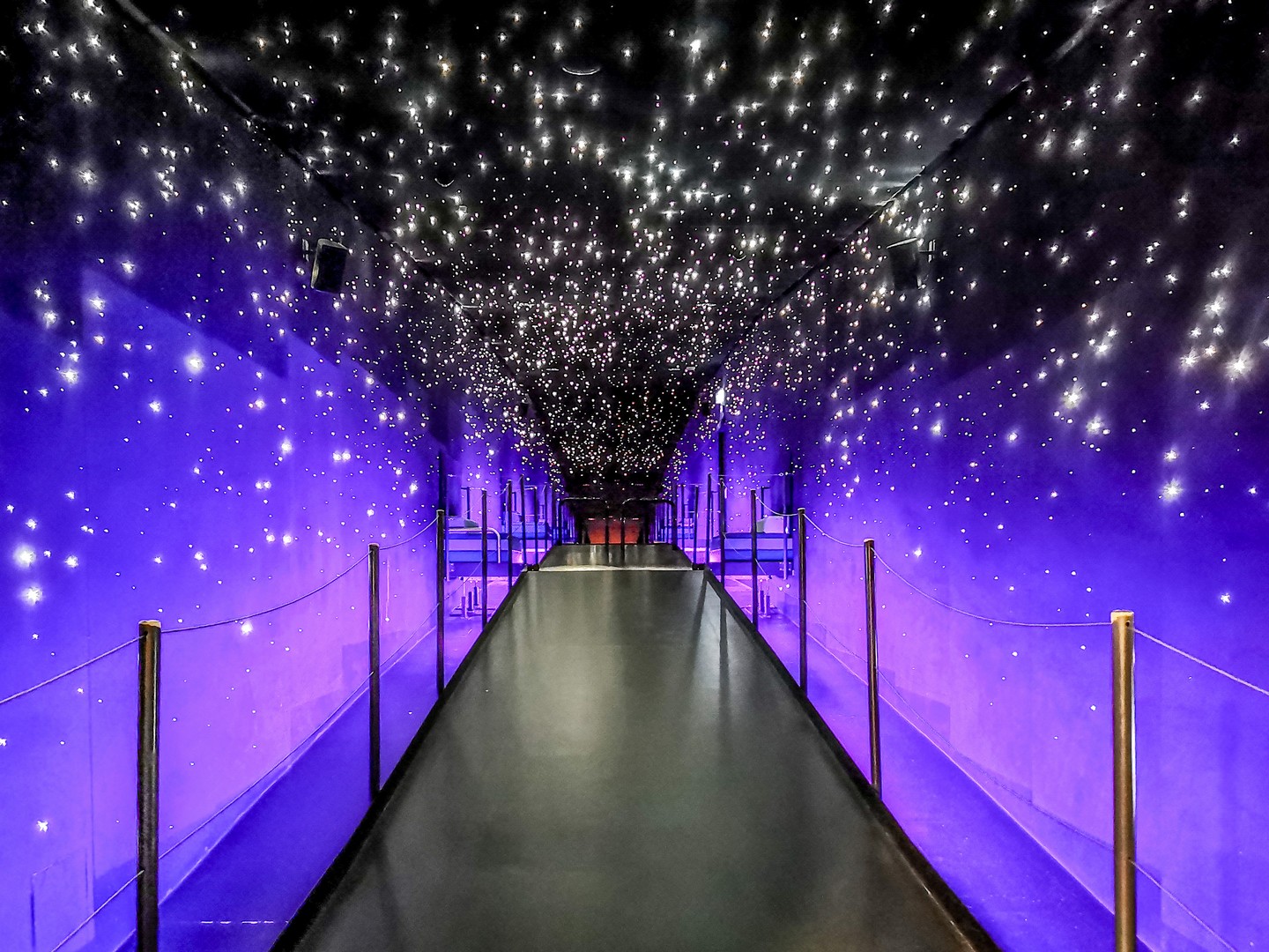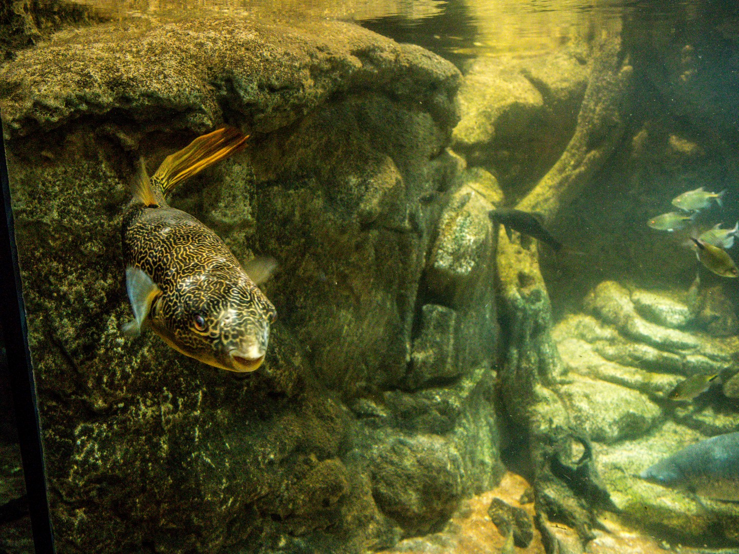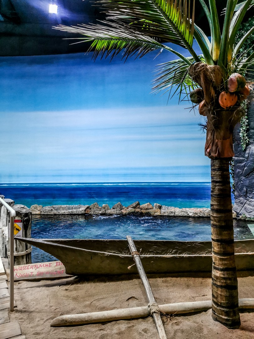 Dans la station « Cameroun », on nous invite à traverser la jungle la nuit, avec un minimum de lumière et baigné par les sons de la forêt. Les environnements aquatiques sont aussi reconstitués. Que ce soit un fleuve africain ou la barrière coralienne d’une île des Samoa.