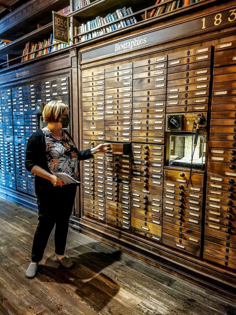 Comme vous le voyez, tout le parcours de l’immigrant.e est reproduit avec forces détails mais il y a bien plus que çà : les témoignages de celleux qui ont fait le voyage et qui ont prospéré, pour la plupart. Certains l’ont regretté (souvent les conjointes un peu forcées de suivre leur mari) et qui ont gardé dans le cœur la nostalgie du pays. On y trouve aussi une foule d’objets d’époque (des fiches d’enregistrement, des menus et de la vaisselle du bateau…) qui aident à replacer le contexte. Autre aspect intéressant, une salle est dédiée à la recherche généalogique. Les listes de passagers ont été numérisées et il est possible de retrouver ses ancêtres qui ont embarqué à Brême. Une vraie mine d’information !