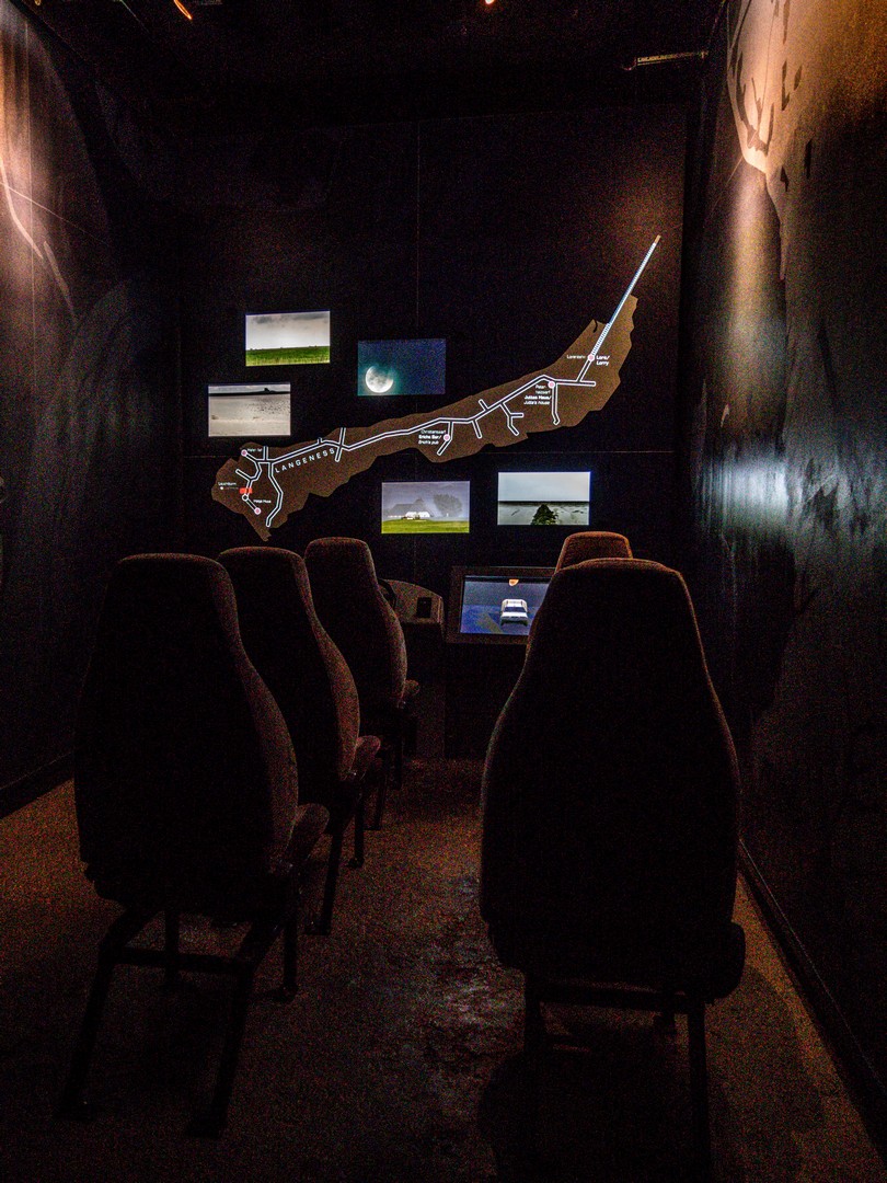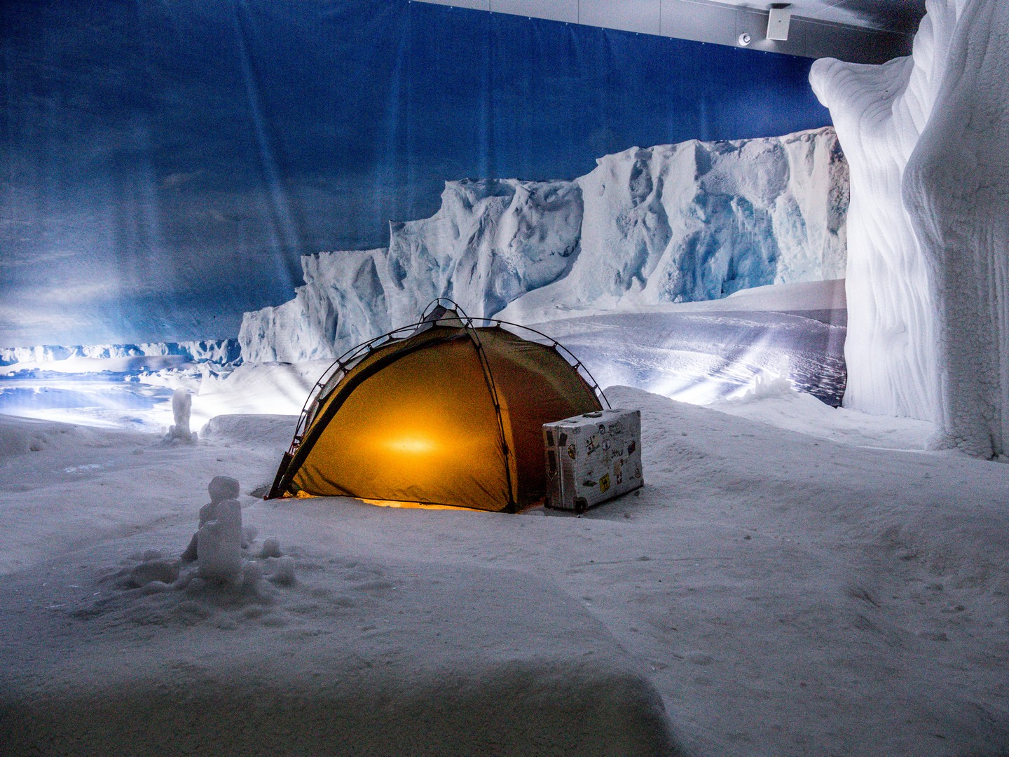 À chaque station, les paysages rencontrés par Axel sont reconstitués mais ça va beaucoup plus loin ! Il y a d’abord une reconstitution même des climats : l’air est frais et pétillant dans les Alpes suisses, très chaud et sec dans le Sahara, humide et chaud dans la forêt du Cameroun, glacial en Antarctique. Les odeurs sont aussi utilisées, comme le linge qui pend en Sardaigne et qui sent la lessive fraîche. Un linge qui a bien du mal à rester propre à cause des vents de plus en plus fréquents et transportant du sable d’Afrique. Dans la station représentant le coin du Niger visité par Axel, une grande salle reproduit une photo prise par l’explorateur : une grande étendue sableuse avec un arbre rabougri au coucher du soleil. En s’étendant sur des matelas à terre, on peut regarder un documentaire filmé sur les Touaregs qui expliquent que leurs territoires deviennent de plus en plus secs et qu’il est de plus en plus difficile de vivre dans le désert.