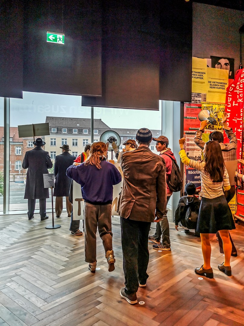 En miroir de ces départs massifs vers d’autres horizons, une partie du musée est aussi consacrée à celleux qui ont quitté leurs pays pour venir s’établir en Allemagne, des migrations choisies des années 60 aux vagues migratoires récentes dues aux guerres, à la répression ou rêve de mener une vie meilleure, rappelant par là l’universalité du phénomène et de son moteur : l’espoir.