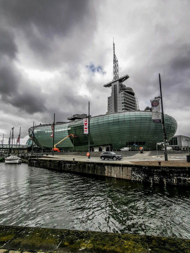 Notre hôtel est situé dans un nouveau quartier, construit sur une digue, qui rassemble pas mal d’attractions à Bremerhaven : Havenwelten Bremerhaven. En plus de l’hôtel, on y trouve une marina, des cafés, des restaurants, le Musée maritime, le musée historique, le musée de l’Immigration et la Klimahaus. Bref, c’est un peu LE pôle d’attraction de la ville. Celui qui en mettre plein les mirettes aux visiteurs et visiteuses. Et on ne va pas tarder à l’explorer.