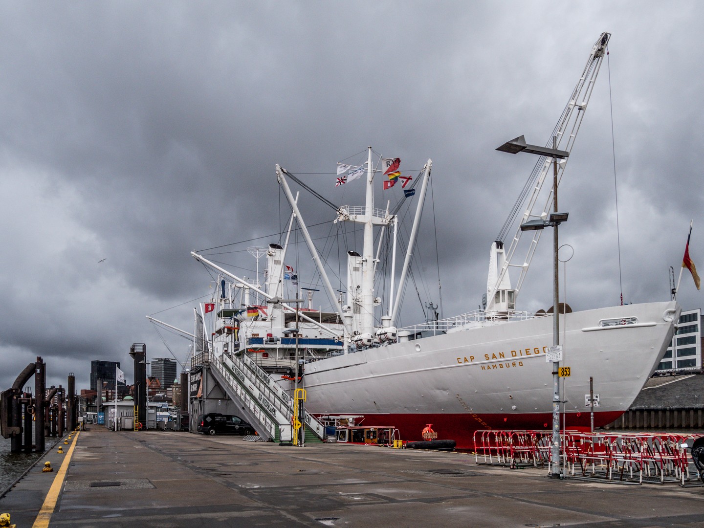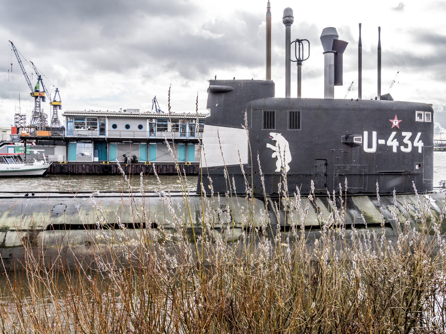 Le U-434 (désignation soviétique B-515) était utilisé pour des missions d’espionnage le long de la côte est des Etats-Unis mais patrouillait également les eaux territoriales de l’URSS. Ce sous-marin de classe « Tango » (apparemment, une classe rare du genre), fut construit dans un chantier naval de Nijni Novgorod dans les années ‘70. Après 25 ans de services, le sous-marin est mis à la retraite. C’est là qu’intervient Christian Angerman, un pilote d’hélicoptère originaire de Dresde, et qui avait été marqué par la catastrophe du Koursk, ce sous-marin qui avait sombré sans qu’aucun membre de l’équipage ne puisse être sauvé. Une idée lui vint en tête : et si on pouvait montrer aux gens comment était la vie dans un sous-marin à l’époque de la Guerre froide ? Après deux ans de négociations, une douzaine de visite en Russie et pas mal d’argent dépensé avant l’achat, le B-515 est enfin vendu et après avoir été dument débarrassé de ses petits secrets par la marine russe, il sera transporté par un remorqueur, de Mourmansk à Hambourg. Après quelques années à HafenCity, il a trouvé résidence permanente sur les quais de St. Pauli. C’est décidé, c’est ce bateau-musée que nous irons voir ! On franchit la passerelle et « Bonjour, Camarades ! ».