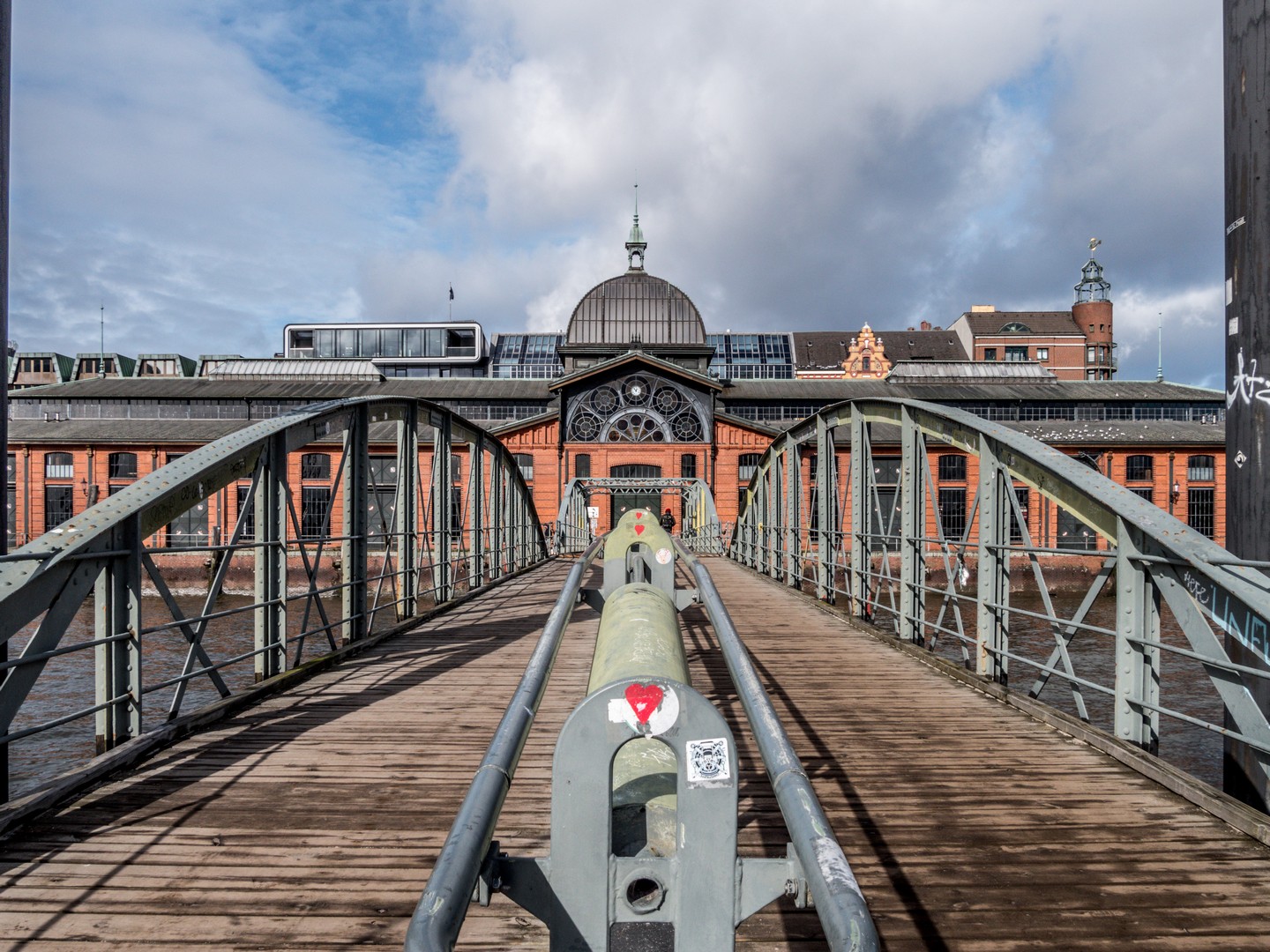 Nous pourrions aller encore plus loin avec la navette fluviale mais nous la reprenons vers le centre de Hambourg par contre, nous ne reviendrons pas jusqu’à notre point de départ. Nous allons quitter le navire à Altona, à la hauteur du Marché aux poissons. Ouvert tôt le dimanche, le Marché vaut à lui seul la visite du quartier d’Altona. Altona a une autre particularité : elle fut longtemps danoise, depuis sa fondation au XVIème siècle jusqu’au XIXème. Fondée par Christian IV du Danemark pour concurrencer Hambourg, elle prospérera bien qu’en ne parvenant pas à éclipser la cité hanséatique. Malheureusement, lorsque nous arrivons, le Marché a déjà fermé. Il ne nous reste qu’à admirer le bâtiment et à regretter de ne pas nous êtres réveillées assez tôt. Du coup, nous décidons de remonter les quais de l’Elbe, en direction de St. Pauli.