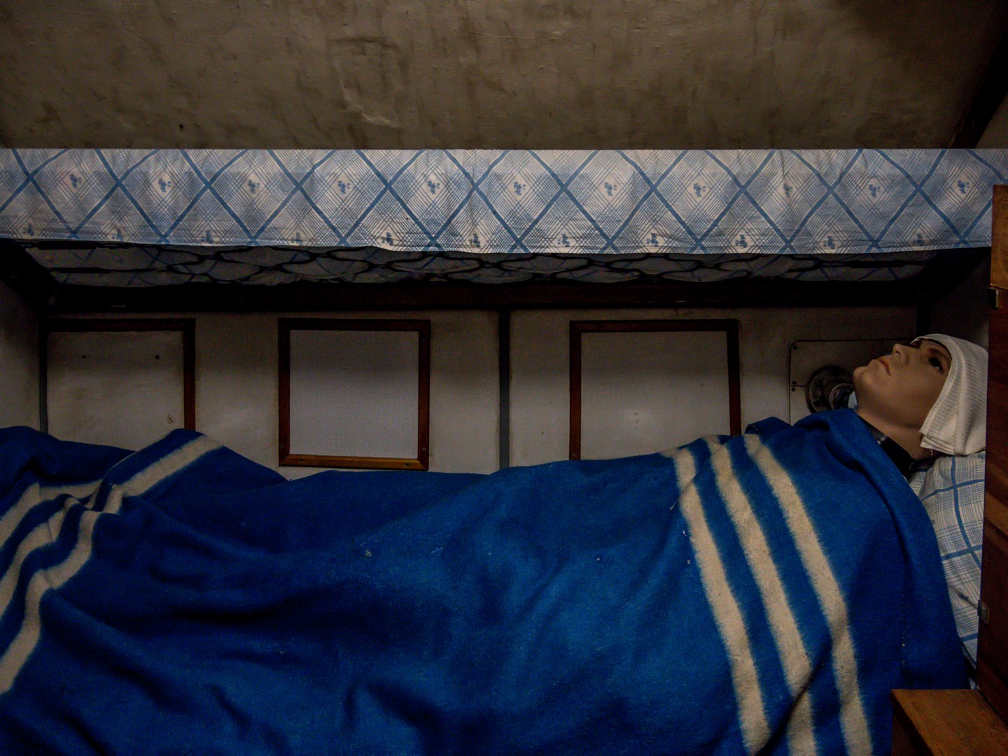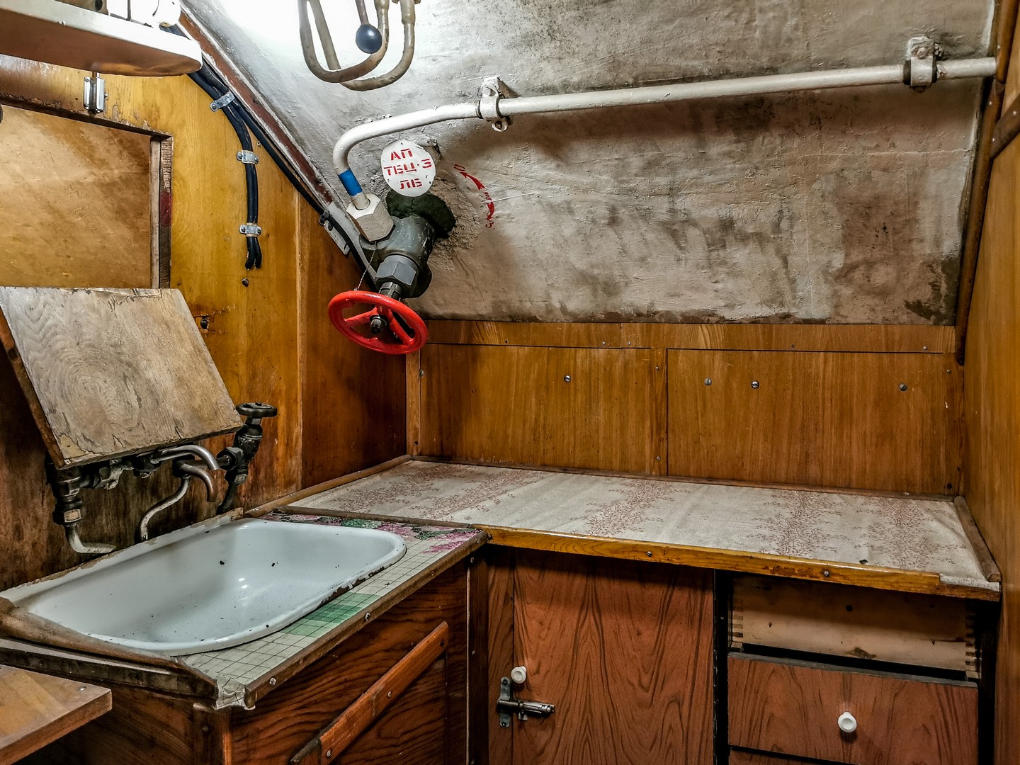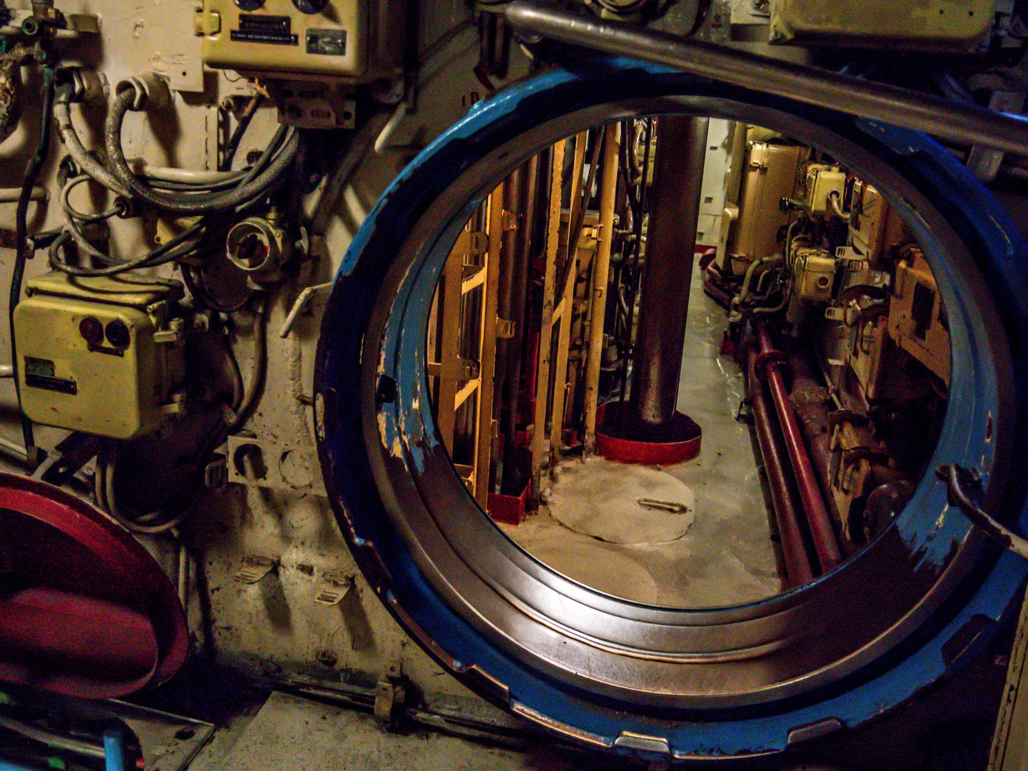 J’avais déjà visité un sous-marin à Tallinn mais l’U-434 est beaucoup plus grand… et finalement semble encore moins confortable. ! Première chose à savoir, si vous êtes grand.e, il va falloir apprendre à tenir la tête baissée. C’est bas de plafond… et étroit. Tous les espaces sont encombrés par les câbles, les machines, les cabines, les espaces de vie… Pas question d’être claustrophobes ! Malheureusement, la visite n’est pas possible pour les personnes à mobilité réduite puisqu’il y a plusieurs écoutilles à franchir. On retrouve tout ce qui peut faire fonctionner un village en miniature : une cuisine, des sanitaires (qui font un peu peur), une infirmerie (avec une cabine d’isolement, en cas de maladie contagieuse), des cabines pour dormir, un mess pour les officiers… Il fallait avoir les nerfs solides pour travailler ainsi pendant de longs jours, voire des semaines, sans lumière du jour, avec un minimum de confort, dans le bruit constant des machines, à devoir supporter la promiscuité avec le reste de l’équipage. C’est fascinant ! Et je pense pouvoir dire que ça plairait beaucoup aux enfants.