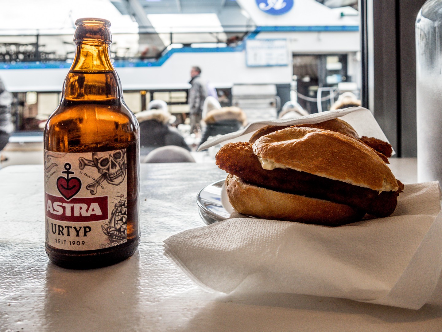 Quelques minutes de marche plus loin, et voilà les embarcadères de Sankt Pauli (Landungsbrücken). Au temps du vieux port, les bateaux à vapeur s’y amarraient. Le port est parti plus loin mais les débarcadères ont gardé une partie de leur raison d’être puisque c’est ici qu’on peut embarquer sur les ferries, attraper un bateau qui vous emmène faire une excursion sur l’Elbe pour visiter le port, voire même faire de longues excursions, comme vers l’île d’Helgoland. Entre chaque embarcadère, on trouve des petits restaurants ou des cafés et c’est sans doute ici qu’il faut s’attarder pour manger une spécialité bien hambourgeoise : les Fischbrötchen.
