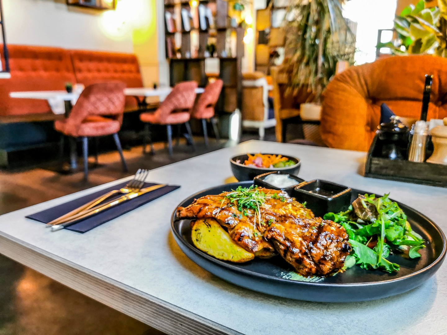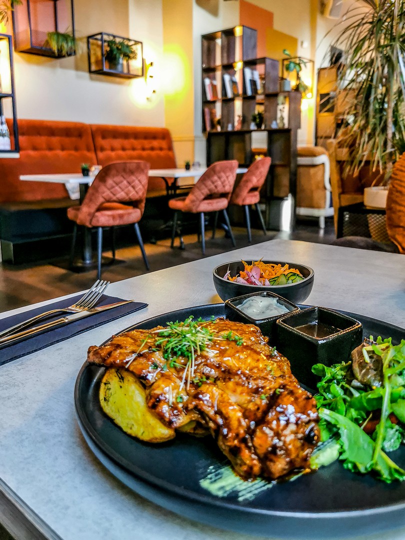 À deux pas de la Maison de la Culture, ce café aux tons orange et chocolat invite à prendre son temps, que ce soit pour un chocolat chaud ou un repas complet. L’offre est large : soupes, salades, burgers, plats au wok, options végétariennes et spécialités lettones comme la joue de bœuf braisée ou le perche grillé. Attention, on s’y installe si confortablement qu’il devient difficile d’en repartir.
