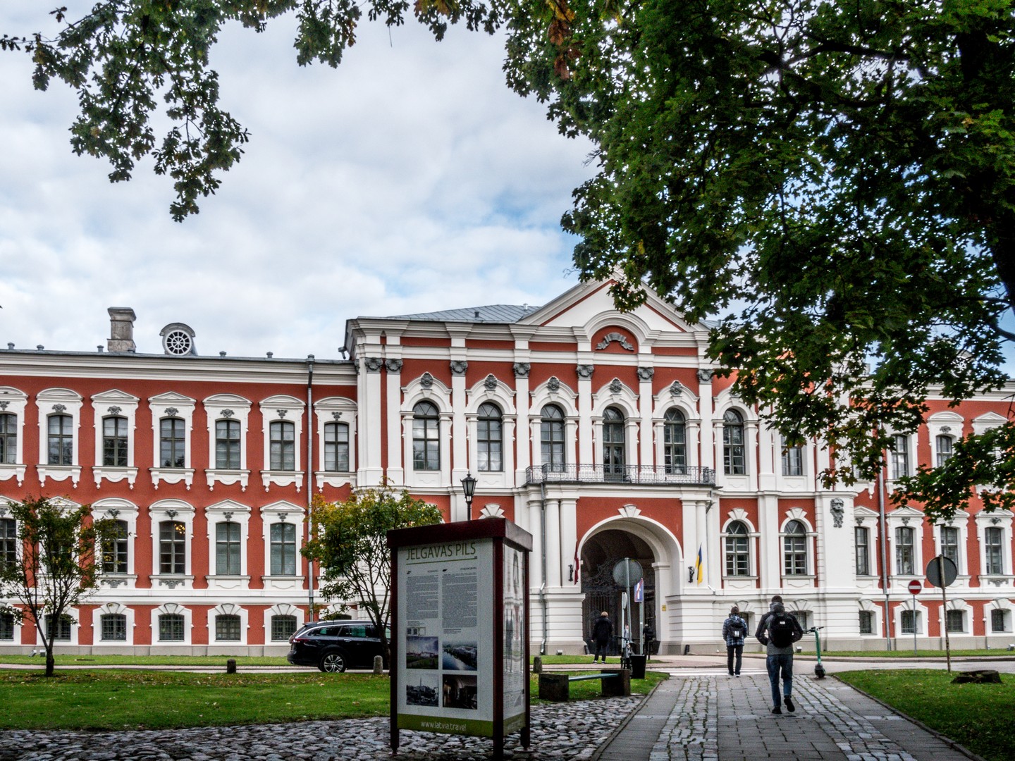La Lettonie ayant un réseau de chemins de fer centralisé sur Riga, il faut obligatoirement passer par la capitale pour rejoindre Jelgava en train. J’ai donc tout le loisir de m’informer pendant la durée des trajets. L’histoire avait pourtant bien commencé pour Jelgava ! Elle naît au bord de la Lielupe, le fleuve qui se jette dans la mer Baltique à Jūrmala où, quelques jours plus tôt, j’avais pu admirer des kayakistes en plein effort. Une fois de plus, c’est à l’ordre des chevaliers livoniens que l’on doit la fondation de la ville, au Xe siècle, avec la construction d’un château sur une île, Pilssala. Jusqu’en 1917, la ville qui se développe autour du château est d’ailleurs connue sous le nom allemand de Mitau. Elle prospère, grandit et devient la capitale du duché de Courlande et de Sémigallie.