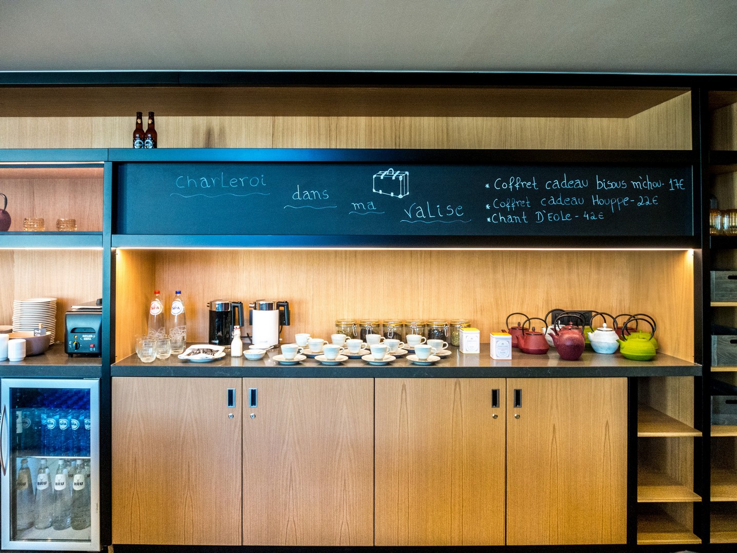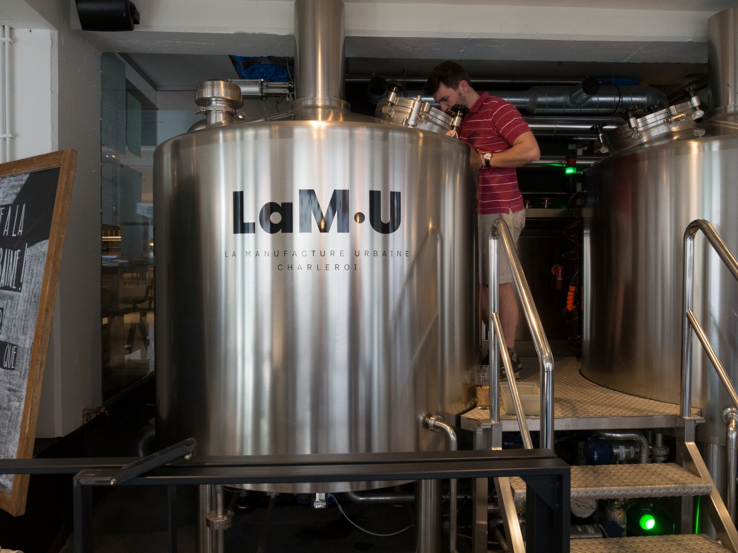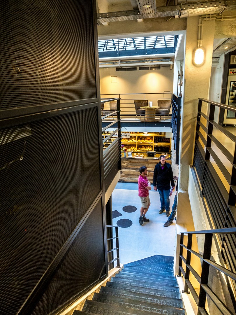 Retour en ville en bords de Sambre. Il est déjà l’heure de déjeuner et nous avons rendez-vous à la Manufacture urbaine (malheureusement fermée fin 2024, NDLR 27/02/2025) – l’Atelier (la Table, qui est un peu plus loin, offre un menu plus raffiné) qui restera comme mon endroit préféré de toute la ville : à la fois café, restaurant, boulangerie, épicerie, brûlerie et brasserie, le tout sur 4 étages, cet immense espace vous fera écarquiller les yeux de plaisir.