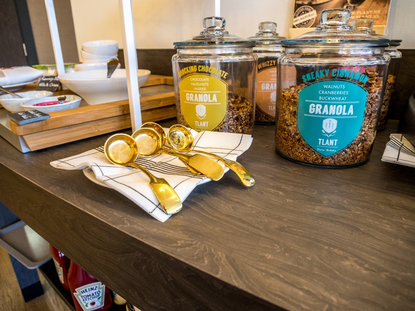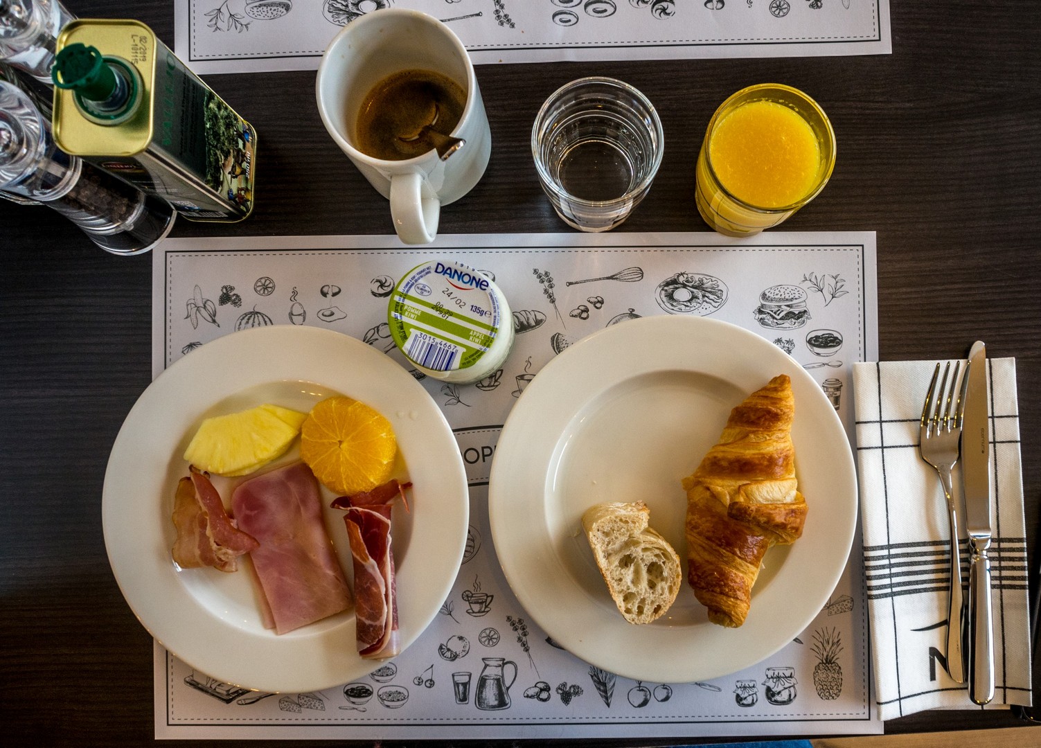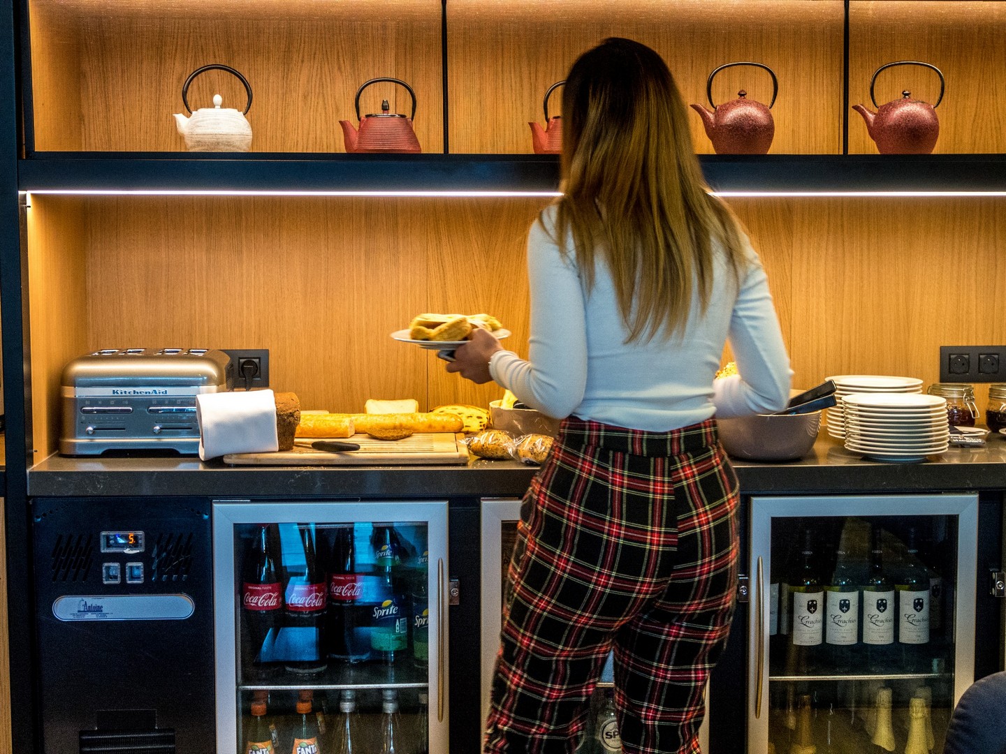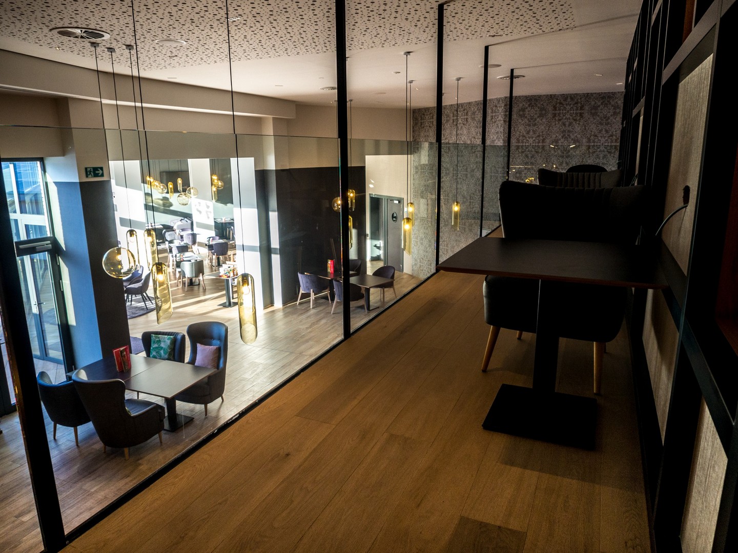 J’ai adoré le lobby : découpé en plusieurs espaces de vie (très contemporain) et sur deux niveaux : un espace attente devant la réception, un côté plus « espace co-working » pour travailler et un espace plus « lounge ». Parquet au sol, couleurs peps mises en valeurs par des fauteuils et canapés anthracites. Pas mal du tout ! Le bar est ouvert à tous et organise même des soirées afterworks ! La salle des petits déjeuners, qui est dans la partie la plus ensoleillée de l’étage, est très claire et donne vraiment envie de commencer sa journée sur le bon pied !