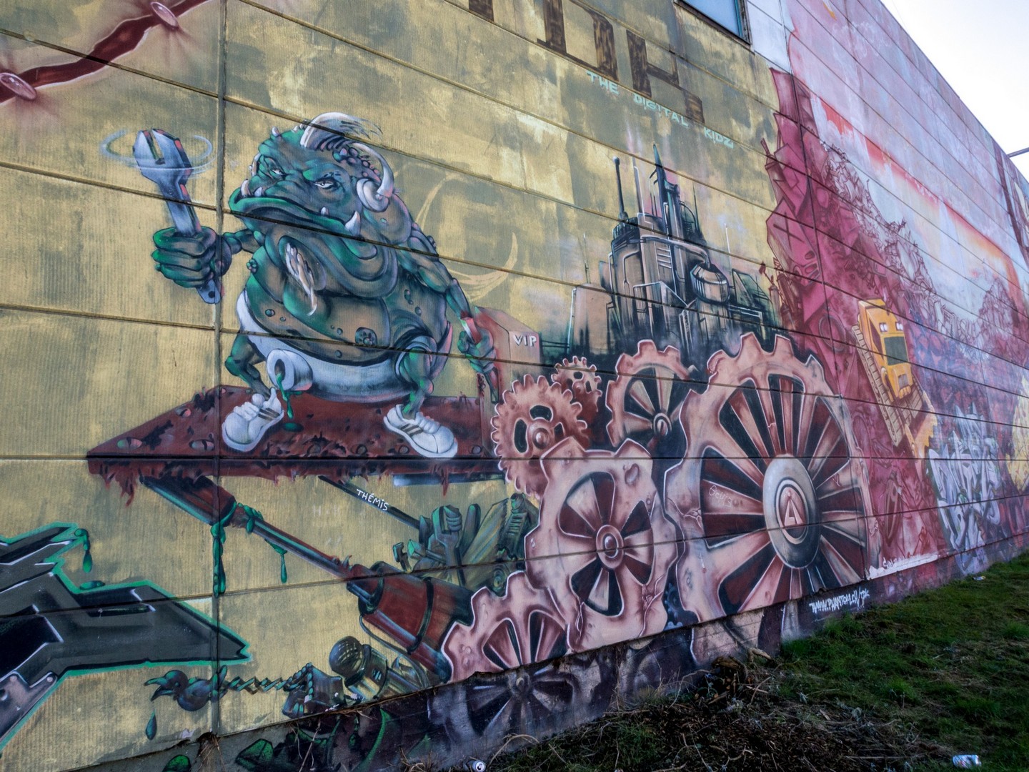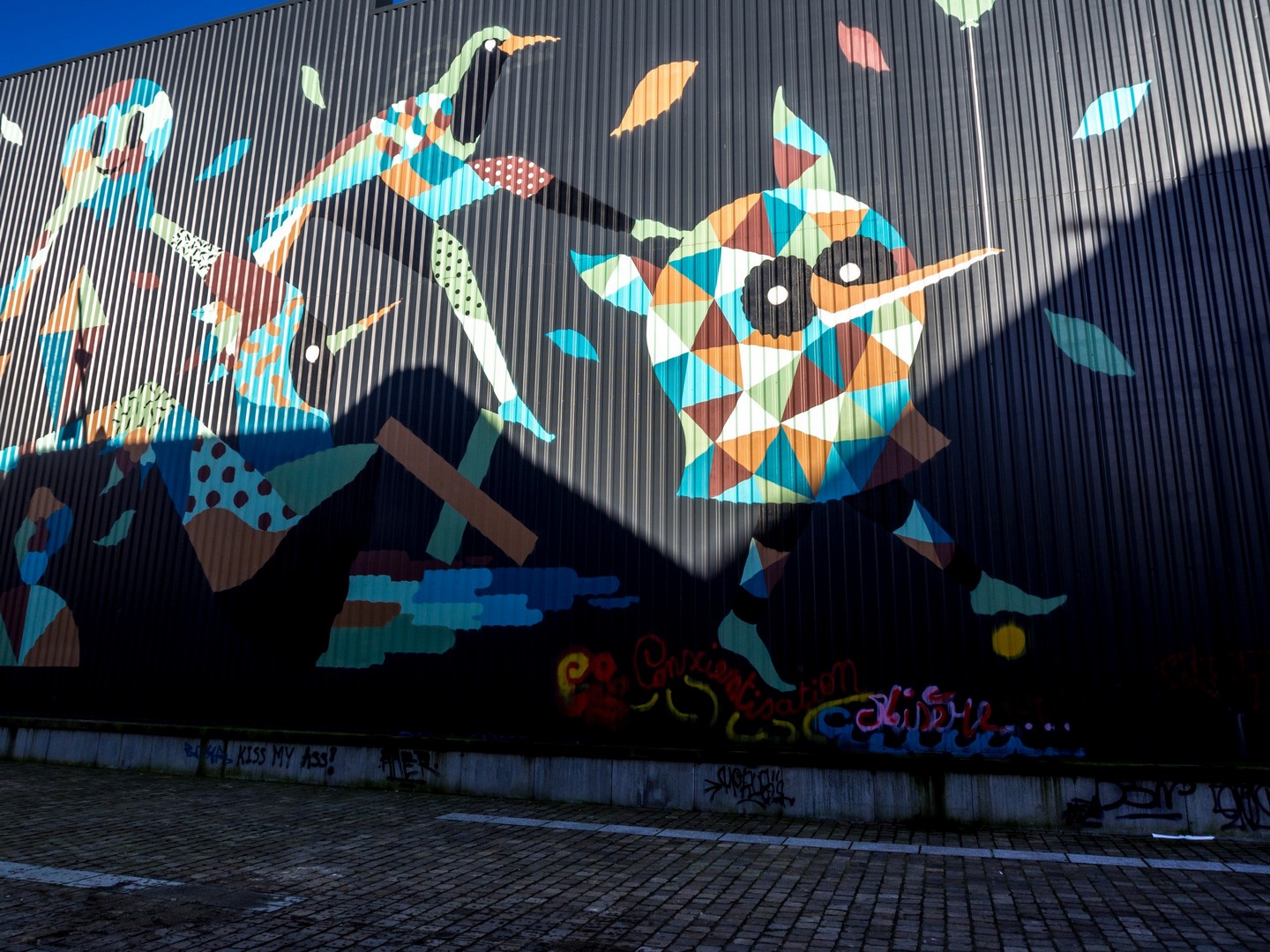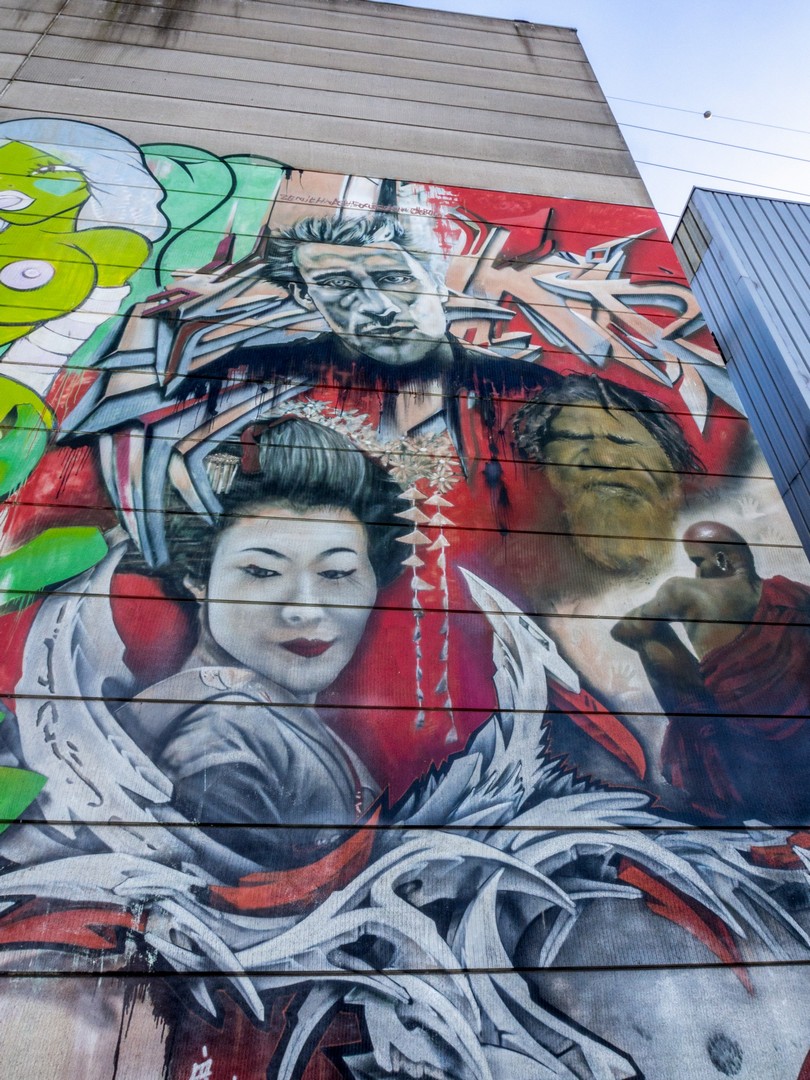 Ce que nous avons de notre côté par contre, ce sont d’immense fresques de street-art. Évidemment t que ce genre de lieux convient parfaitement aux graffeurs et street-artists. Il y a de la place pour s’exprimer, aussi ! Moment people : Matthias Schoenhaerts (oui, oui, l’acteur belge le plus sexy du royaume) y a laissé une trace de son passage sous la forme d’une fresque japonisante ! Cet homme a tous les talents !