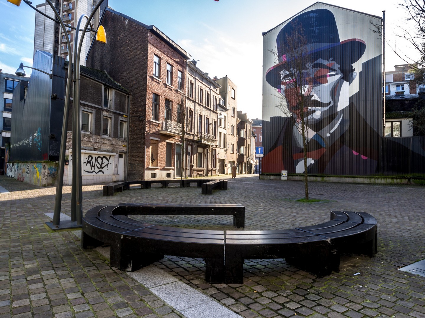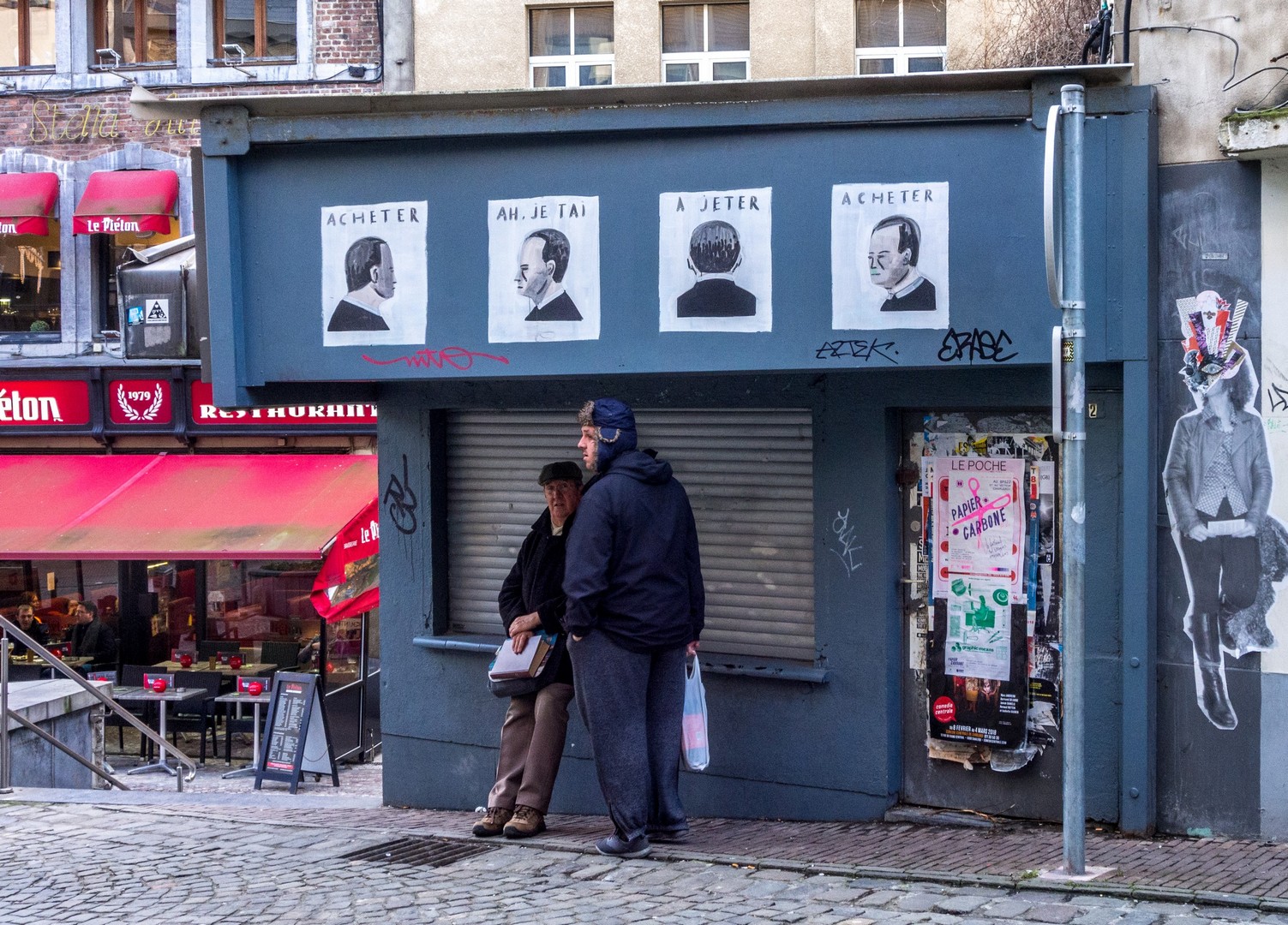 Après près de deux heures de balade, nous quittons les bords de Sambre pour rentrer à l’hôtel. Une partie du groupe ira faire les magasins chez Rive Gauche, une autre préfèrera un peu explorer la ville basse. On sent les prémices du changement. A droite, côté centre commercial, ça semble se réveiller, à gauche, c’est comme si la vile était devenu une espèce de squat géant. On y trouve encore quelques belles œuvres de street-art