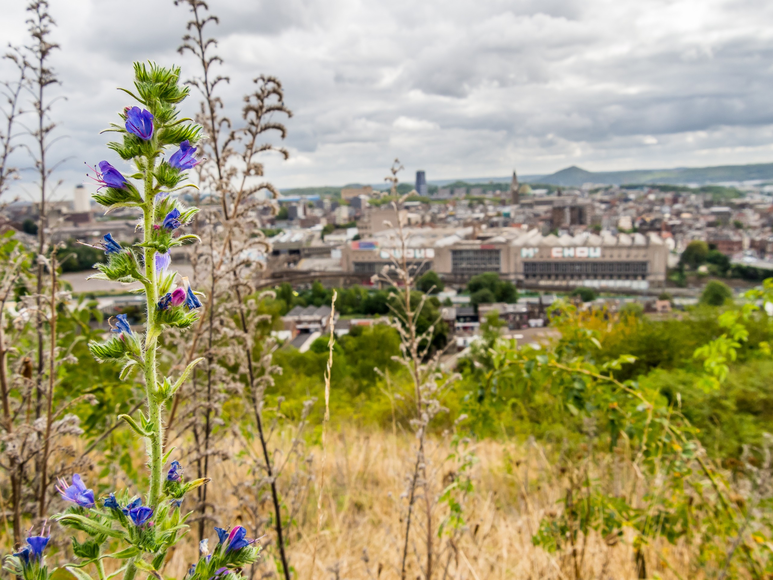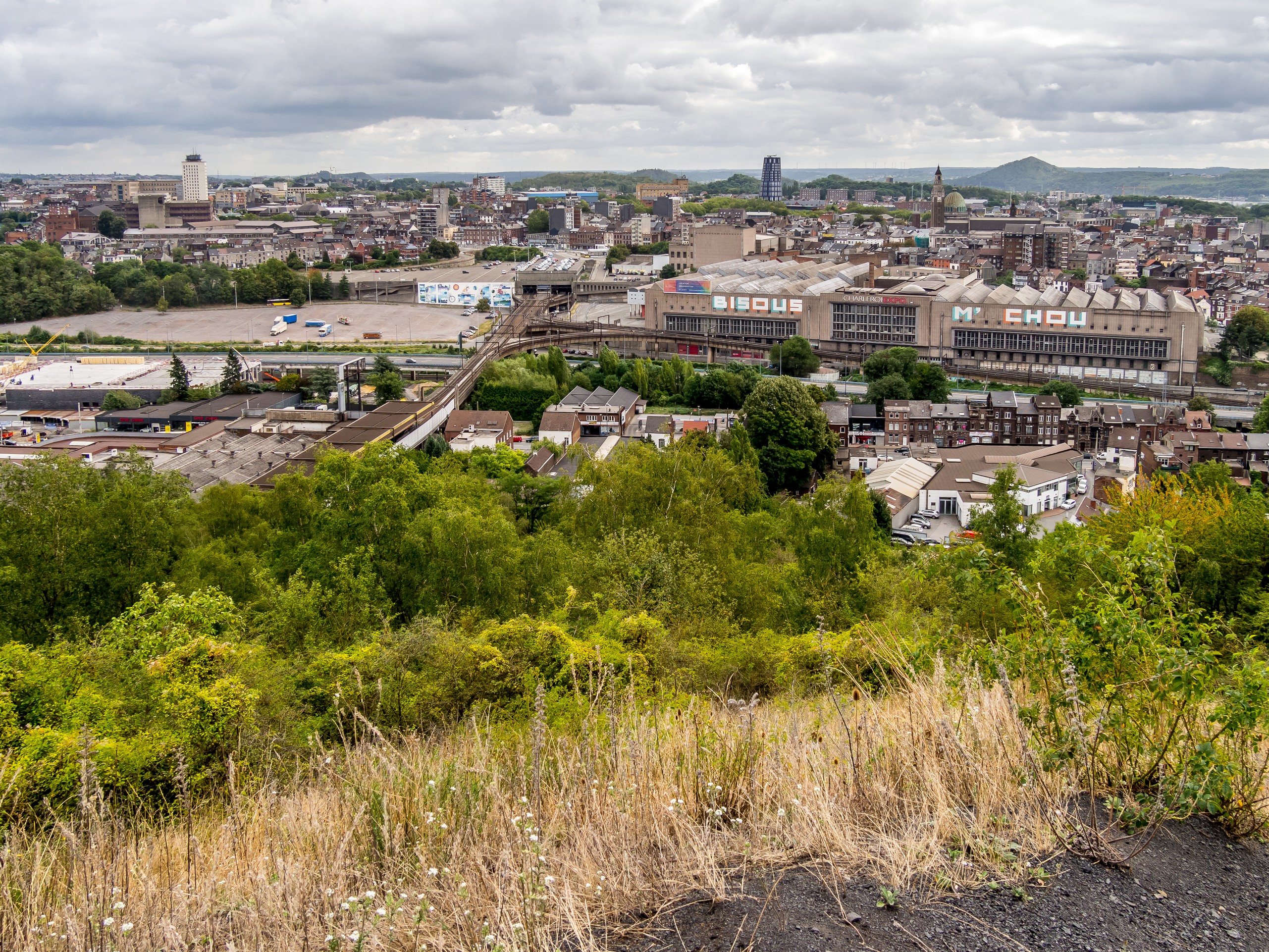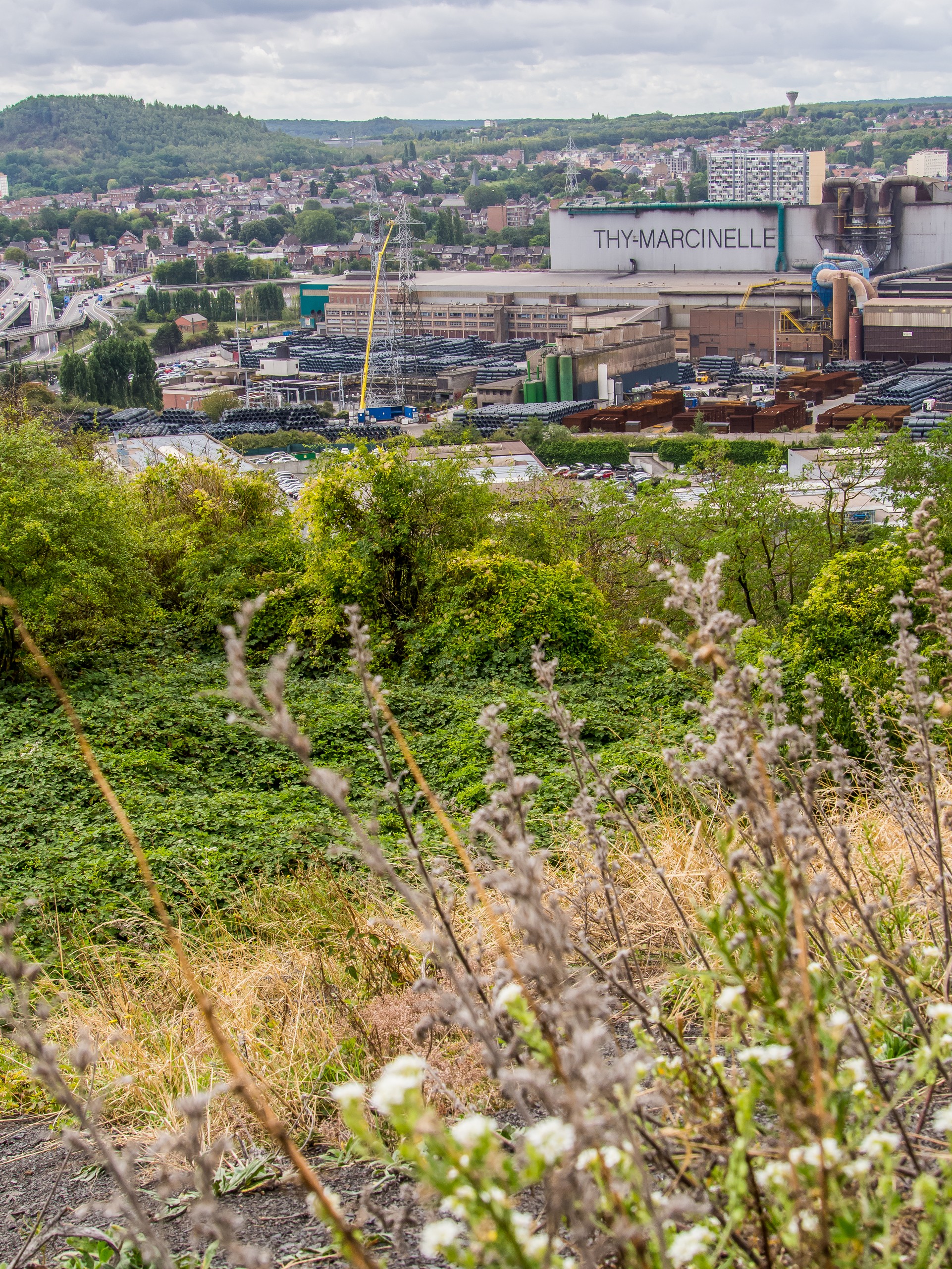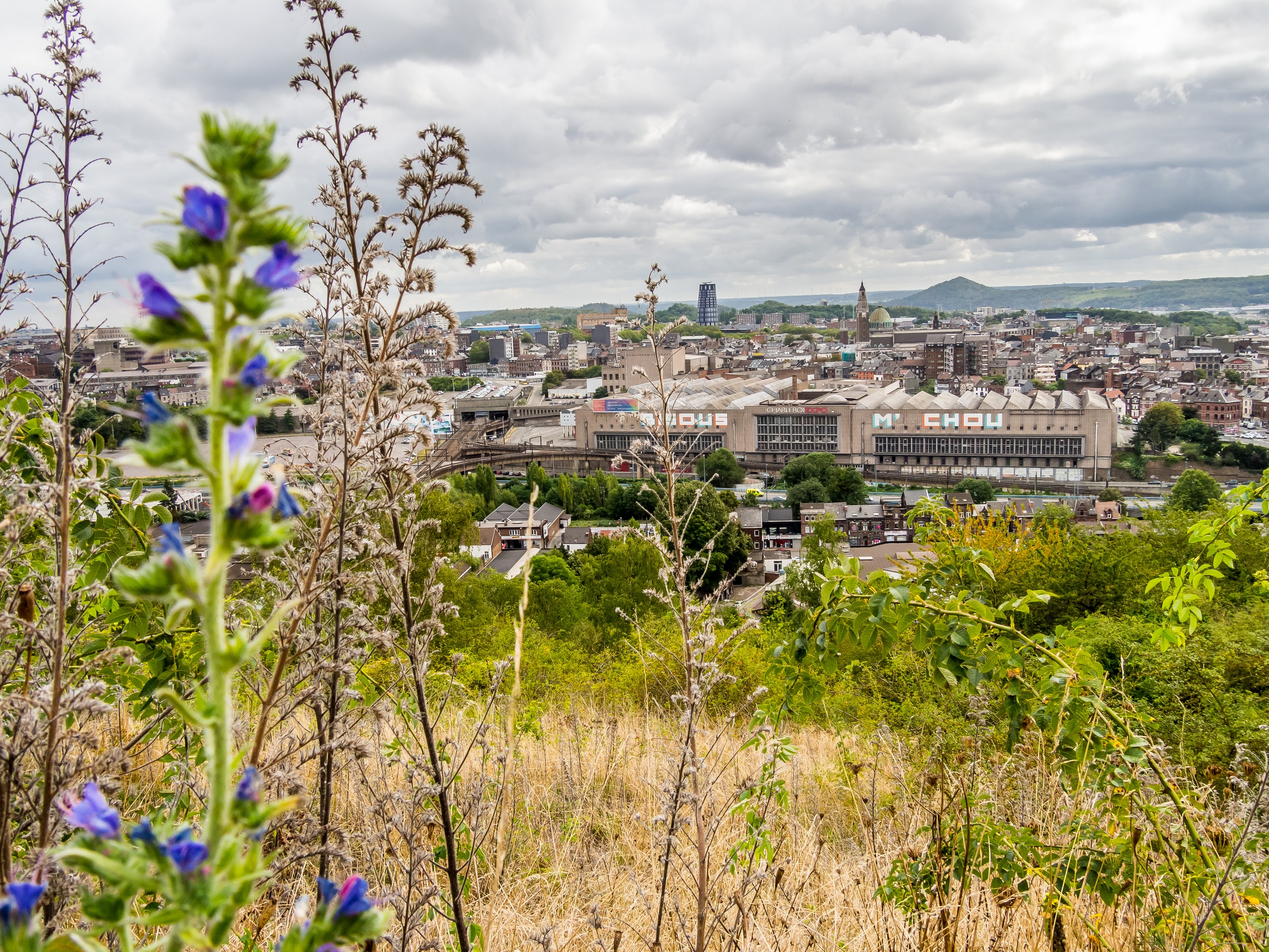 Changement de décor complet pour l’étape suivante : les collines se transforment en terrils, les petites routes en quatre bandes, au lieu de châteaux, ce sont des usines qui trouent le ciel : nous voilà arrivées à Charleroi. Dans cet univers de charbon et de métal, la nature s’est frayée un chemin… même toute avenue en fait. Le paysage de Charleroi est parsemée de monticules de déchets de charbon et ces petits et grand monticules, une fois laissés à l’abandon après la fermeture des mines, se sont vite retrouvés couverts par la végétation. Pas seulement par de mauvaises herbes ou des ronces mais par des fleurs, des buissons et même des arbres. C’est le cas du Terril des Piges, qui se trouve à Dampremy.