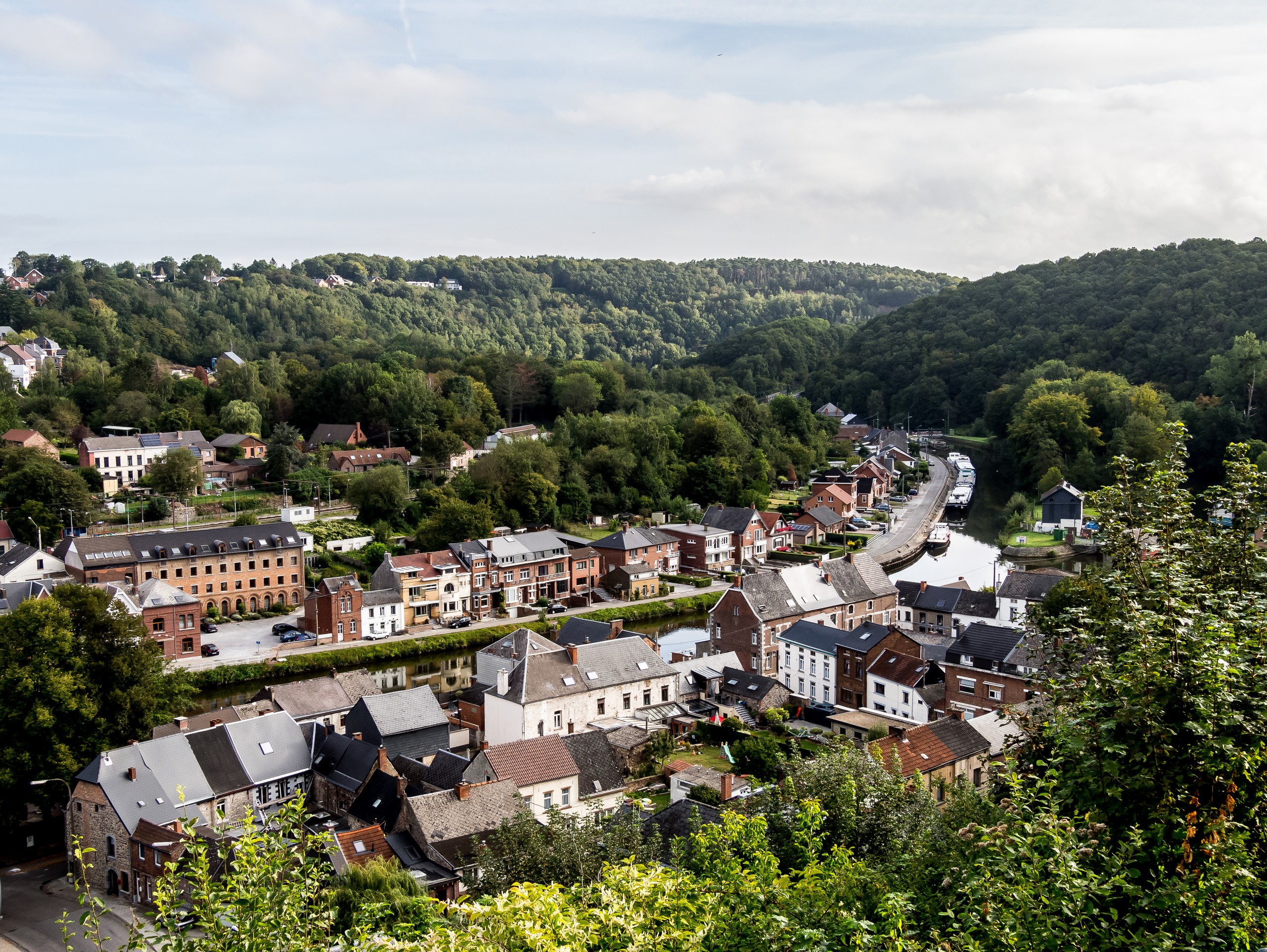 Depuis les bords de Sambre, Thuin s’élève comme un mur et depuis la place au pied de son beffroi (patrimoine UNECSO), on domine toute la vallée et on découvre un paysage tout vert et riant. Sur la droite, vous verrez sans doute des péniches à quai. C’est que Thuin est étroitement associée à la batellerie. Dans le passé, une personne sur 4 travaillait dans la batellerie et la ville reste un lieu de villégiature, et même de retraite, pour tout patron de péniche. Une péniche-musée, le Thudo, est d’ailleurs consacrée à ce lien étroit entre la ville et la navigation fluviale.