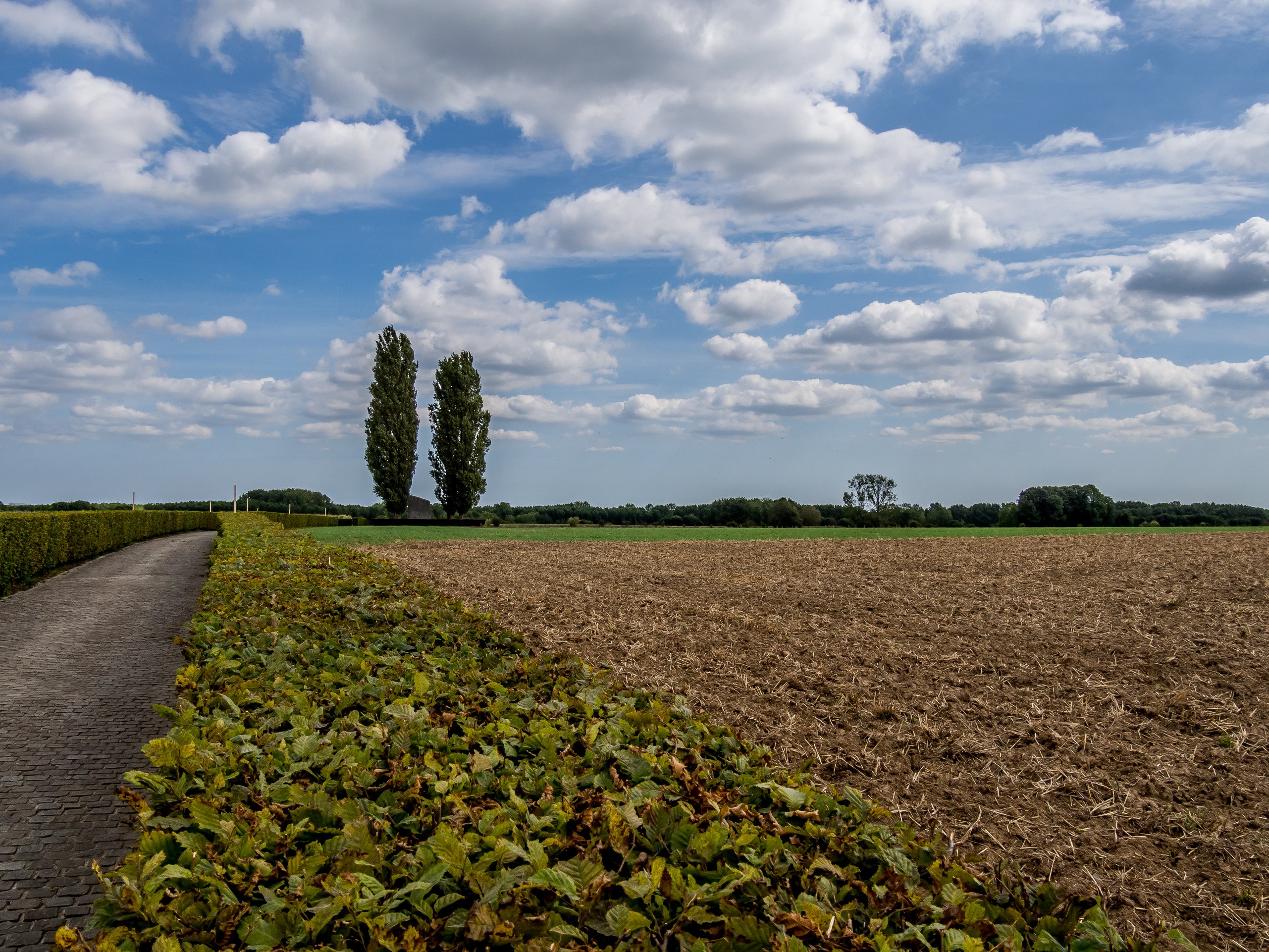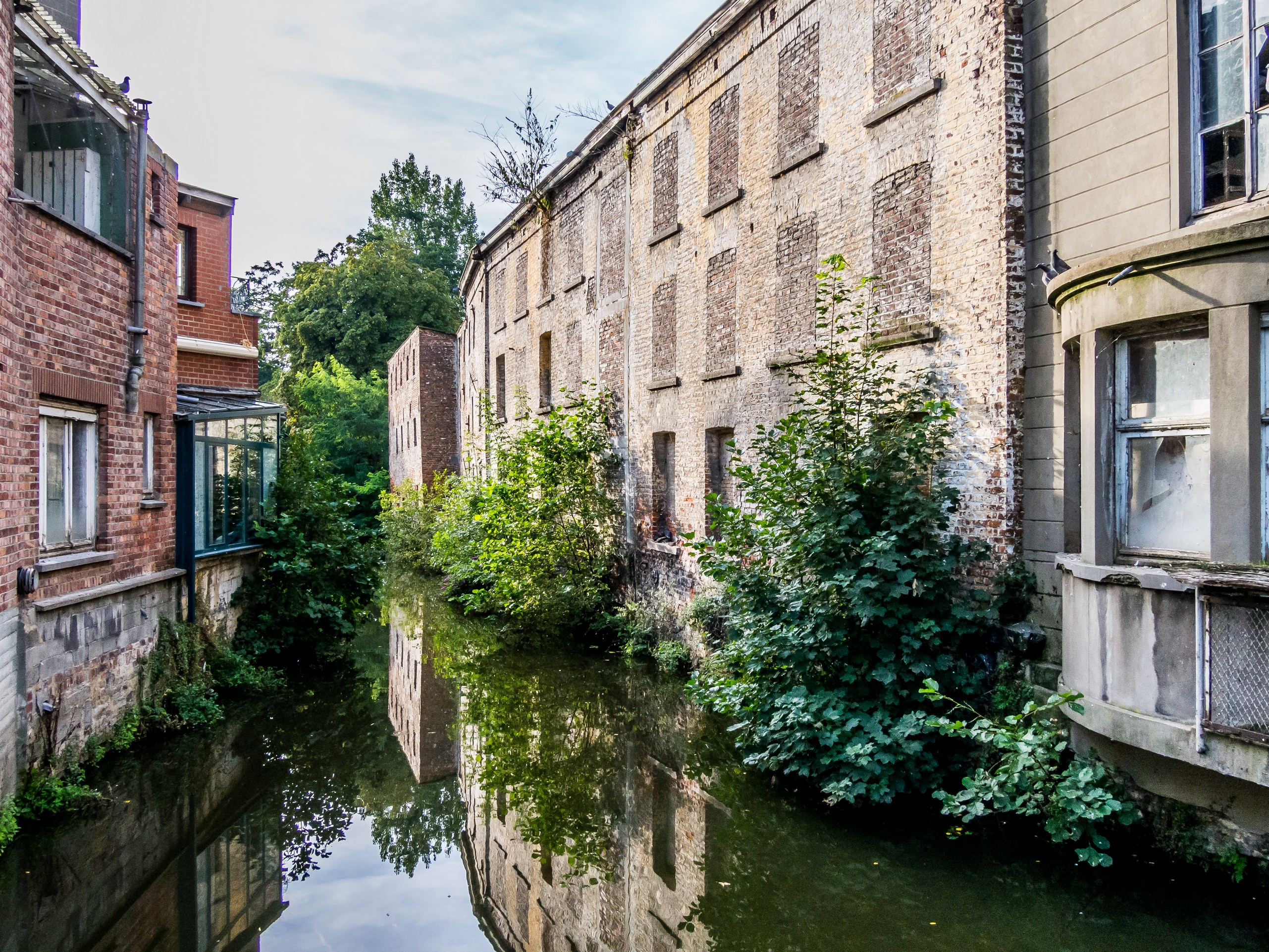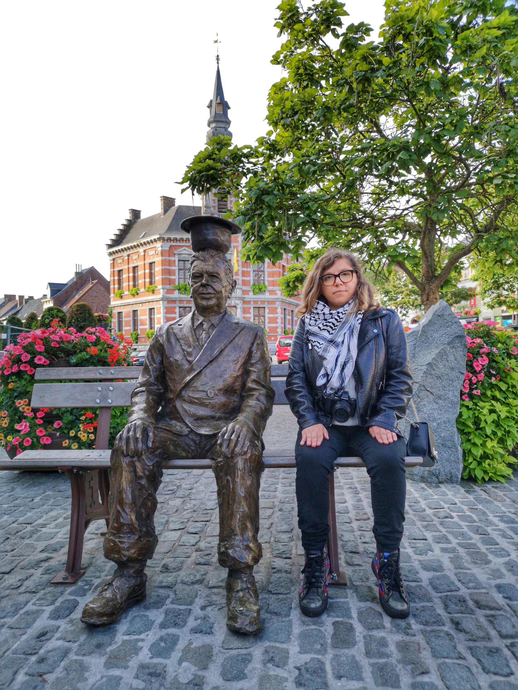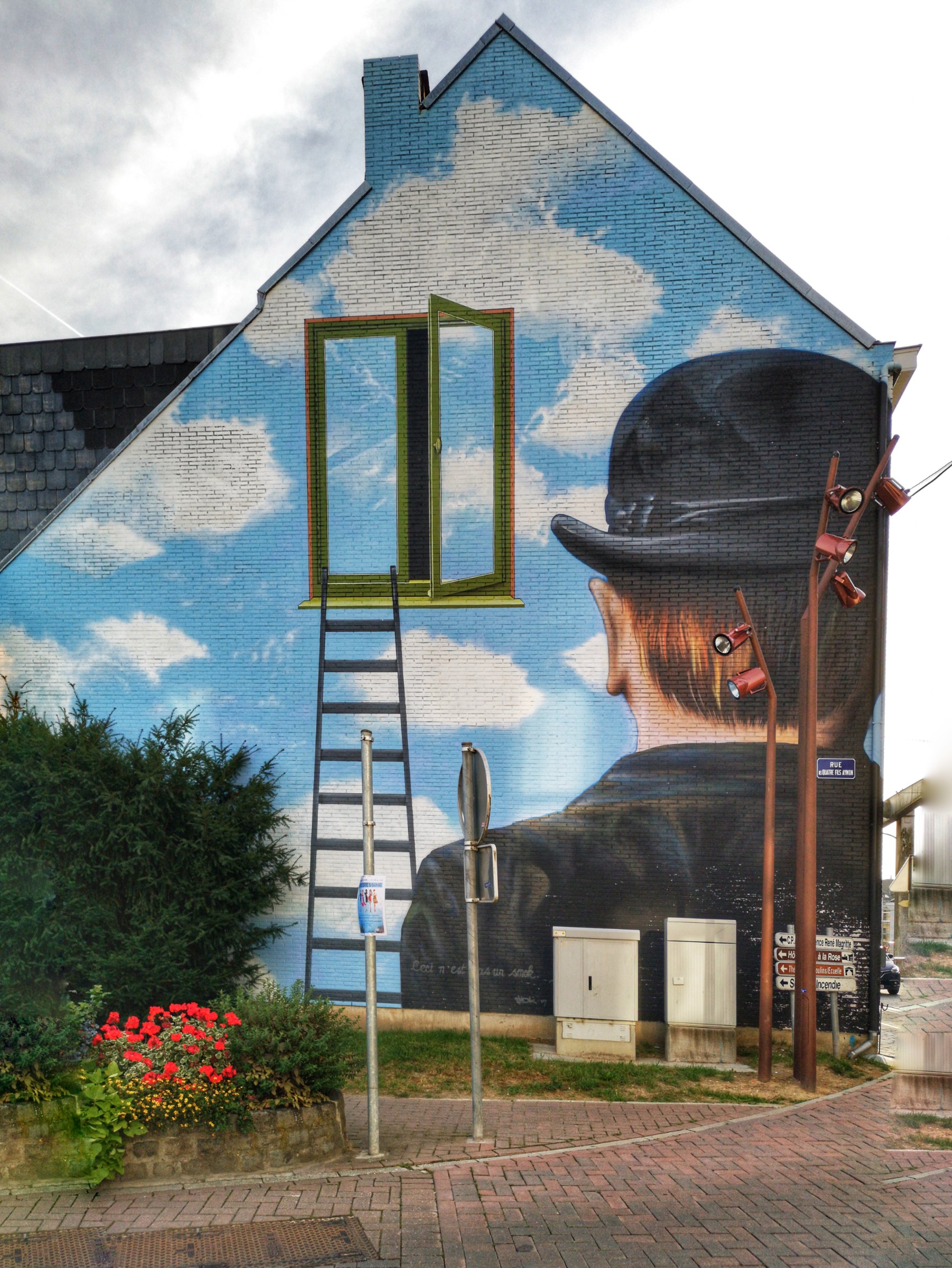 Ça sent déjà un peu la Flandre, dans certaines communes, on y parle néerlandais et français d’ailleurs. Et comme la Belgique est terre de surréalisme, il était évident de commencer par la ville natale du plus grand des artistes de ce genre : Lessines. Quand on entre dans Lessines, on sait que l’on entre chez Magritte. Cette petite ville à la campagne, traversée par la Dendre, accueille ses visiteurs avec des peintures murales représentant les œuvres de son plus célèbre enfant : ciel azur et nuages, personnage en costume et chapeau melon… par contre, pas vu de trace de sa muse : sa femme Georgette, dont la silhouette souvent dénudée a orné beaucoup de ses peintures. La famille déménagera peu après sa naissance dans la région de Charleroi mais le souvenir de Magritte reste vif ici, j’ai même eu le temps de prendre la pose avec le maître !