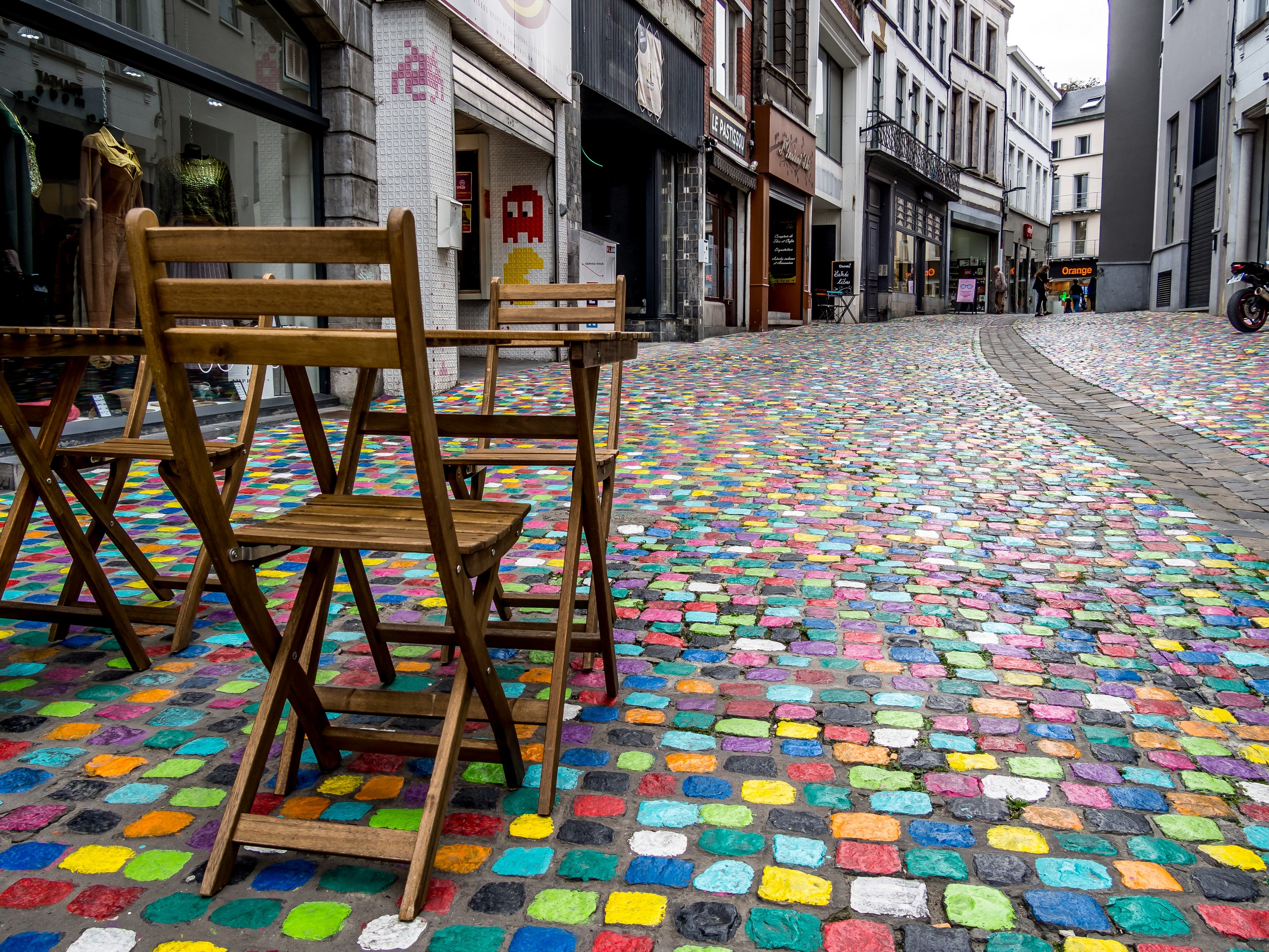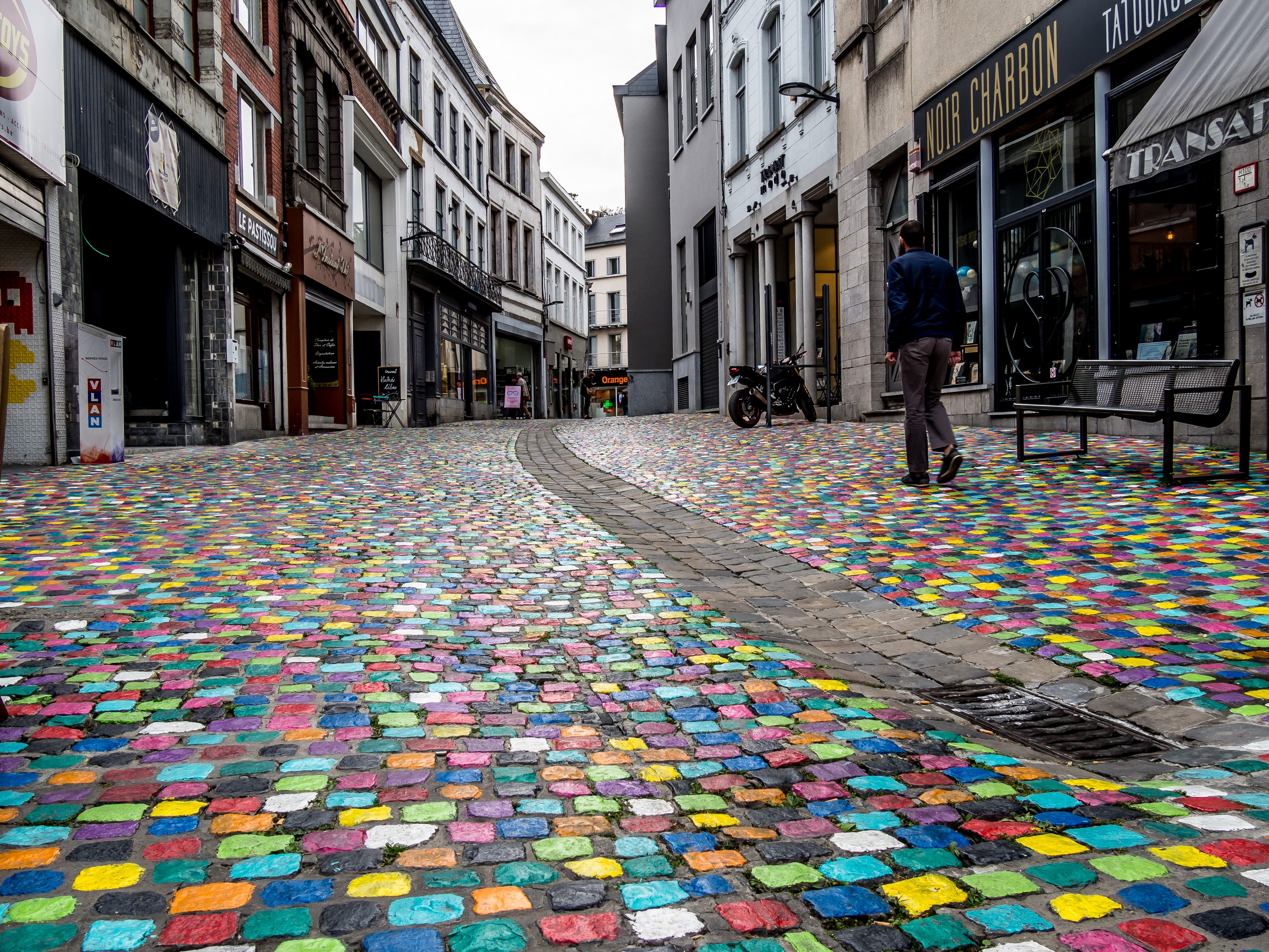 En parlant d’art, n’hésitez pas à passer rue des Fripiers. A l’initiative des commerçants, les pavés de cette jolie rue ont été peints de couleurs différentes avec des bénévoles et des passants qui ont contribué à faire avancer le projet. C’est que le centre-ville de Mons souffre d’un mal commun à toutes les petites villes : la désertification des commerces suite à l’ouverture d’un centre commercial en périphérie. La ville ressort justement à peine d’un marasme et de ce point de vue là, la rue des Fripiers est un exemple. Petits restaurants sympas, commerces insolites… de quoi redonner des couleurs à la ville et donner envie de s’attarder et d’en savoir plus sur les personnes qui sont derrière ce projet.