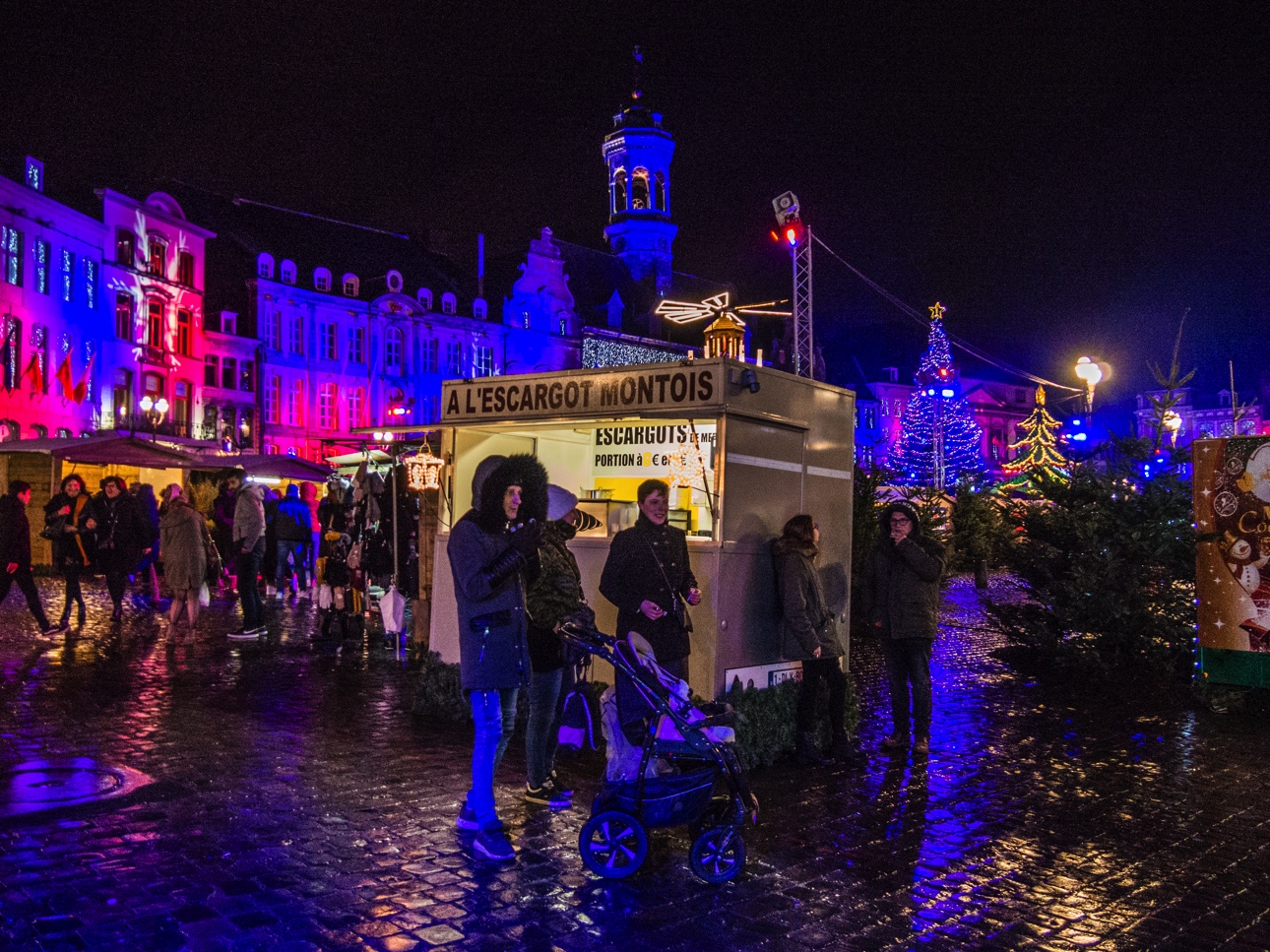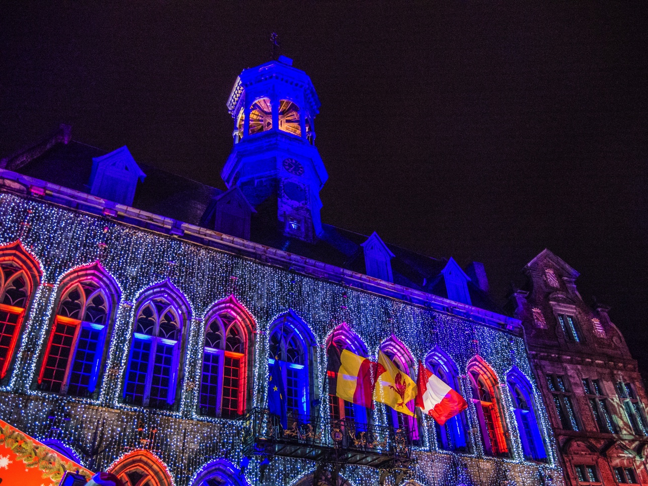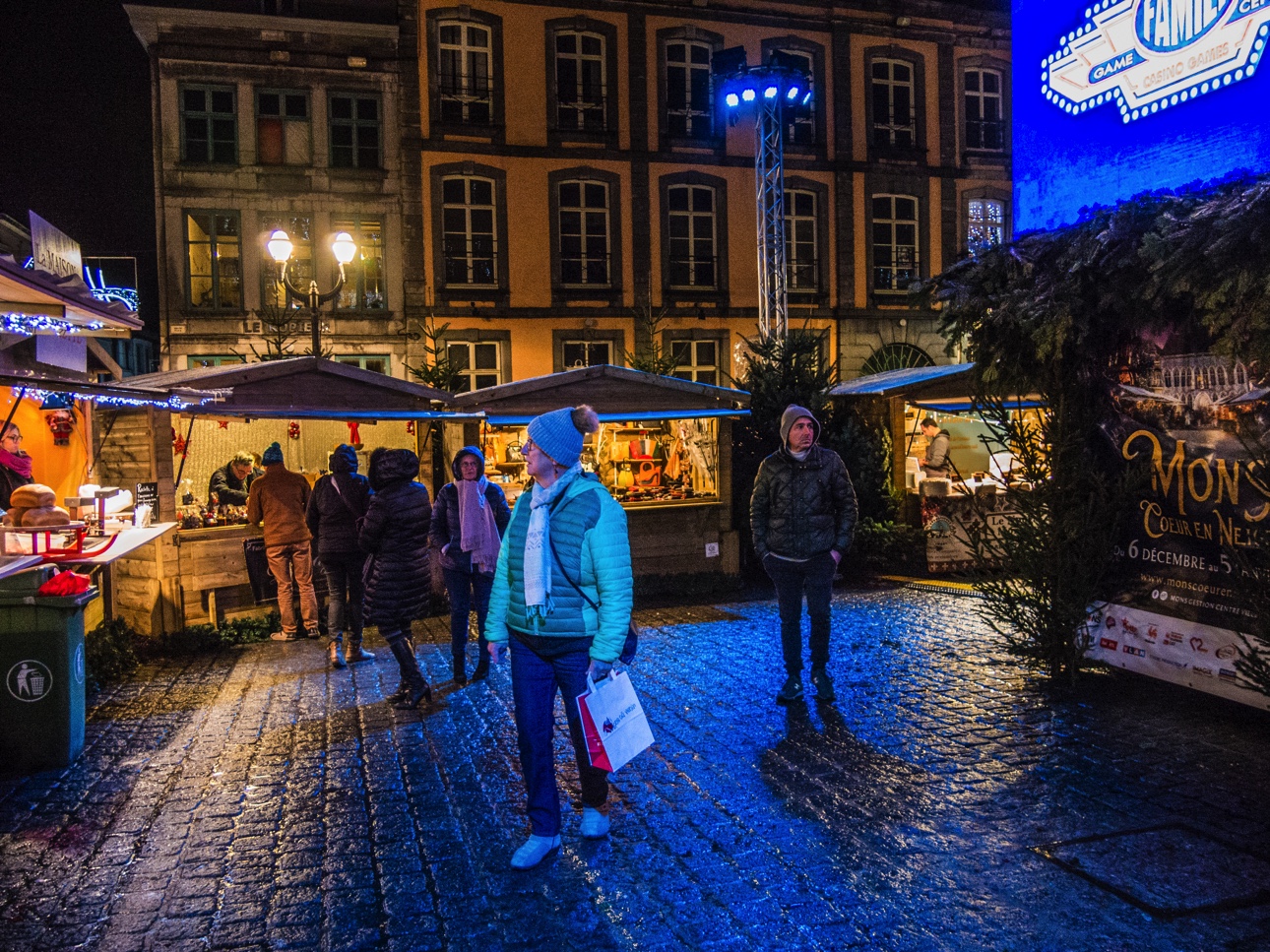 Vous êtes à Mons pour la période de Noël, restez jusqu’à la nuit tombée (ça tombe bien à 16h30, il fait déjà quasi noir) pour profiter du marché de Noël « Mons, cœur en neige ». C’est sur la Grand-Place, magnifiquement illuminée, que se passe le gros des festivités avec les chalets des artisans, les chalets des restaurateurs (on vous recommande celui des spécialités belges où vous pourrez manger une super carbonnade au spéculoos et les bières d’une de mes brasseries préférées : la Brasserie du Borinage). Le petit plus « esprit de Noël » revient au chalet de la solidarité où les visiteurs peuvent déposer des biens d’hygiène de première nécessité qui seront distribué à ceux qui en en besoin.