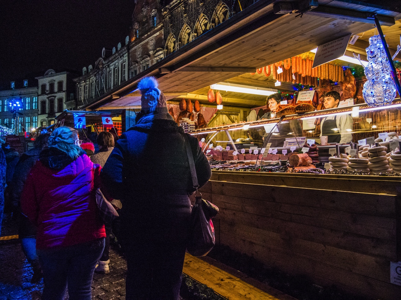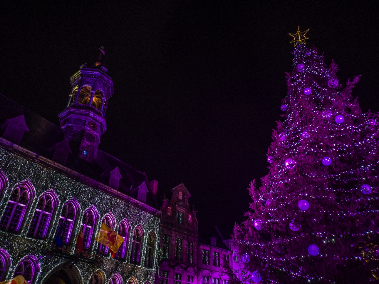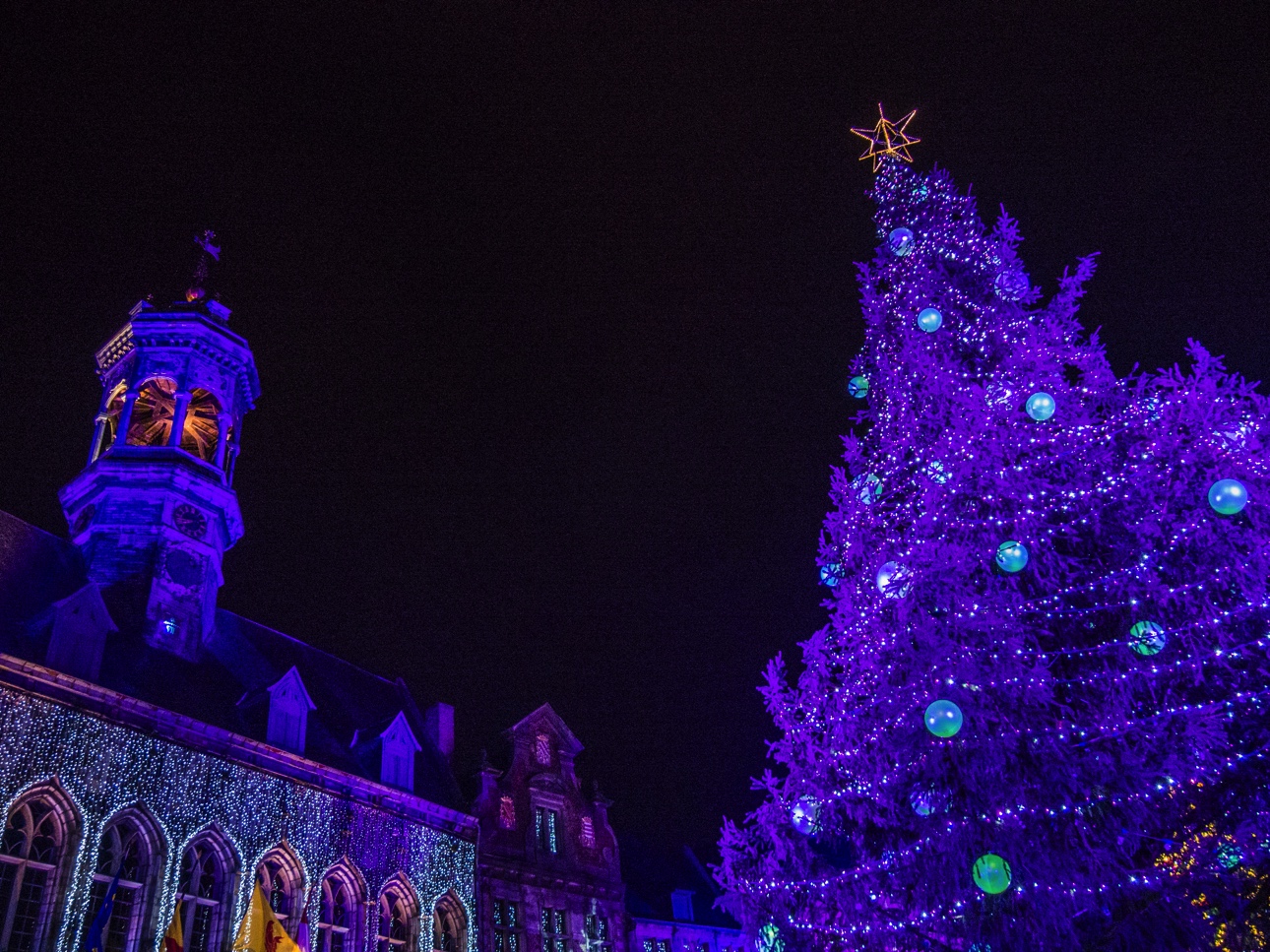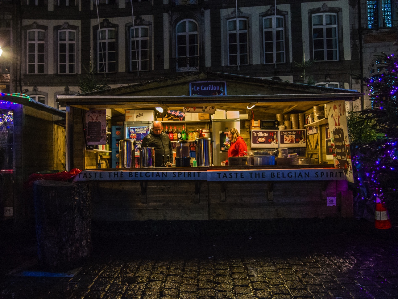 Vous êtes à Mons pour la période de Noël, restez jusqu’à la nuit tombée (ça tombe bien à 16h30, il fait déjà quasi noir) pour profiter du marché de Noël « Mons, cœur en neige ». C’est sur la Grand-Place, magnifiquement illuminée, que se passe le gros des festivités avec les chalets des artisans, les chalets des restaurateurs (on vous recommande celui des spécialités belges où vous pourrez manger une super carbonnade au spéculoos et les bières d’une de mes brasseries préférées : la Brasserie du Borinage). Le petit plus « esprit de Noël » revient au chalet de la solidarité où les visiteurs peuvent déposer des biens d’hygiène de première nécessité qui seront distribué à ceux qui en en besoin.