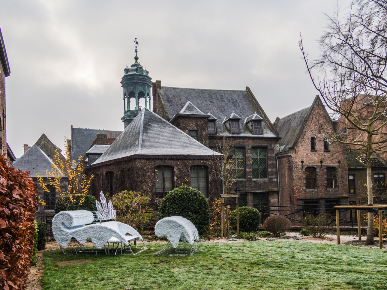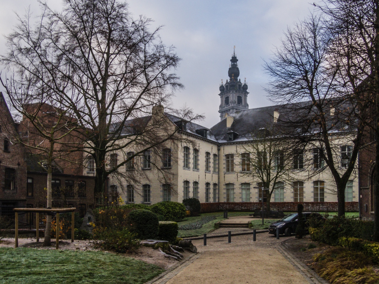 Les dieux de la météo ne sont pas avec moi. Il fait gris, brumeux et glacial ce matin mais comme mon programme est très axé sur les musées, ça tombe plutôt bien mais pour ce matin, j’ai rendez-vous avec Bernadette qui va me faire visiter la ville. Un peu comme Tournai, Mons est une ville que je connais sans vraiment connaître. Depuis l’enfance, nous nous y rendions en famille pour aller au cinéma et y manger un burger au Quick. J’allais aussi y faire des démarches administratives quand j’habitais la région mais vraiment y faire attention, c’était une ville qui faisait partie de mon paysage mental mais depuis que je m’en suis détachée, elle m’apparait différente, mes yeux sont plus ouverts et parcourir ses rues avec une guide, c’est tout de même une expérience totalement différente.