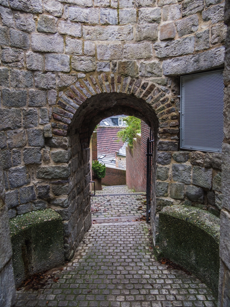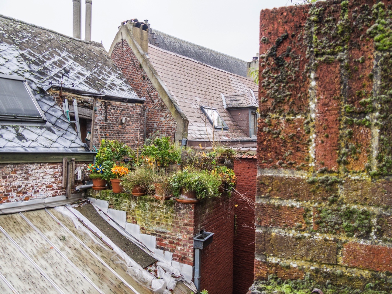 Comme toutes les villes anciennes, Mons avait des remparts. Il n’en reste pas grand-chose mais on peut y voir des vestiges sur le chemin qui mène au beffroi. C’est un joli coin de Mons, où on se retrouve plongé dans une ambiance médiévale, au calme, comme au dessus de tout. Le gel a déposé ici une fine couche de glace qui blanchit tout, délavant les couleurs et rappelant que l’hiver approche.