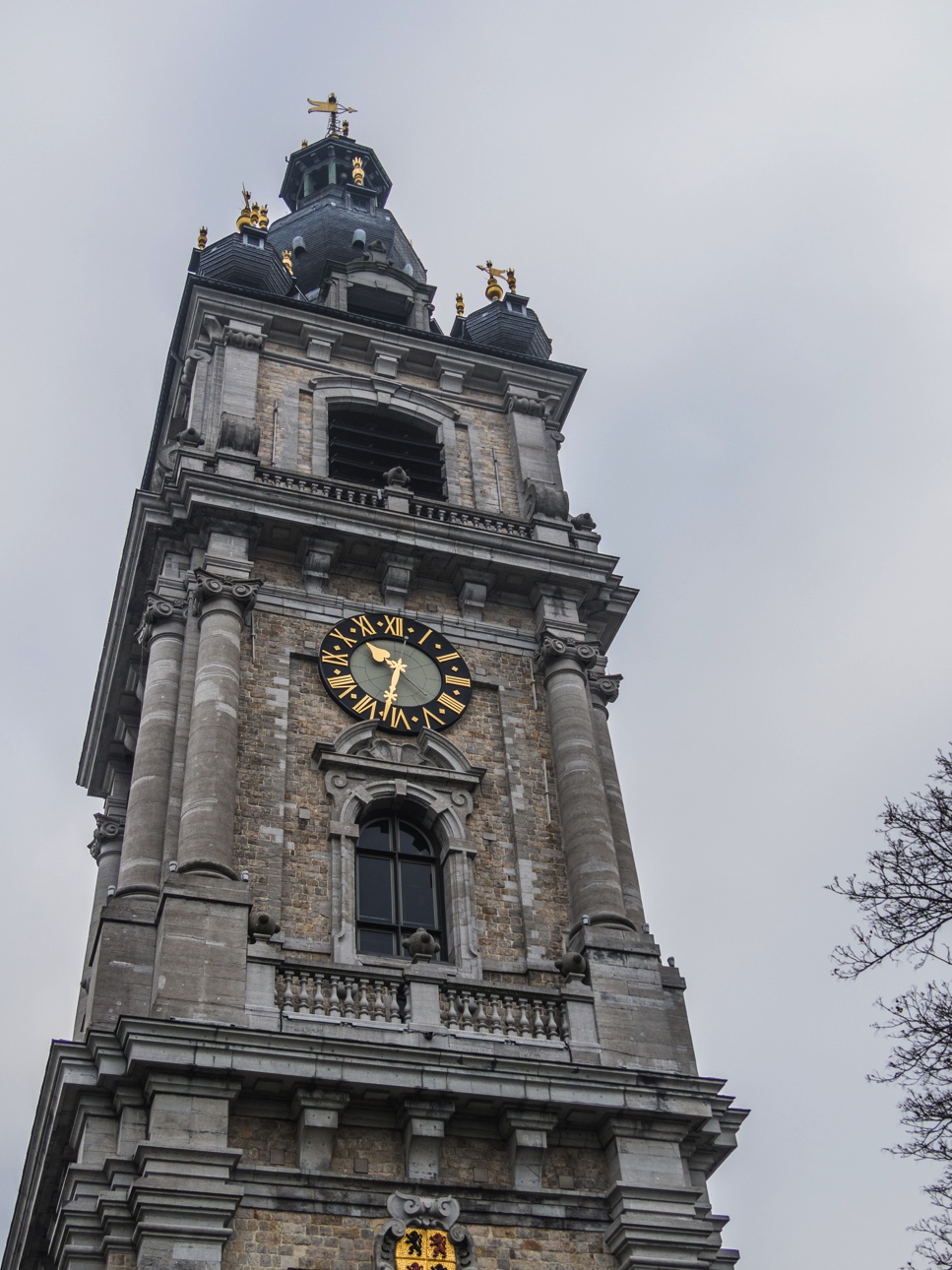 Sur le point le plus haut, exposé au vent, on trouve le beffroi, qui veille solitaire sur la ville. Comme tous les beffrois de Belgique et du nord la France, il est inscrit au patrimoine mondial de l’UNESCO mais il a en plus une caractéristique qui le rend unique : c’est le seul beffroi baroque de Belgique. Il a été érigé tardivement comparé à la majorité des beffrois du pays. Son sommet bombé est flanqué de 4 petites bulbes et a étonné Victor Hugo qui était de passage.