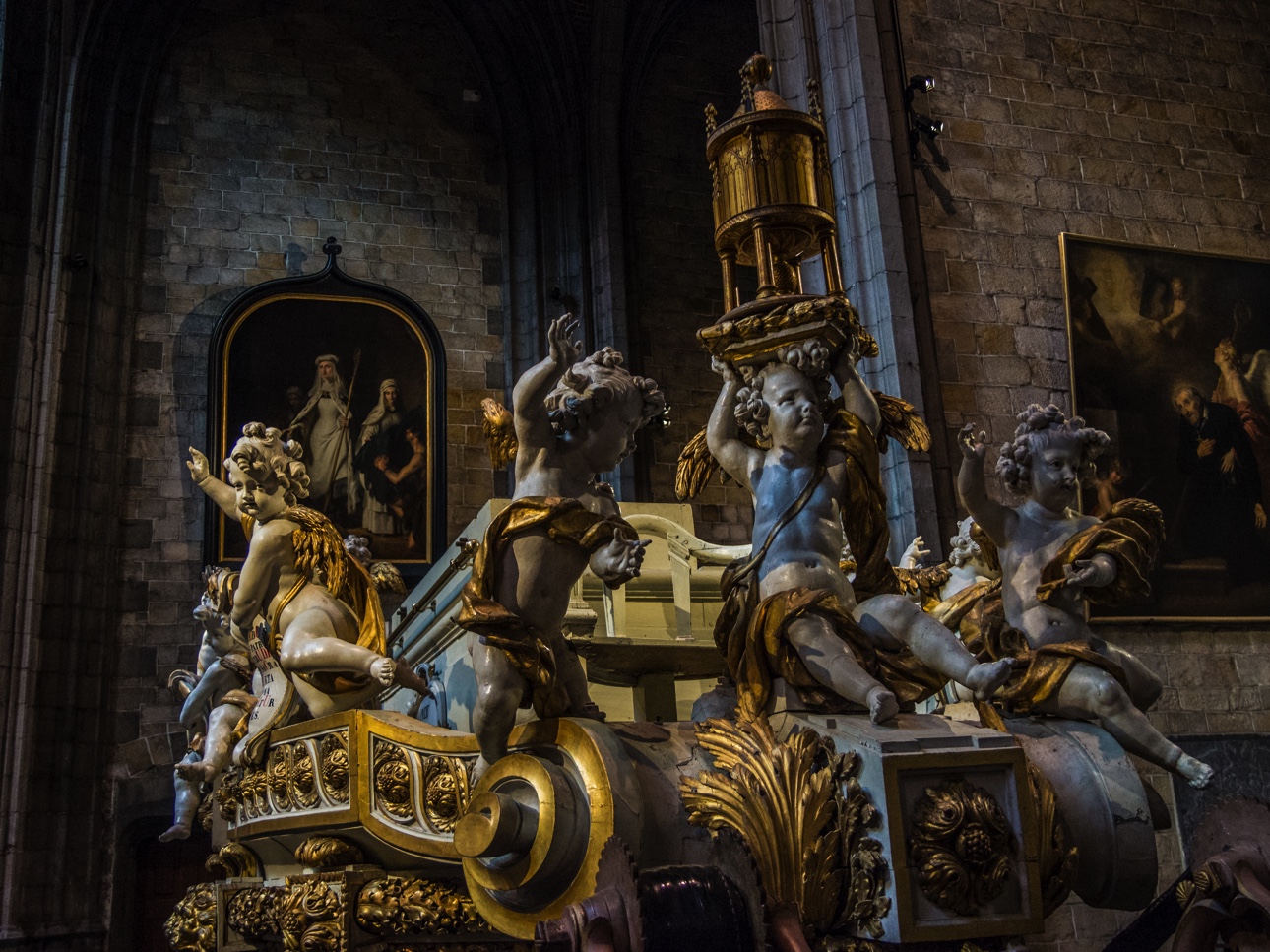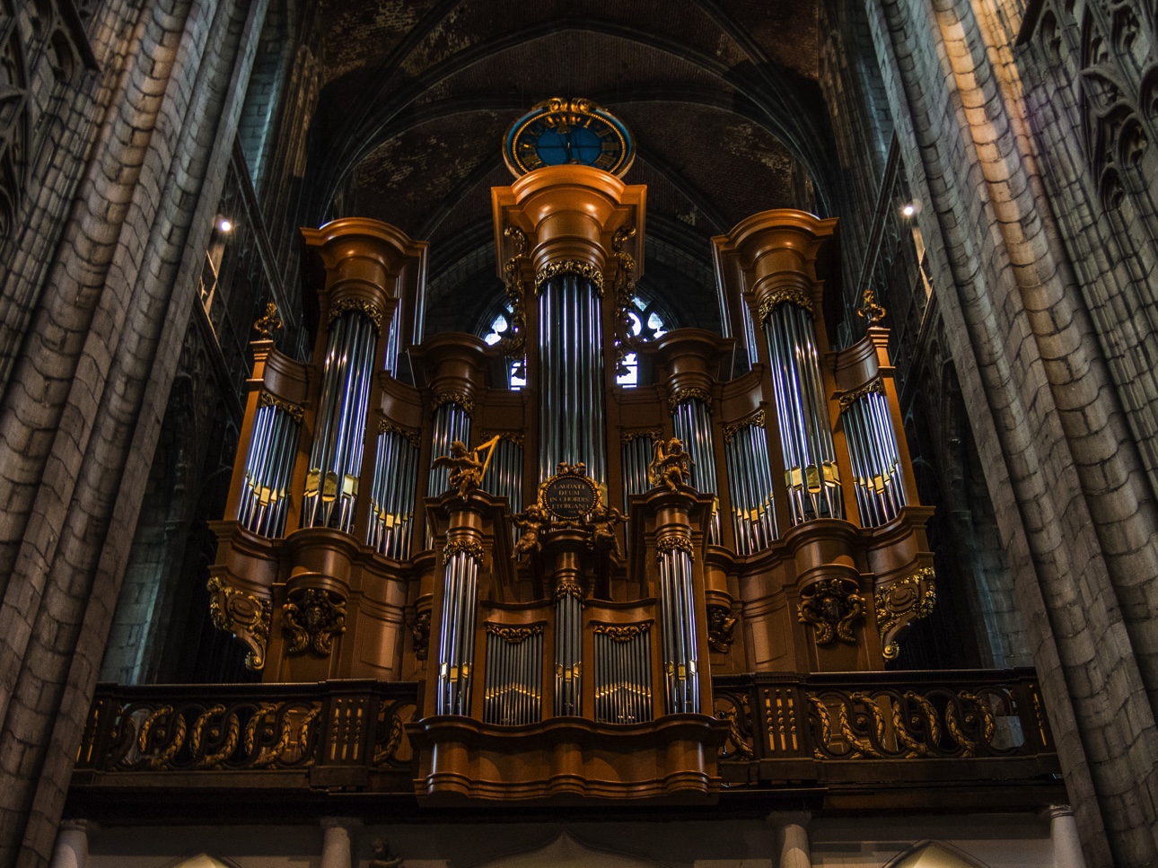 Les regards sont aussi attirés par deux éléments massifs : l’orgue et le Car d’or. L’orgue est un des plus joli sue j’ai pu voir. Surmonté d’une horloge, il trône à l’avant de la collégiale, tout rutilant car il a été restauré récemment.