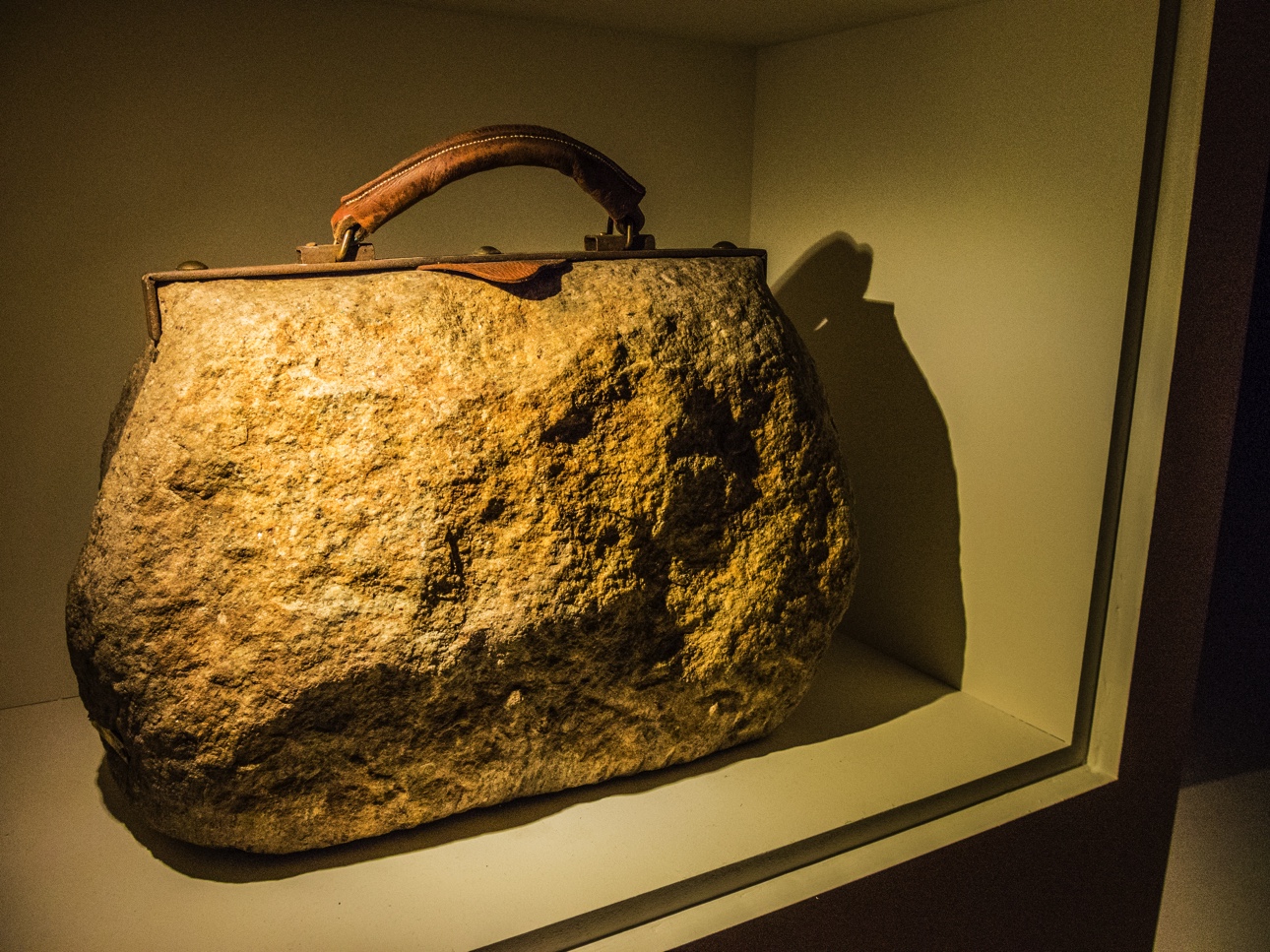 Dans Memento Mons, les collections historiques des musées montois sont mélangées à des oeuvres d’art contemporain ou de design : depuis les silex taillés lors de la préhistoire de la grotte de Spienne à un tabouret couvert de paillettes crée en 2018. Comme dans un vrai cabinet, l’exposition est arrangée par thèmes : « Mineralia », « Humanitas », « Albicolor », « Animalia »… Ce grand fourre-tout où en un clin d’oeil, on peut parcourir des siècles de vie sur Terre, est fascinant et à chaque thème, c’est un peu comme si j’allais déballer un panier surprise. Que vais-je y trouver ? Cela nous emmène à prendre énormément de recul sur l’Homme, son impact et le monde où nous habitons. Petit plus insolite, dans certaines salles de thèmes, des galets parfumés ont été disposés. Reniflez-les : à quoi l’odeur vous fait-elle penser ? Elle est en rapport avec une des oeuvres exposées. Je dois dire que ce n’est pas facile que ça, je me suis plantée à chaque fois (il y en a 5). Essayez de jouer le jeu sinon, reportez-vous au livret qu’on vous donnera à l’accueil du musée !