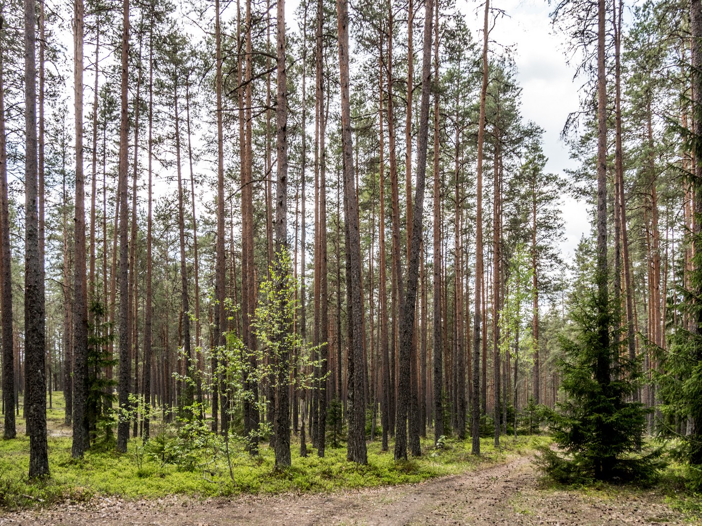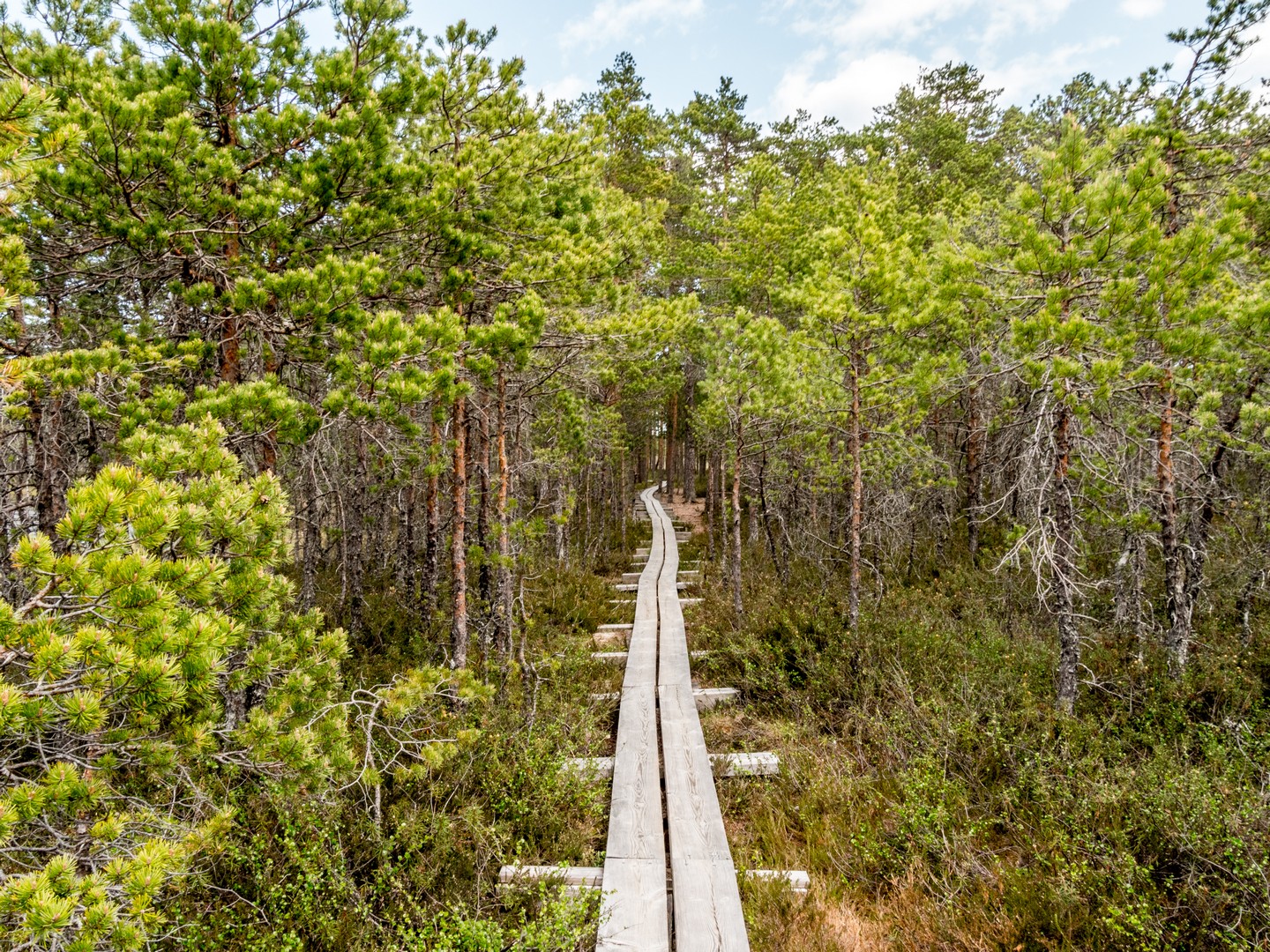 On ne découvre pas tout de suite la tourbière. Comme un trésor, elle se révèle après avoir traversé un périple à travers la forêt. Une forêt boréale qui couvre 70 % de la surface du parc de Lahemaa. On chemine sur les sentiers, entourés de sapins, de pins de Sibérie et de bouleaux, la sainte trinité des forêts estoniennes. Une forêt solennelle, silencieuse, aussi altière que ses conifères. En même temps, les arbres étant relativement hauts, et les sapinières n’étant pas un environnement propice à d’autres espèces qui pourraient grandir sous leur ombre, ce n’est pas une forêt drue qui semble se refermer sur vous. Elle est, au contraire, aérée. Et je suis seule, merveilleusement seule. C’est le bonheur.