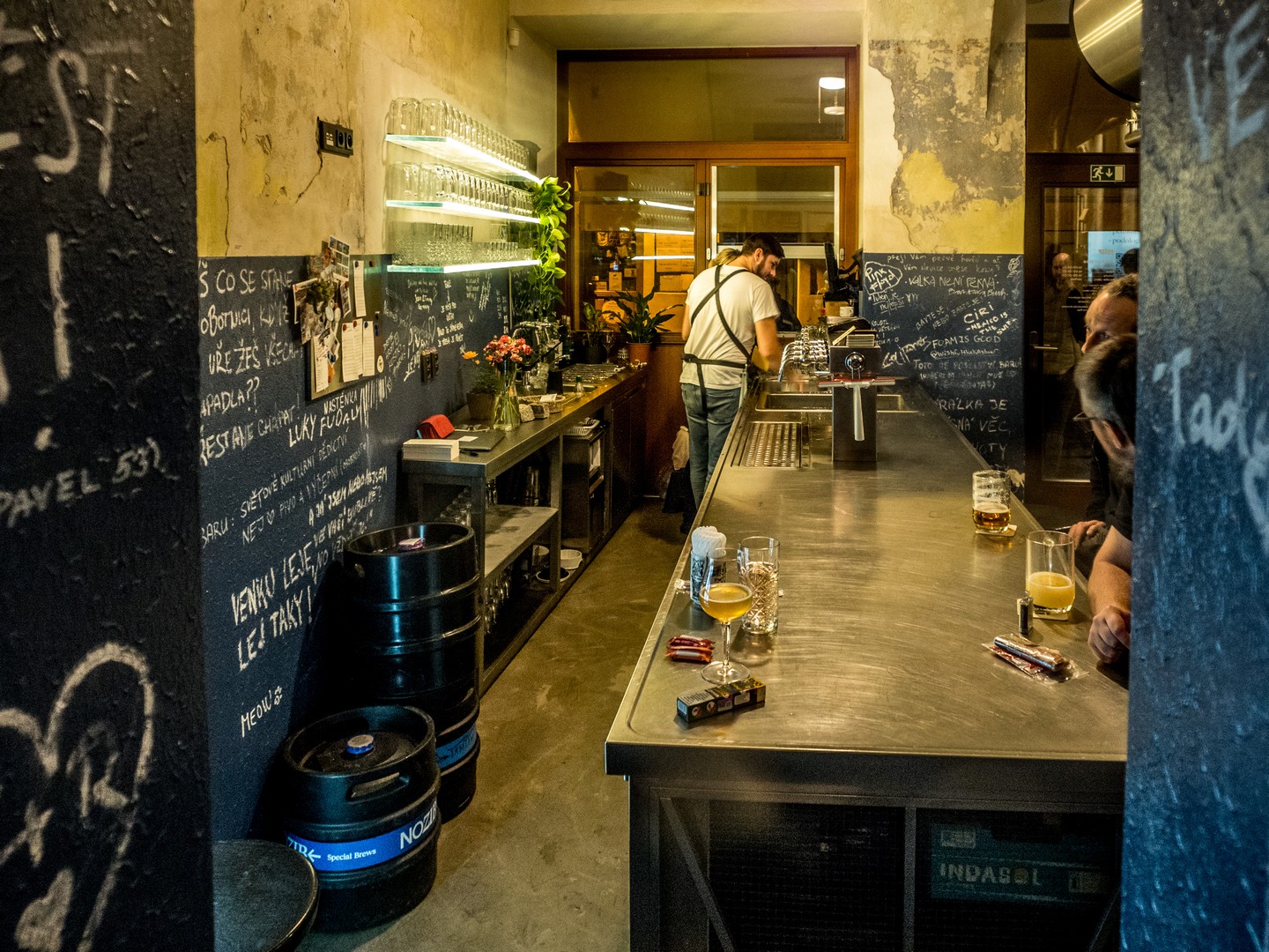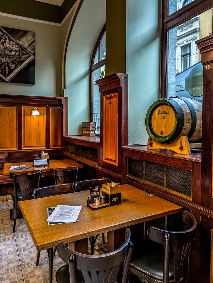L’un des temples de la bière artisanale à Pilsen, le petit frère du Lokál juste à côté ! Si vous avez assez de la pils (quoique, il y en a aussi au menu), voilà l’endroit rêvé pour tester IPA, lagers et autres porters ou sours. En plus d’un personnel qui s’y connaît, vous aurez droit à une bonne playlist (pas trop forte, pour qu’on s’entende parler pendant qu’on déguste). L’ambiance un peu « ruins bars » fait le reste ! Le gros plus, c’est que si une bière vous plaît, il y a de fortes chances que vous trouviez une canette dans le frigo, à emporter chez vous en souvenir.