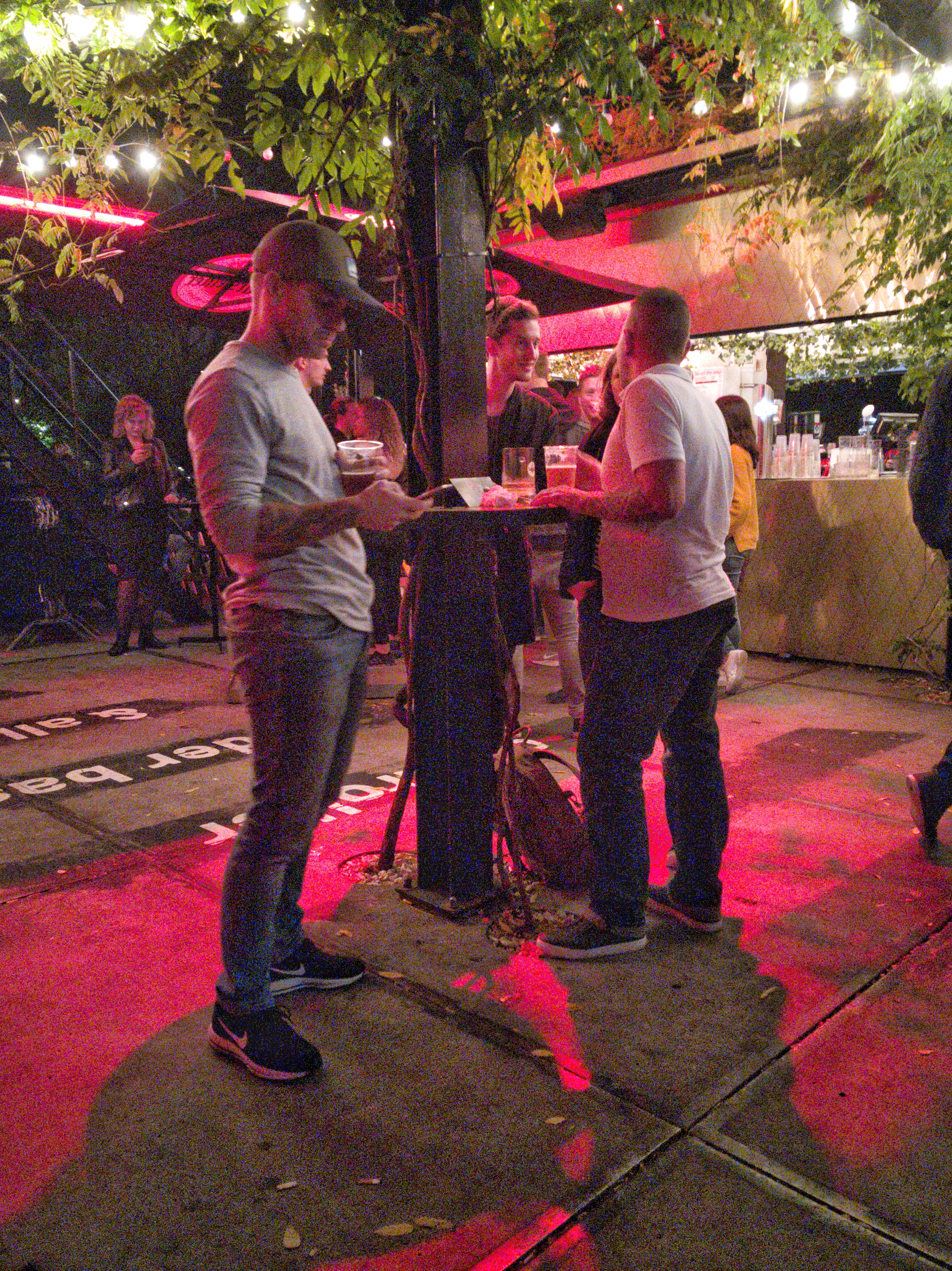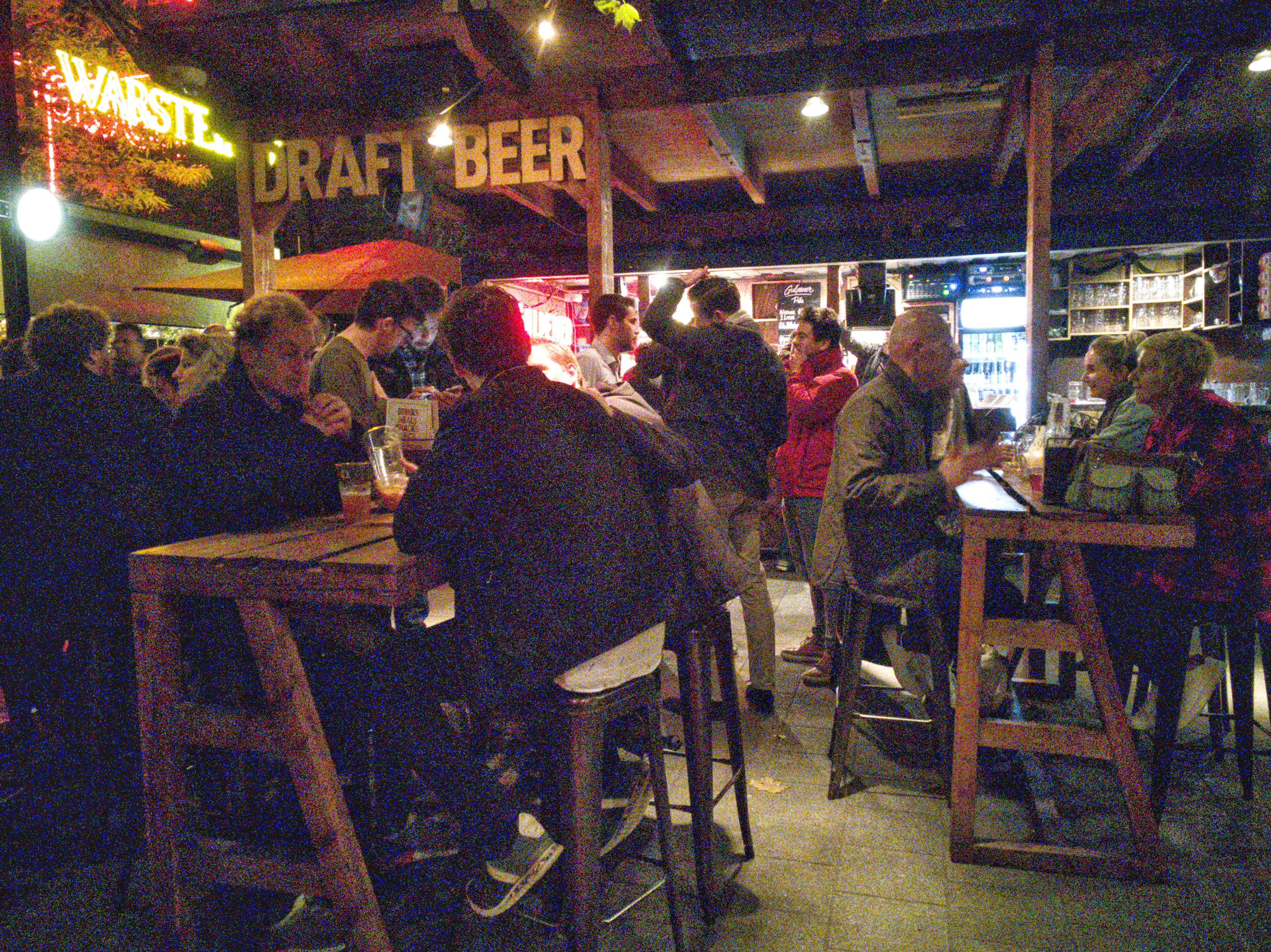 La nuit tombée, je m’aventure un peu plus loin… C’est que le quartier de la gare recèle pas mal de chouettes surprises et comme l’été indien est enfin arrivé, il y a du monde dehors… surtout au Biergarten, un grand espace en plein air emménagé sur une friche avec multiple bars à bière et une cuisine où l’on peut commander de délicieux burgers, des brochettes, etc. Et il y a un monde de dingues ce soir ! J’ai tellement faim que mon burger me semble un délice tombé des cieux et c’est avec un dernier revers de la main que je me débarrasse d’un peu de jus de viande qui coule de ma dernière bouchée (les serviettes étaient un peu chiches) et que je rentre finalement dans mon logis temporaire, avec une alarme tôt le matin pour profiter de mon unique journée.