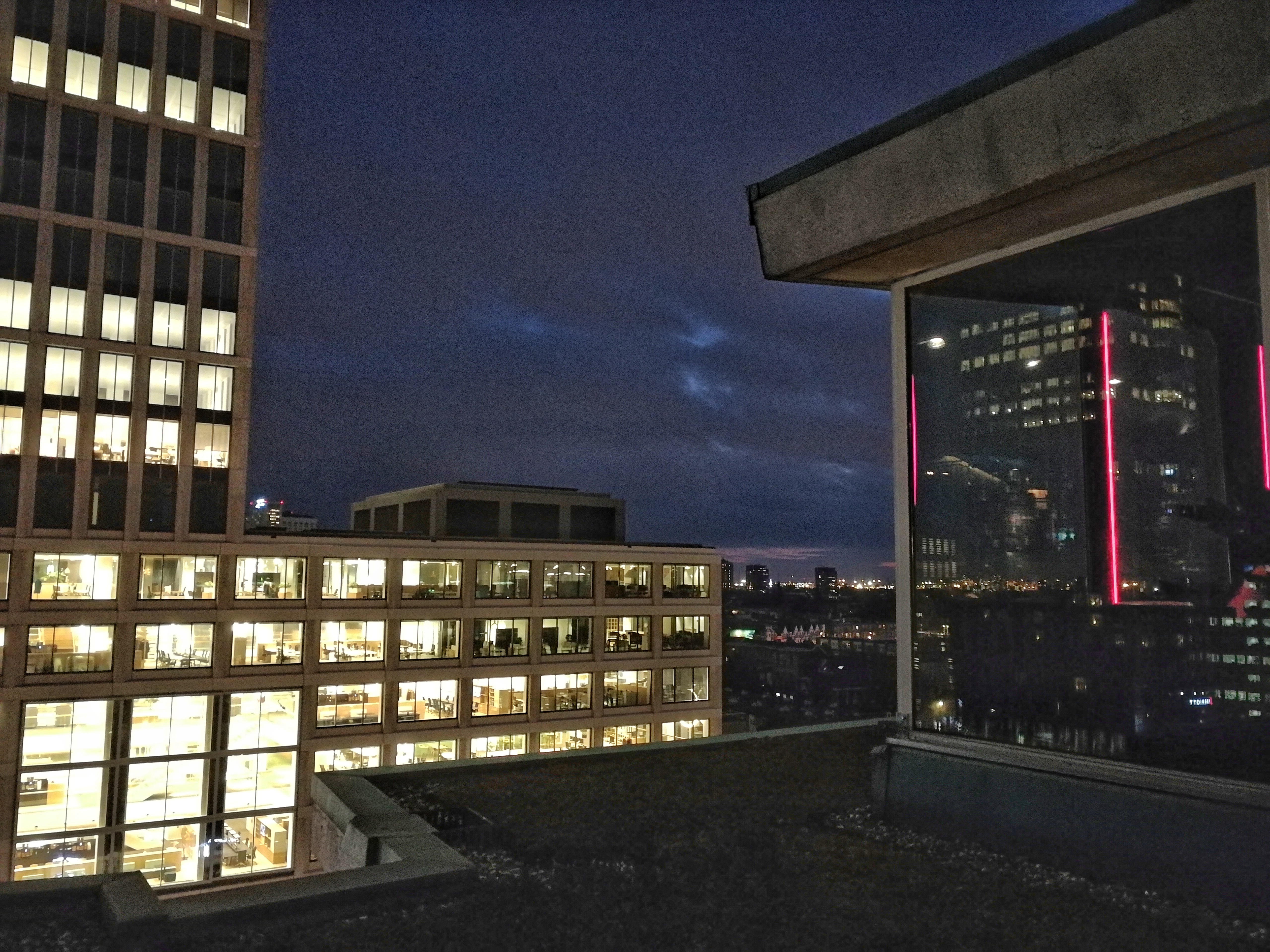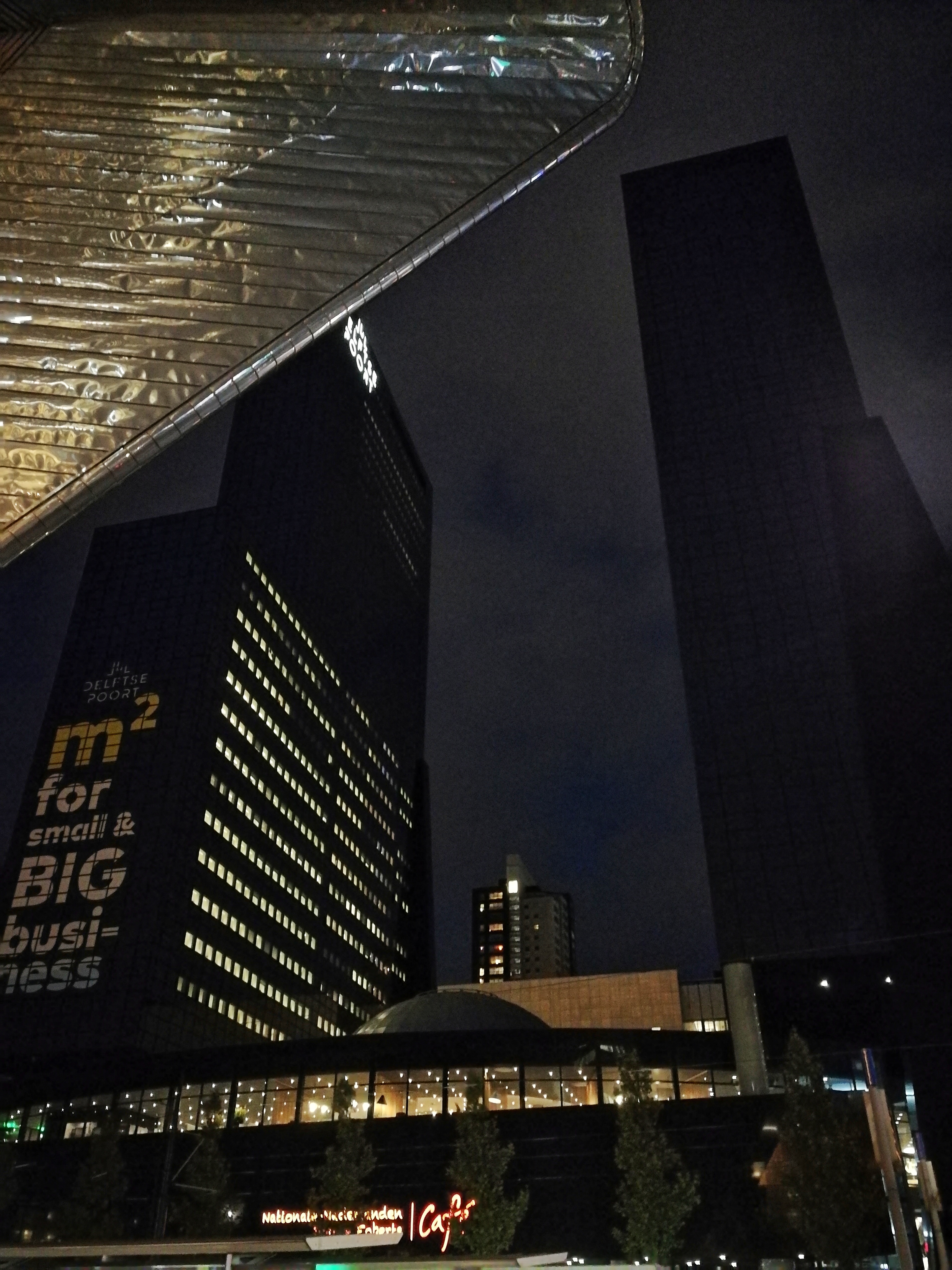 Je n’ai pas le temps de m’attarder, le soir va tomber et je me précipite dehors ! Finalement, j’ai le temps de profiter un peu plus pour observer mon environnement. Rotterdam est une drôle de ville… Une ville très à l’américaine, remplie de gratte-ciel et bâtiment neufs, tout le contraire de l’image que l’on a des villes hollandaises chargées d’histoire. La raison est simple, comme pas mal de villes portuaires, elle fut bombardée pendant la Deuxième Guerre mondiale et son bâtit, détruit à 90 % dès le début de la guerre. Après Le Havre, c’est une autre ville martyre des bombardements que je visite mais le parti-pris pour la reconstruction est ici complètement différent. Alors que Le Havre semble en partie avoir été reconstruite toute d’un bloc et au même moment, Rotterdam est une ville qui se renouvelle tout le temps, en évolution permanente, portée par son port (le plus grand d’Europe) et la prospérité qui en découle.