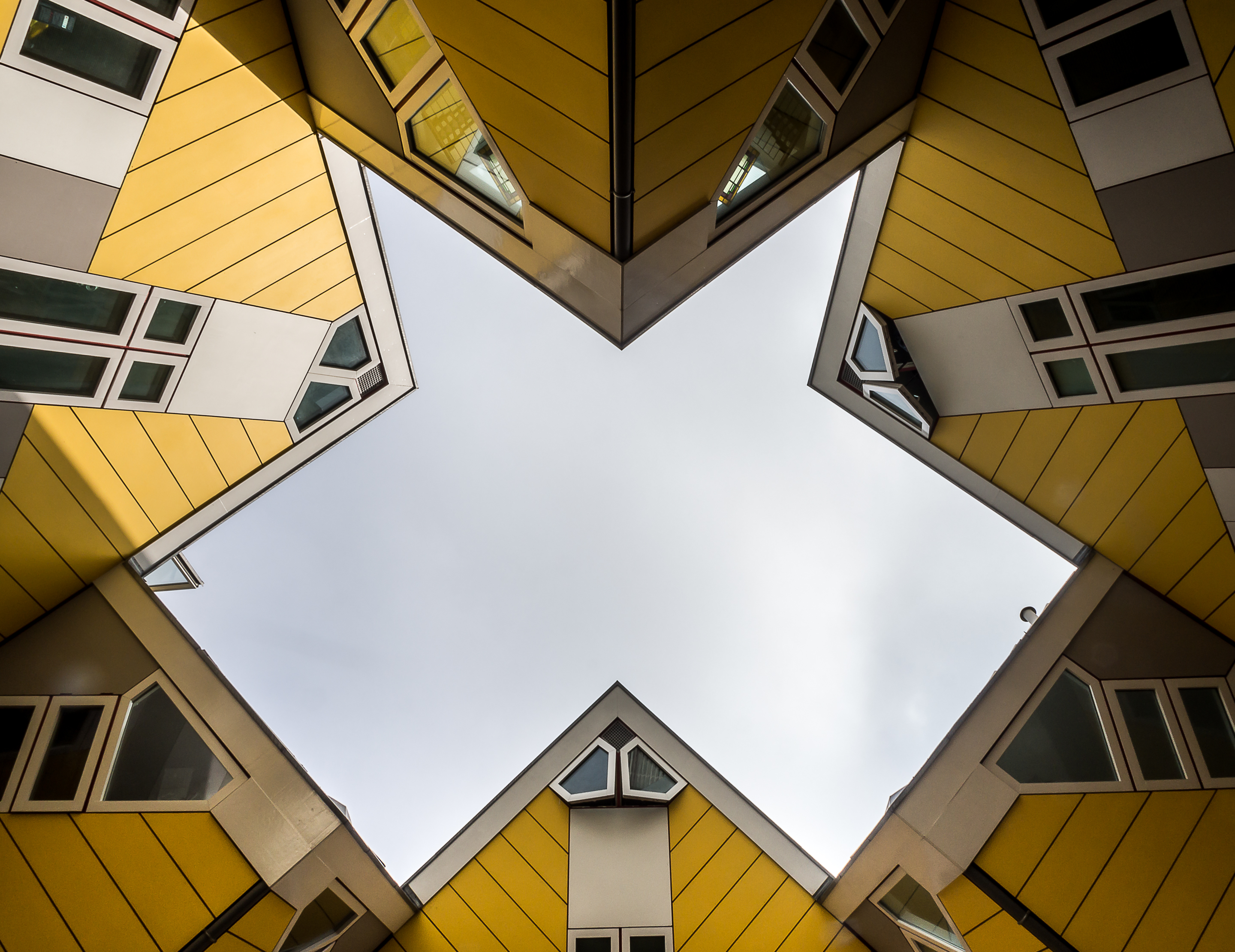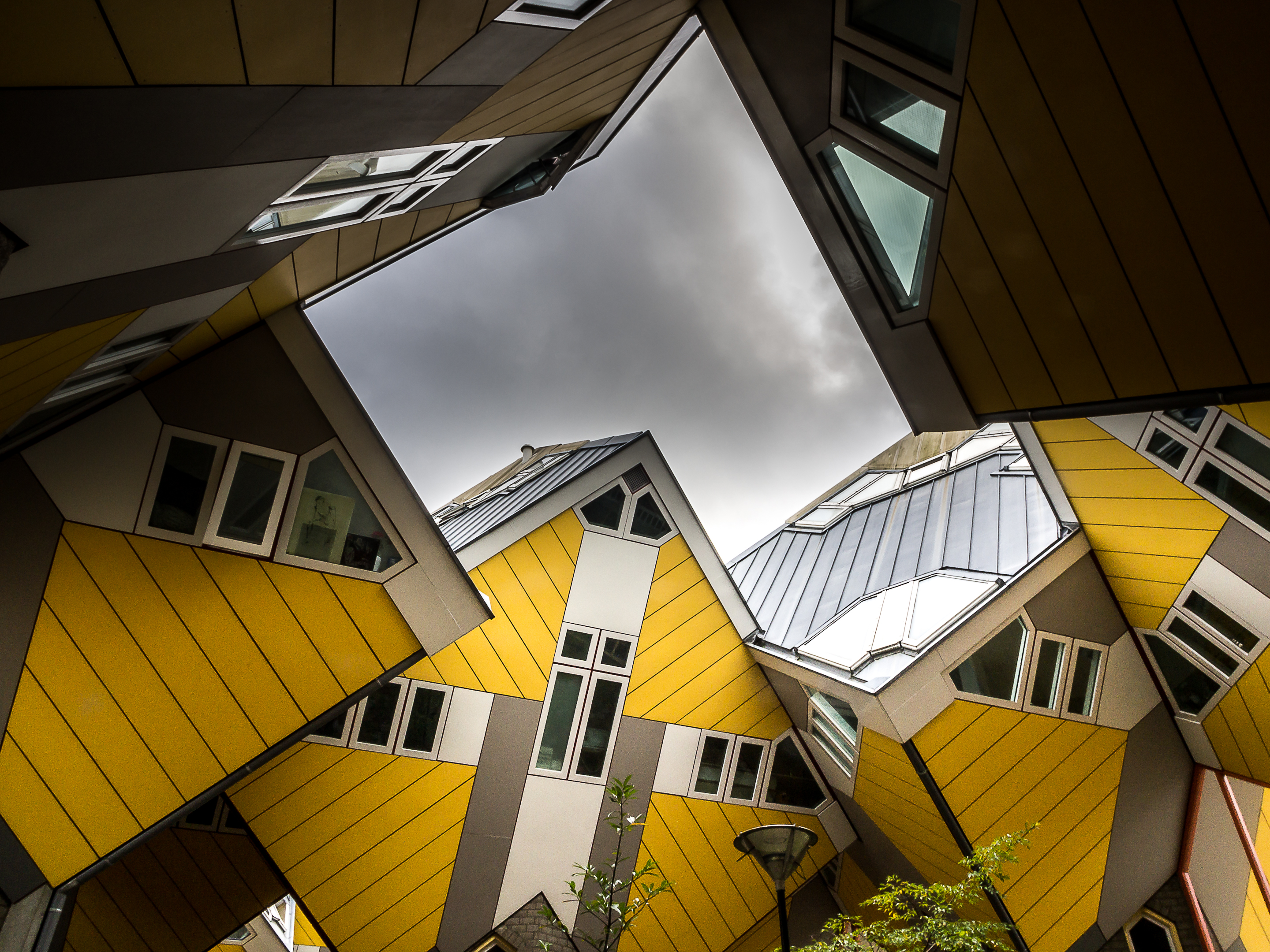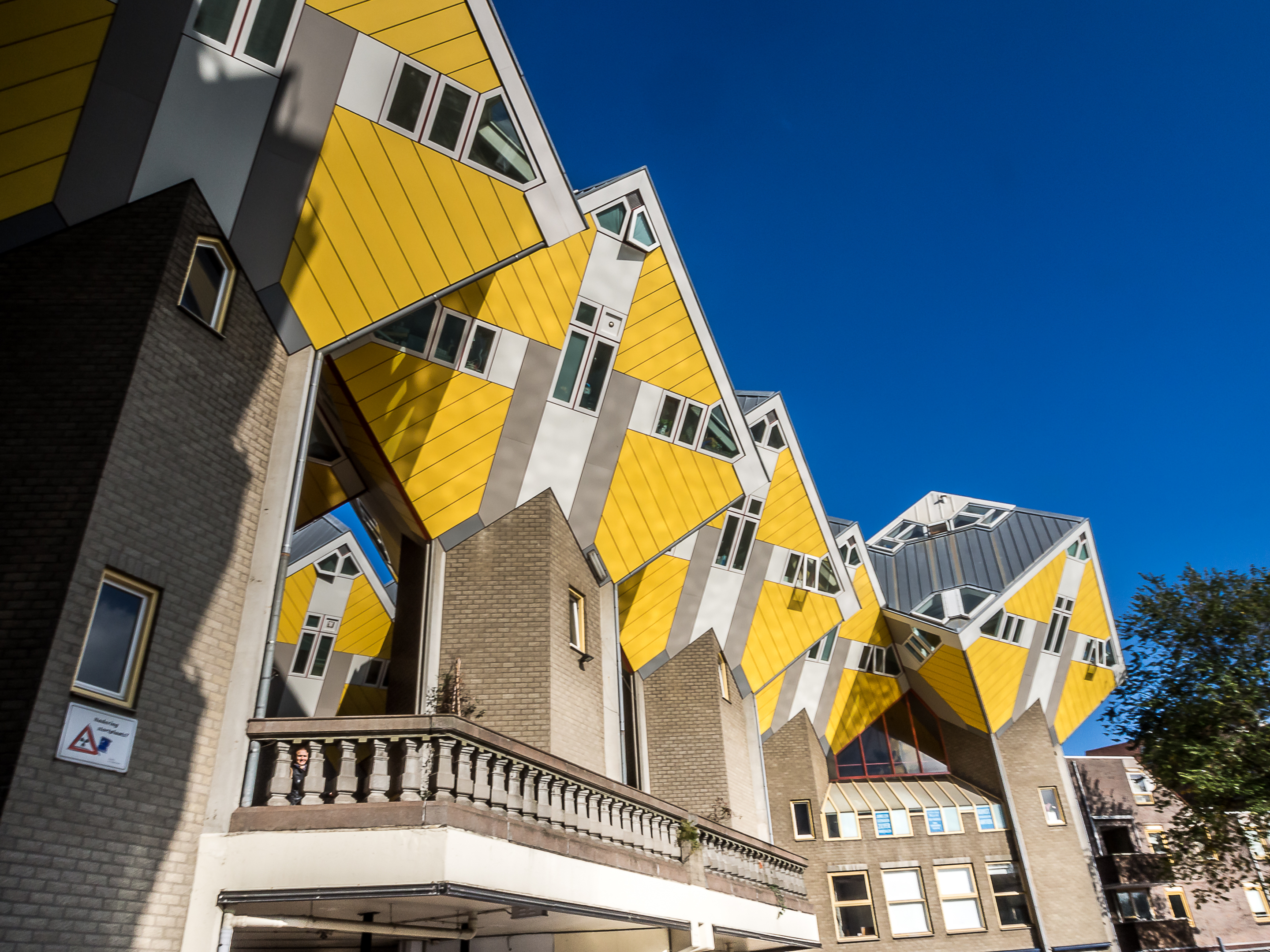 Nous sommes dans le quartier de Blaak et c’est justement ici que se trouvent les logements urbains parmi les plus insolites d’Europe : les maisons cubiques (Kubuswoningen en néerlandais).
