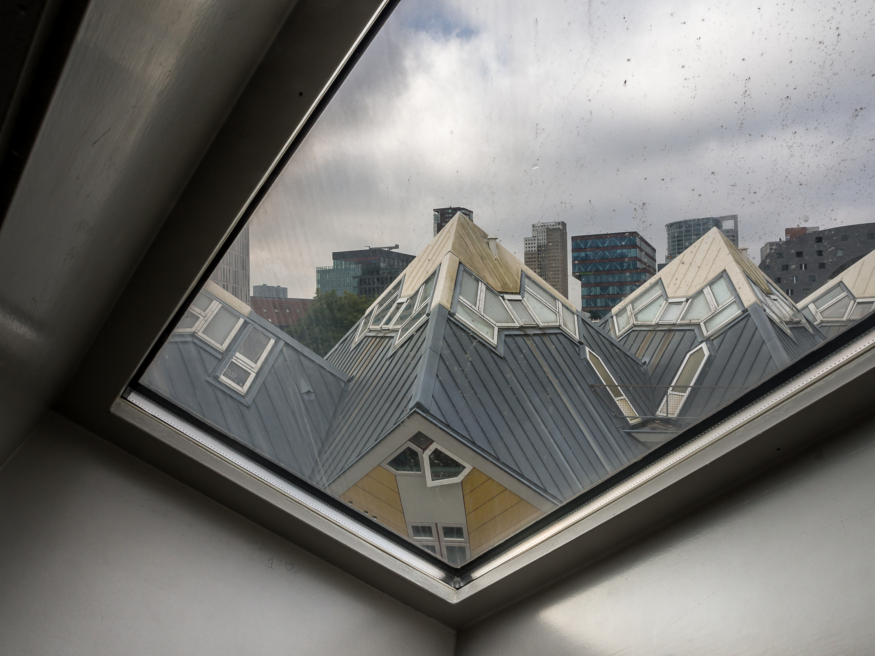 C’est une vieille connaissance que je vais visiter quand j’arrive à Rotterdam, le temps d’un citytrip. Une veille connaissance qui est restée malgré tout énigmatique : le paradoxe des conférences quand on est organisateurs. On y reste longtemps mais on ne voit quasi rien de l’endroit où on est, bloqués que nous étions dans un hôtel juste en face du campus universitaire avec pas une seule minute à nous. Mon seul souvenir marquant était la balade en bateau sur la Nouvelle Meuse qui avait conclu la conférence pour tous les participants. Je m’étais promise d’y retourner, cette ville à l’architecture contemporaine si inhabituelle pour l’Europe avait tout pour retenir mon attention. Enfin, le moment était venu et pendant que je dégustais ma pochette de beefjerky dans mon bus, je jubilais… Nouvelle promesse tenue !