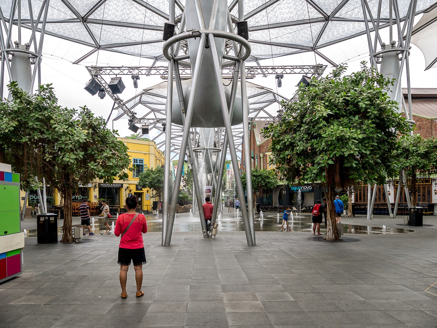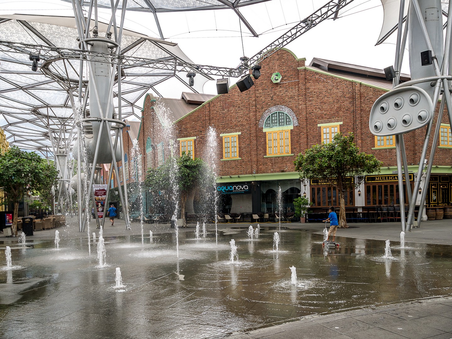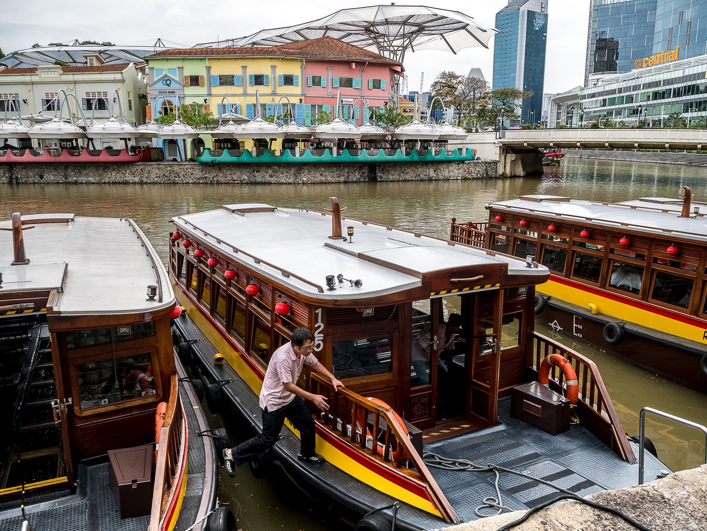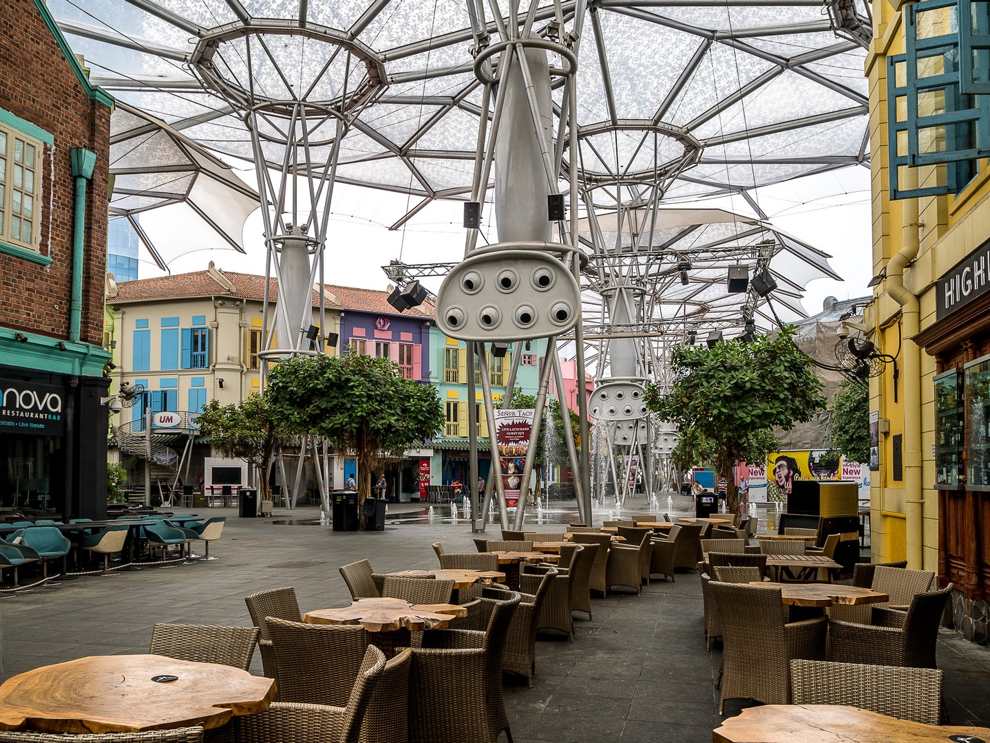 Je passe le pont qui surplombe la rivière pour me replonger dans la modernité : c’est ici que se trouve Clarcke Quay, l’endroit où il faut venir boire un verre le soir (pas de chance, nous sommes en fin de matinée). Ces anciens quais et hangars qui ont joué un rôle important à Singapour ont été convertis en bars, restaurants et nightclubs ! Un véritable Disneyland pour adultes qui mêle l’architecture industrielle du XIXème avec des éléments contemporains. Je ne sais pas trop quoi en penser. L’endroit est joli. Un peu kitsch, mais joli… mais tout semble tellement avoir été planifié au cordeau que j’en ressors avec l’impression de voir une ville de carton-pâte.