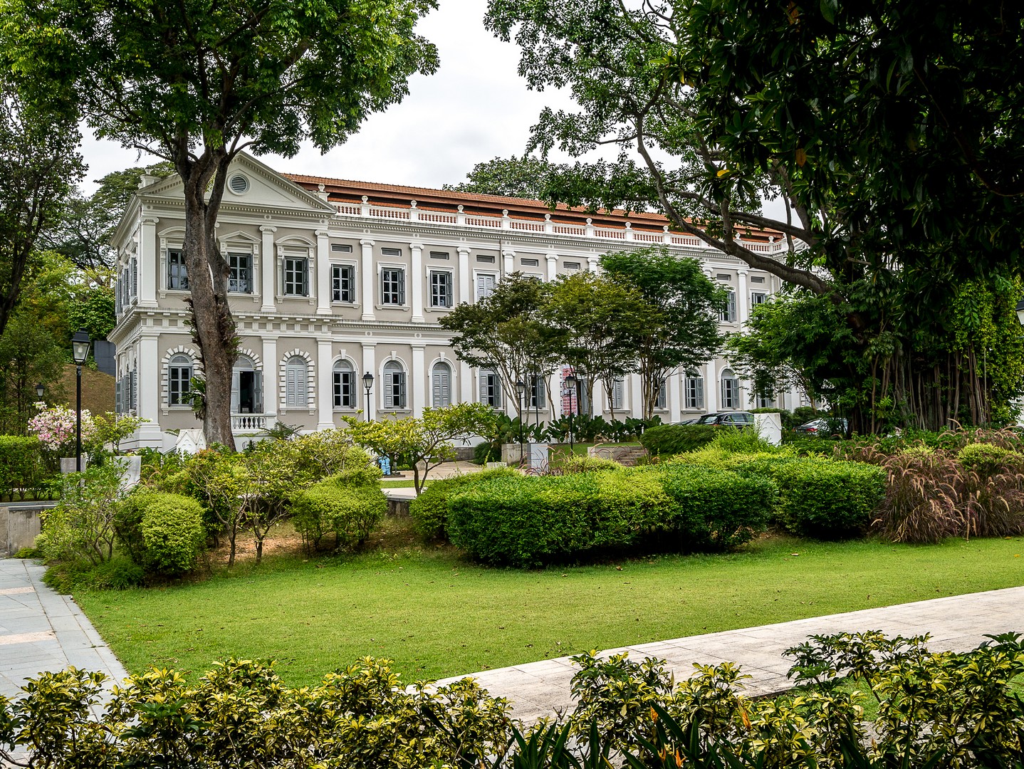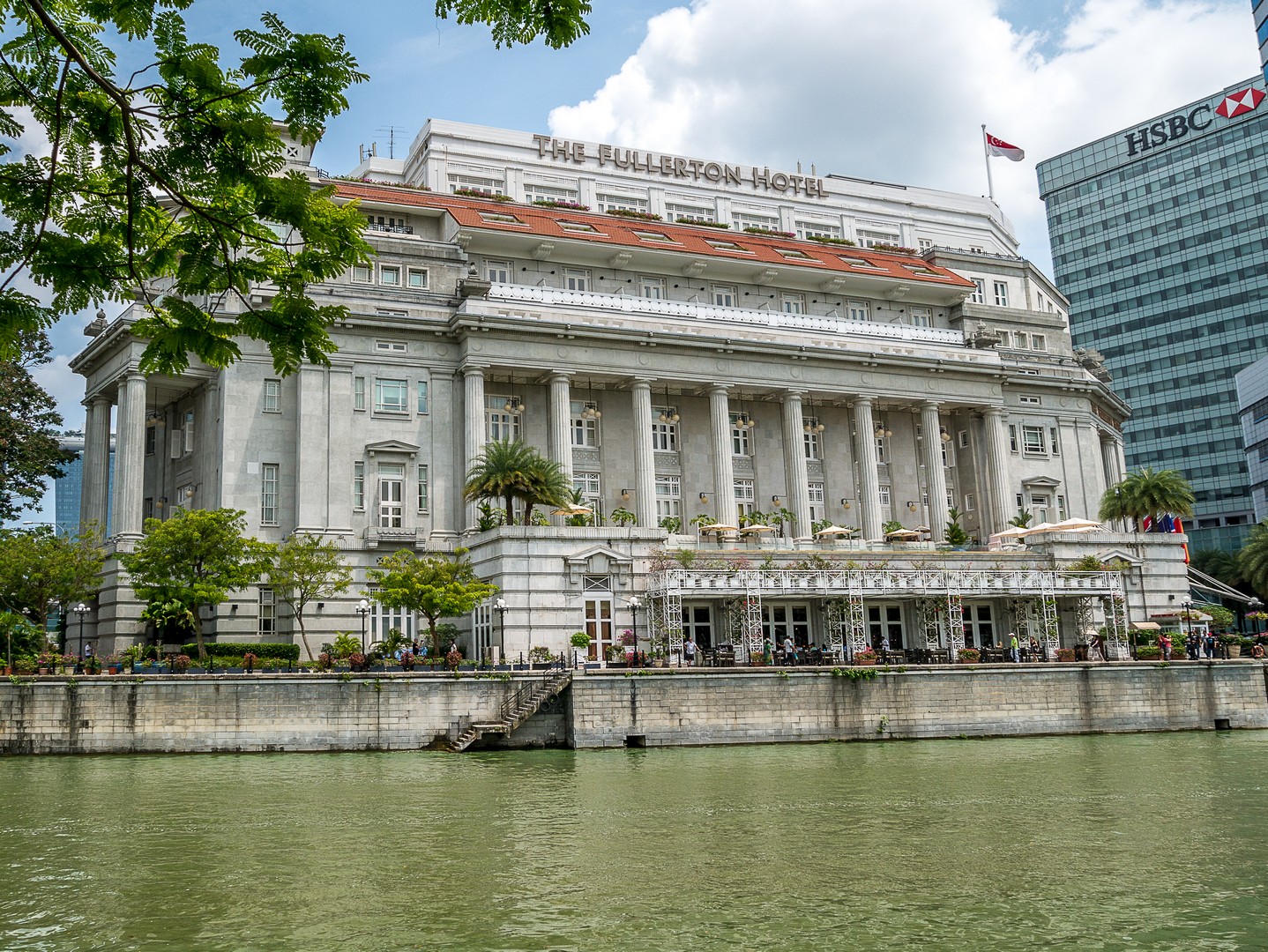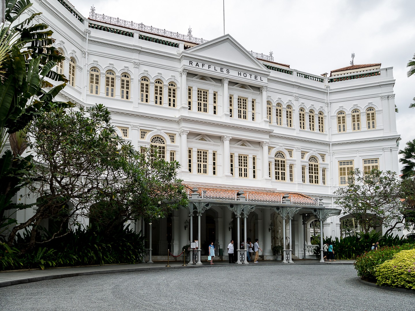 Le passé colonial, je vais le retrouver chez une institution singapourienne, l’un de ses plus célèbres hôtels : le Raffles Hotel ! Le Raffles porte le nom de Thomas Stamford Raffles qui créât le comptoir qui allait devenir Singapour. Oui, ce même Raffles dont je parlais quand je t’ai raconté Borobudur, Lectrice, Lecteur. Cet hôtel a le charme que les bâtisses coloniales peuvent prendre sous les tropiques. Sans doute l’incongruité d’un tel bâtiment et le symbole d’une époque révolue. Je croise d’ailleurs la silhouette d’un vieux monsieur bien mis, Occidental, bien trop habillé pour la chaleur tropicale. Sa silhouette qui se soutient avec une canne me laisse songeuse. Il a l’air d’être un habitué et de circuler en sans avoir l’air de se demander où il va. Il fait peut-être partie de ces Britanniques nés dans ces anciennes colonies de parents déjà nés ici mais plus british que les Britanniques eux-mêmes. Élevé dans le souvenir distant d’une patrie idéalisée. Je le laisse continuer son chemin sur le marbre immaculé de l’hôtel. Tout respire l’opulence ici… l’architecture, les décorations, la profusion de plantes… le lieu est tellement exclusif que vous ne pourrez pas mettre un pied dans le lobby (ce qui est EXTRÊMEMENT rare dans un hôtel). Par contre, vous ne rencontrerez aucun problème pour y manger ou y boire un verre. Comme il est presque midi, je n’ai aucun complexe à aller m’asseoir à la table d’un des bars puisque c’est ici même que l’on a crée un classique des cocktails : le Singapore Sling ! Plutôt que de m’installer au fameux Long Bar, j’ai préféré m’attabler au bar qui se trouve dans le jardin, à l’ombre des arbres pour déguster ce breuvage qui a, selon la légende, été inventé pour permettre aux dames de boire un peu d’alcool, à l’époque où ce n’était pas socialement acceptable, en le faisant passer pour un simple punch. Sa couleur rose donné par la grenadine fit le reste !