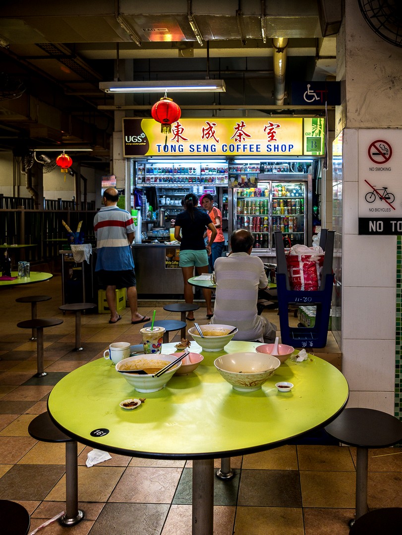 De là, je tombe sur mes premiers « hawkers », une institution à Singapour ! Si la ville est plutôt chère pour l’Asie du sud-est, y manger ne l’est pas… si vous visitez les « hawkers ». Les « Hawkers » sont des centres regroupant plusieurs étals de « street-food »… justement pour les sortir de la rue (à Singapour, ça fait désordre) et me voilà plongée dans l’Asie qui m’est familière : celle de ces grands foodcourts, à se promener entre les stands, à respirer des odeurs souvent inconnues, à se demander ce qui est en train d’être préparé à chaque station, à se laisser bercer par une langue incompréhensible et à partager un moment de quotidien avec les habitants. Sous les néons du foodcourt, je me laisse envahir par l’Asie.