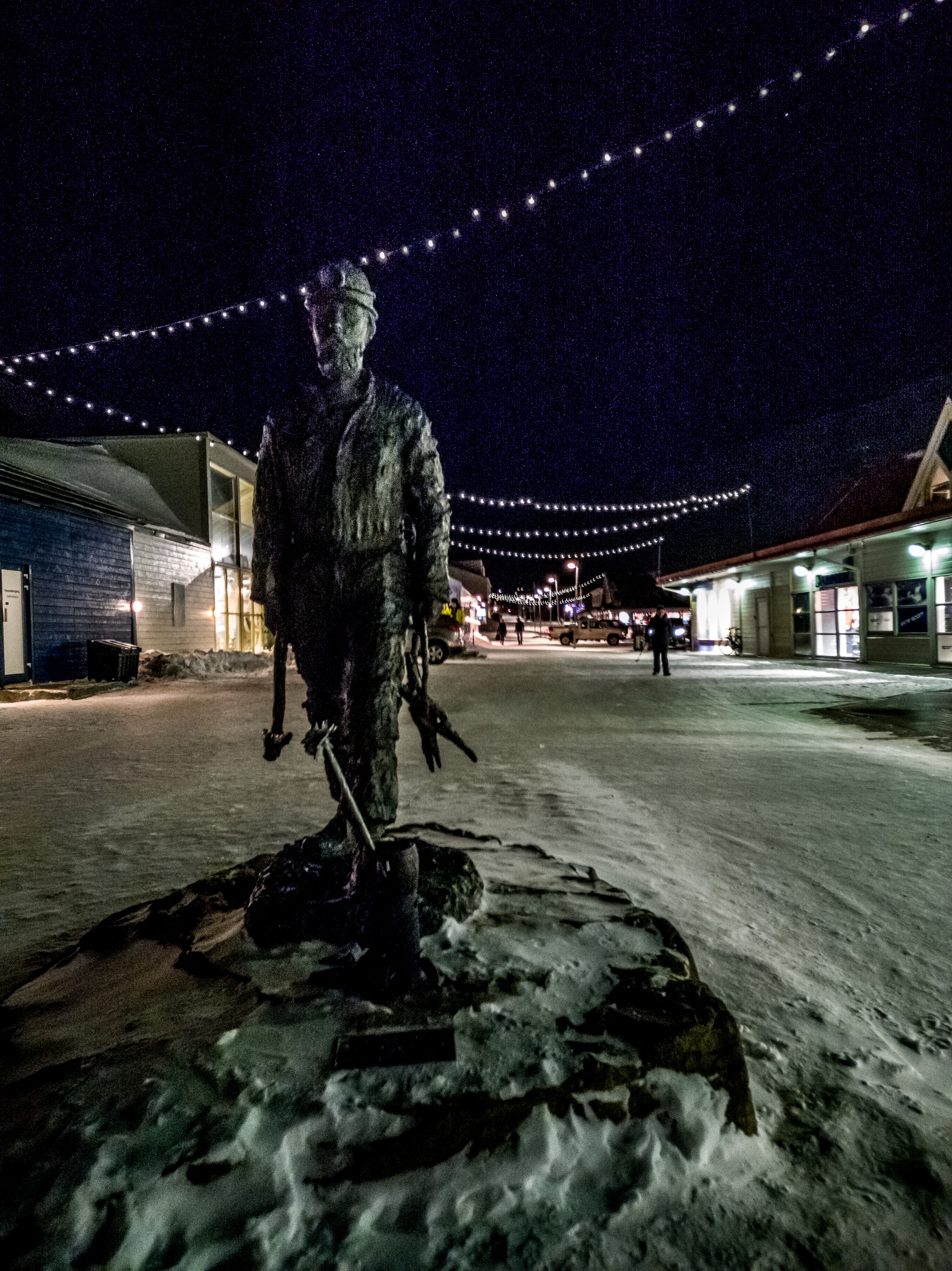 Quelqu’un qui apprécie la nuit polaire, c’est Jan le guide. Sur le chemin du retour, ayant finalement réussi à rejoindre le reste du groupe, j’en ai profité pour faire la causette. Jan est un habitué du milieu polaire, son champ d’étude se portant sur ce milieu précis. Et lui, il aime bien cette période de l’année avec ses lumières multicolores qui égaient la ville, la lueur chaude des fenêtres, la danse des aurores… C’est aussi une période beaucoup plus calme, où on se retrouve « entre soi » et où on est plus attentif à soi et aux autres car il faut affronter le long hiver. Finalement, c’est l’été qui est plus dur à gérer, avec la lumière 24h/24, tout le monde est en mode hyperactif, n oa des difficultés à dormir et cela crée un drôle de mélange.
