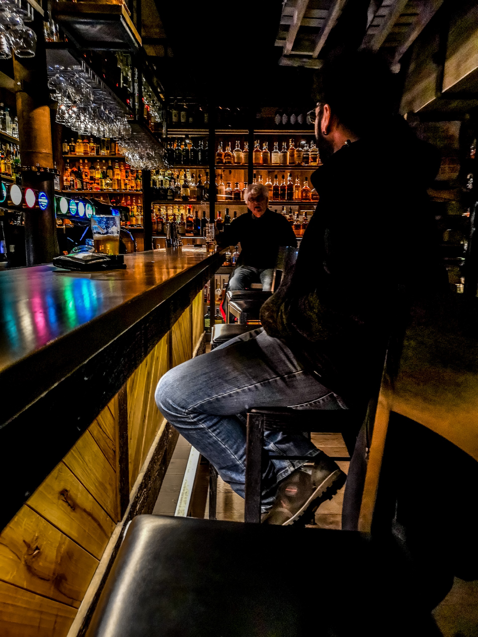 Avant de rentrer, je ne peux pas faire sans aller boire au Karlsberger Pub. Surnommé avec affection KB, c’est LE lieu si vous voulez socialiser à Longyearbyen. Avec sa lumières tamisées et son bar garni de dizaine de bouteilles de whisky et d’autres alcools de choix, on se sent tout de suite à son aise. Ce ne sont pas les alcools forts qui m’intéresse quand je vais m’asseoir au bar mais plutôt la bière que l’on brasse ici-même à Svalbard Bryggeri, la micro-brasserie la plus au nord du monde et que j’avais eu l’occasion de visiter il y a quelques années.