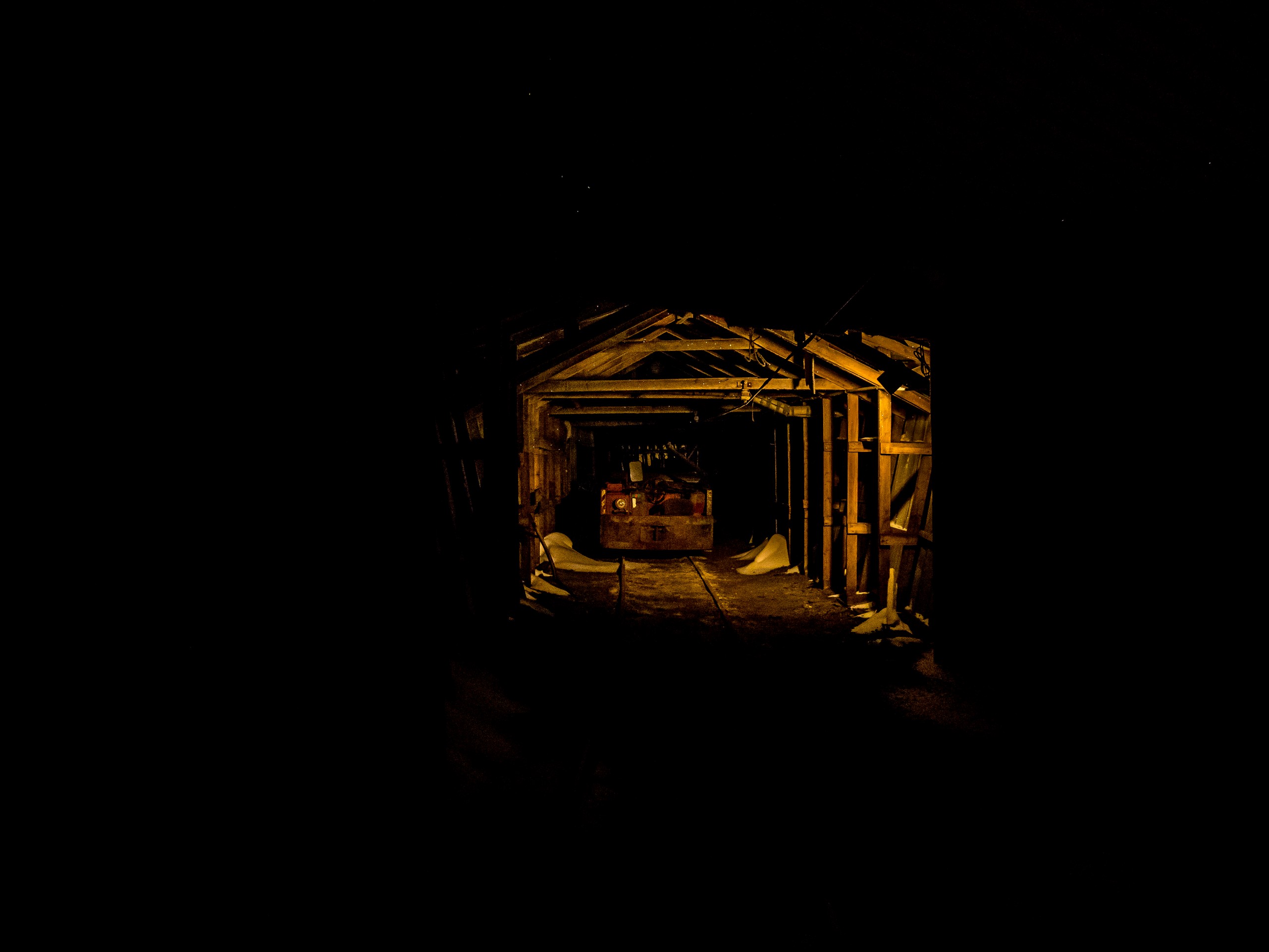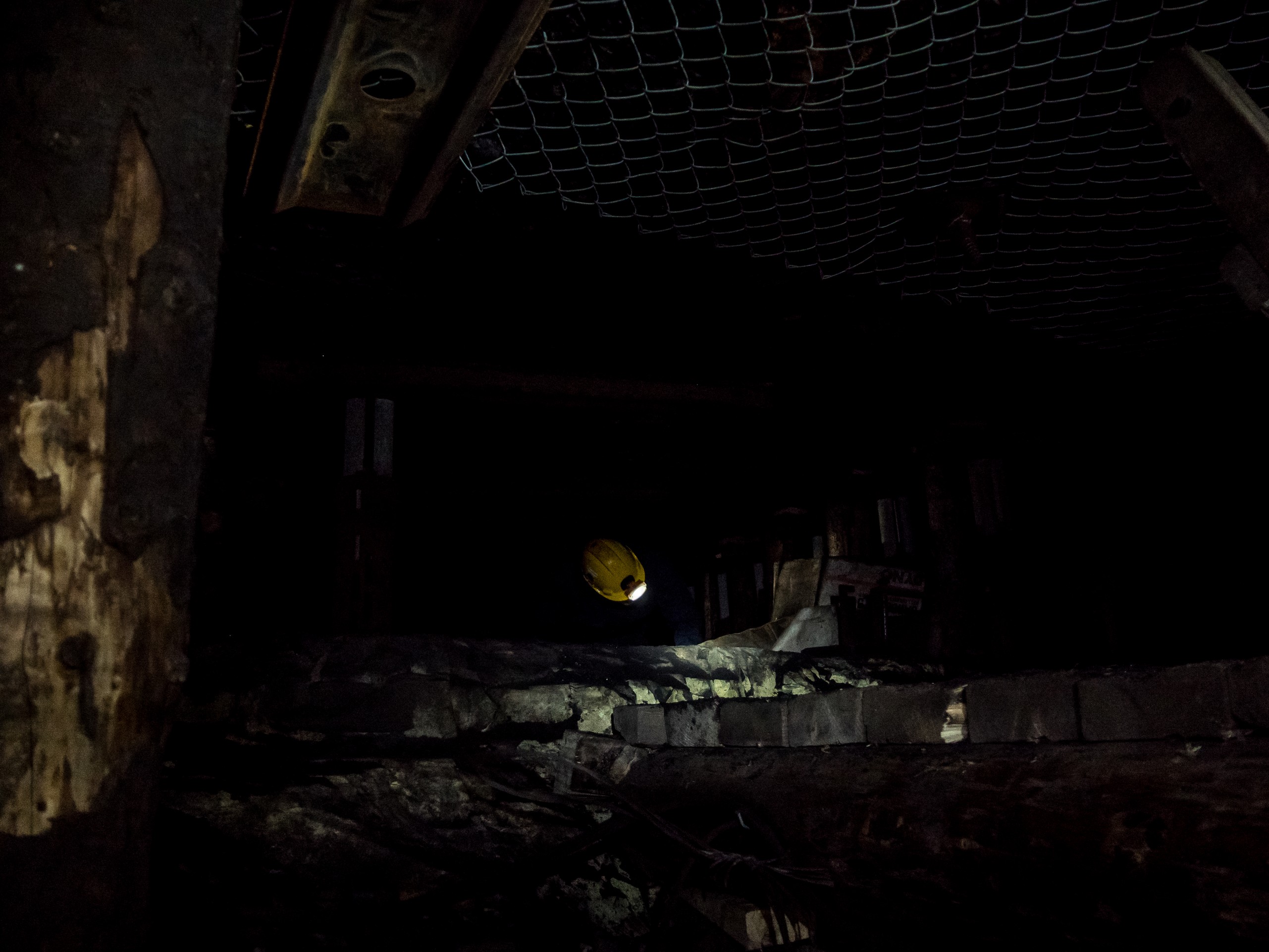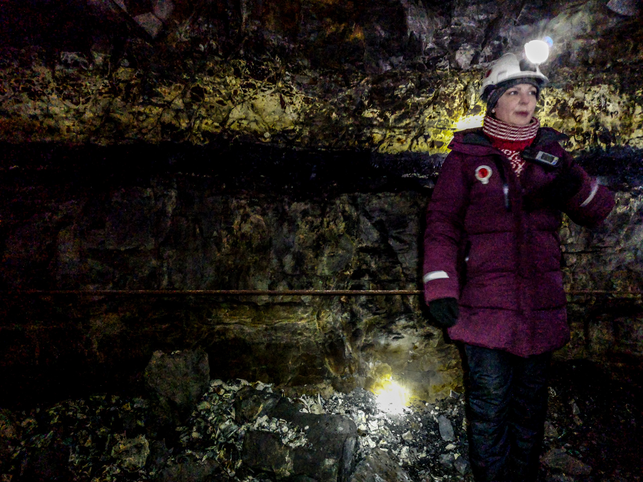 Enfin, nous voilà en train de marcher dans le coeur de la montagne. Si elle reste froide, la température monte quand même de quelques degrés ici. C’est une immense « allée » qui est taillée dans le rocher et d’où rayonnent des petites galeries. La particularité de la Mine No 3, c’est que les veines de charbons sont toutes fines et que le galeries le sont tout autant. Pour y entrer, les mineurs devaient y ramper, matériel attaché au côté ou au pied, avant de pouvoir s’en saisir et de commencer à percer. Bref, le travail se faisait… allongé ! Vous aurez même l’occasion de voir par vous même : on peut se glisser dans une des « strossa » pour se rendre compte de ce que celà impliquait. C’est à dire qu’une hauteur de 50cm, c’était déjà du luxe !