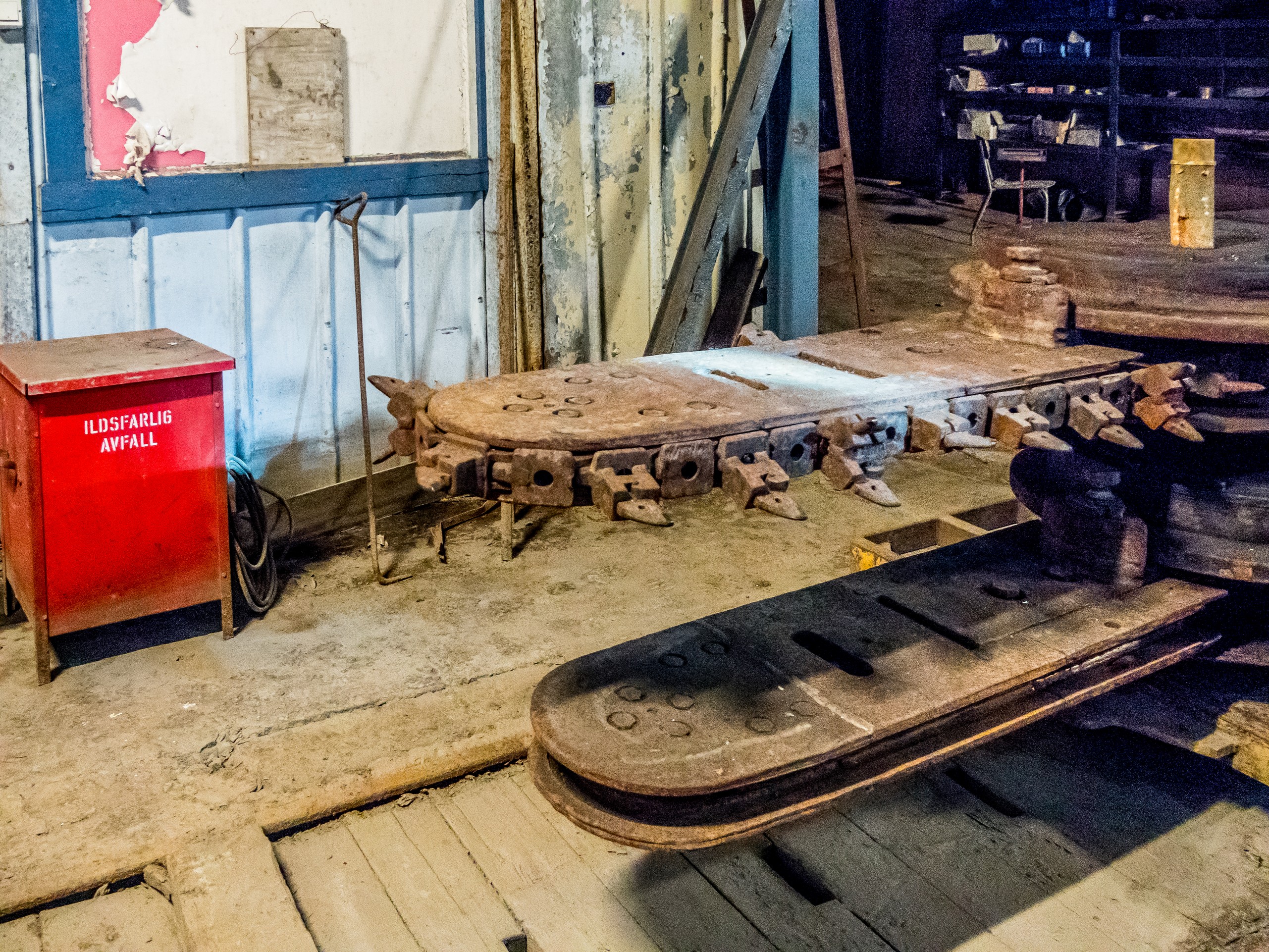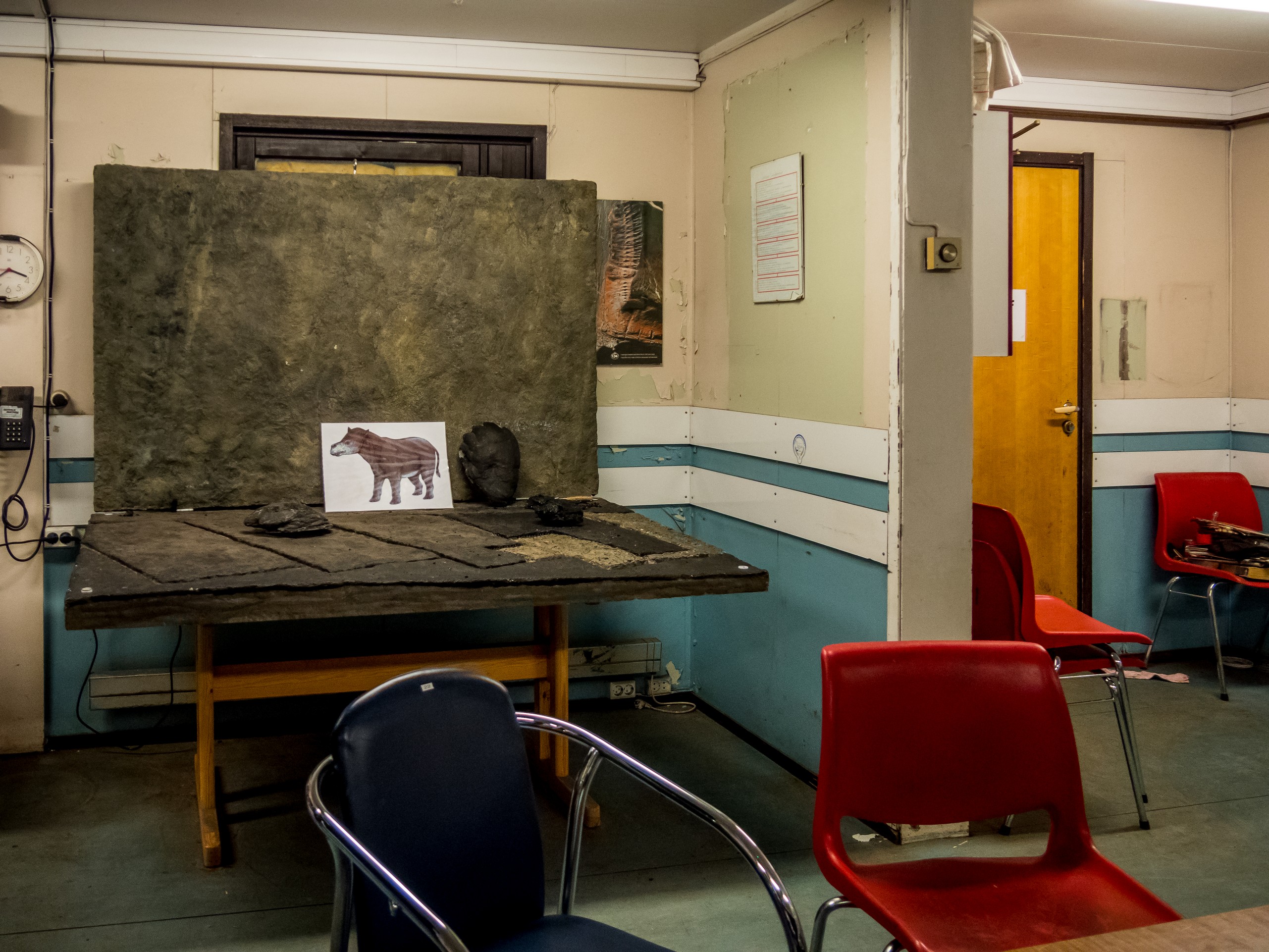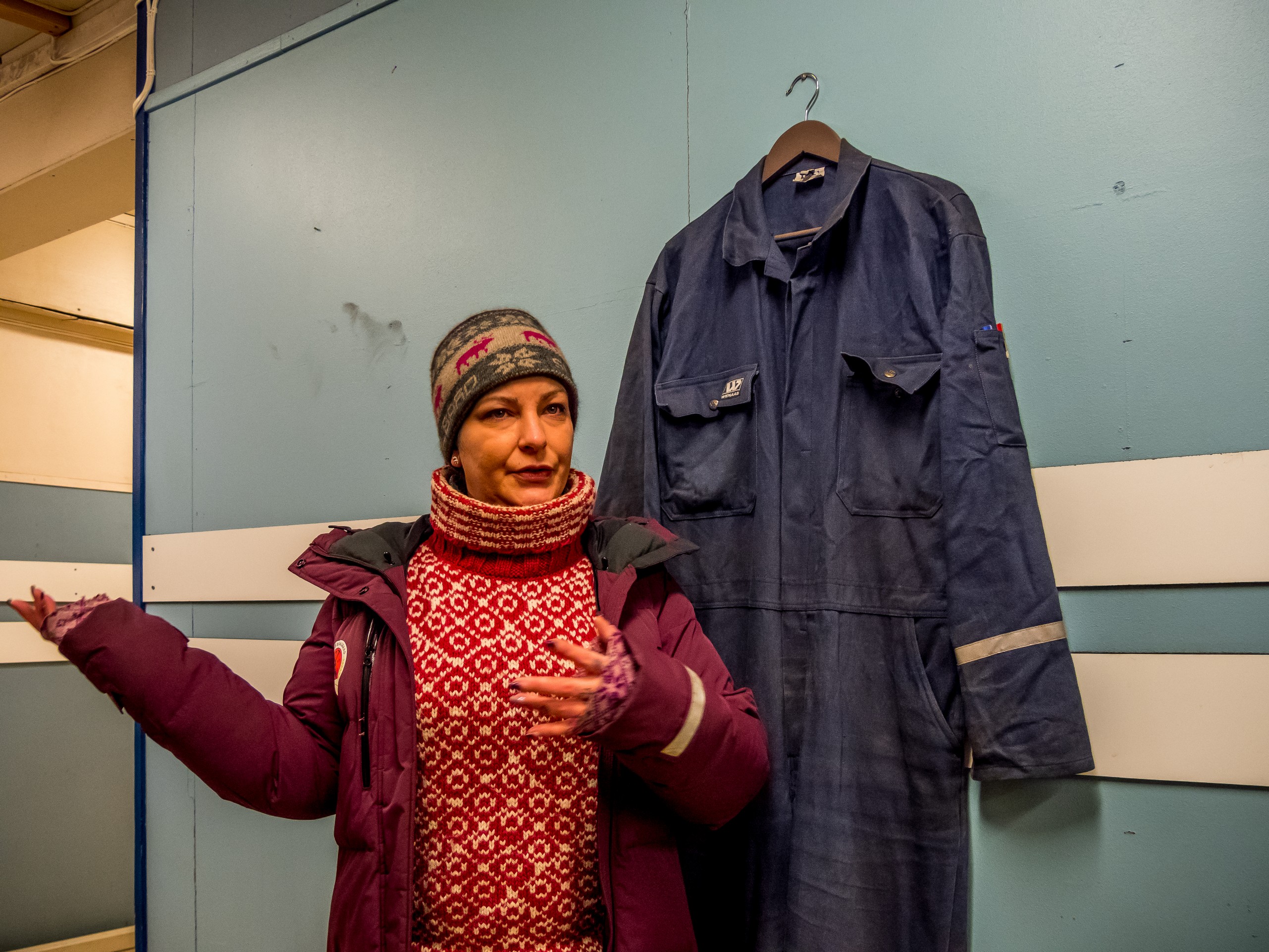 Nous entrons et à l’intérieur, tout est comme figé dans le temps. Un matin de 1996, on a annoncé aux mineurs qu’ils ne prendraient pas leur service et que la mine serait fermée. Elle a donc été abandonnée en l’état. On dirait que les mineurs et le reste du personnel pourraient revenir d’un moment à l’autre et reprendre leur travail. C’est une vraie capsule temporelle. Dans un des anciens espaces de repos, notre guide nous explique l’histoire minière de Spitzberg et particulièrement celle de cette mine. Sur un coin de la salle, une affiche signale en termes un peu lestes que les mineurs sont priés de ne pas laisser la salle en désordre. C’est la dernière intendante, une maîtresse-femme, qui faisait la loi ici. La mine était en effet un monde d’homme bien que ces dernières années aient vu un nombre croissant de femmes choisir cette carrière. Cela n’a pas été sans résistances mais si les mineuses faisaient leurs preuves, elles gagnaient le même respect que celui aux collègues masculins. Si vous allez boire un verre au Karlsberger Pub, vous verrez en photo quelques unes de ces femmes qui travaillent dans les boyaux de la montagne.