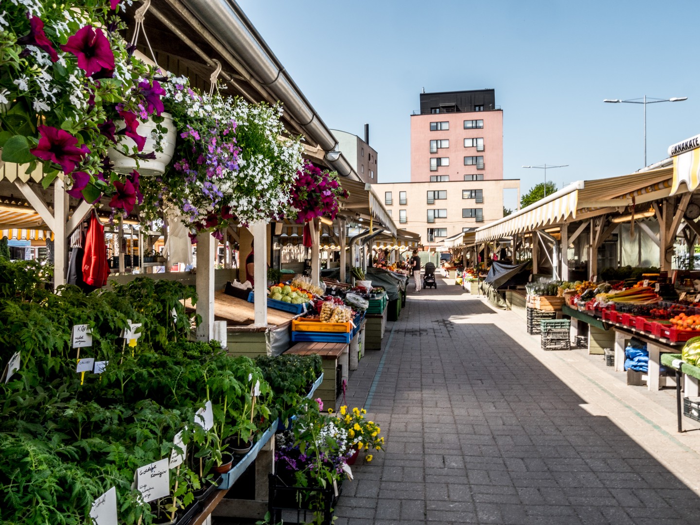 Le premier endroit que l’on vient visiter ici, c’est le marché. Le marché de Nõmme existe depuis 1908. Cela fait donc plus de 100 ans que les producteurs locaux viennent y vendre leurs fruits, légumes, herbes, viandes et poissons, leurs fleurs et plantes ornementales ou pour le potager. Ouvert du lundi au samedi, le jour de ma visite en pleine semaine, tout était d’un calme olympien mais il flottait dans l’air une odeur que je vais souvent retrouver à travers l’Estonie : celle de l’aneth, qu’on met à toutes les sauces (dans les chips, les soupes, les salades …)
