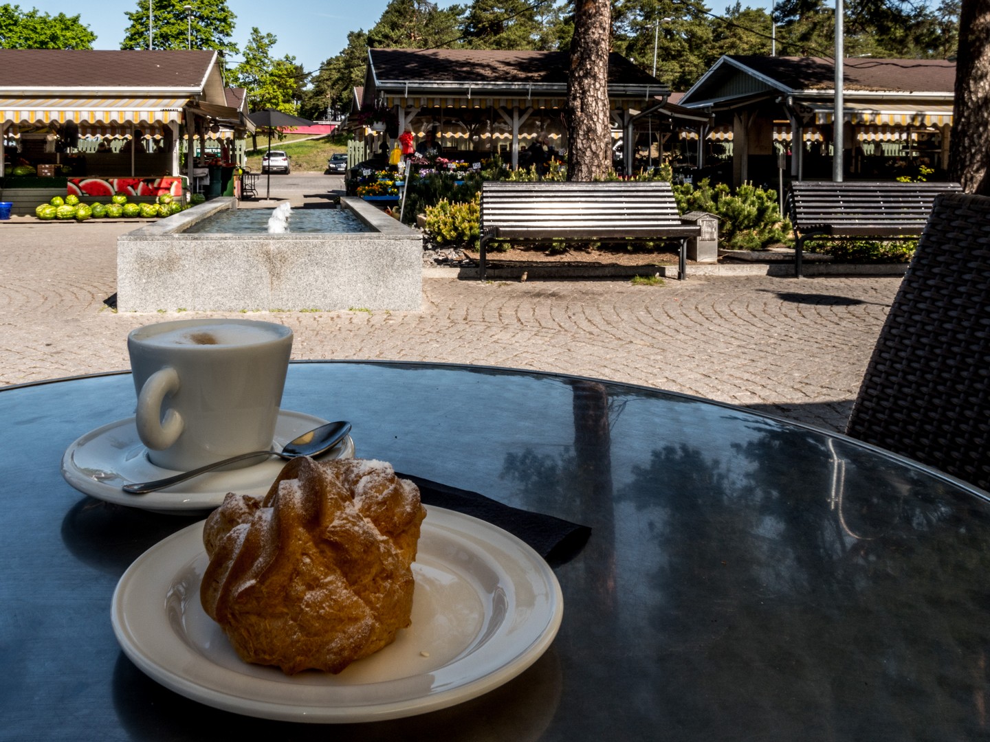 En plus des stands classiques, on y trouve aussi des petits restaurants et cafés… Impossible de résister : je tombe sur une boulangerie-pâtisserie dont la petite terrasse donne juste devant la fontaine du marché. Le temps de déguster un bon café et une espèce de chou à la crème, et c’est reparti !