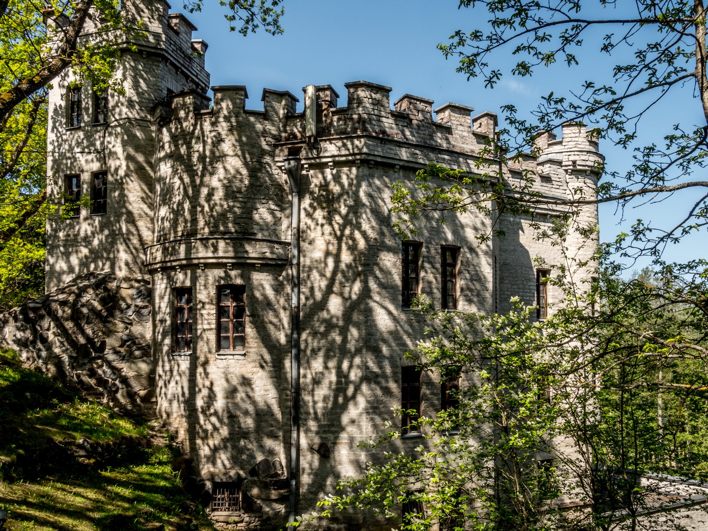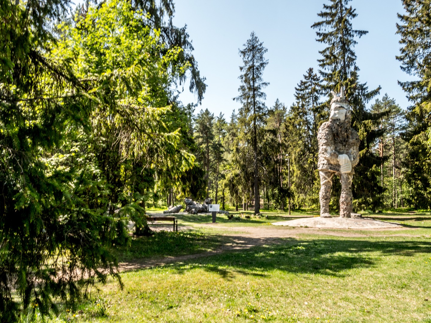 Je ne vais pas tarder à rencontrer la statue de Nikolaï von Glehn. Dans un grand geste, il semble inviter les gens à venir visiter ce qui était ses terres. Von Glehn était plutôt excentrique. C’est lui-même qui a dessiné le plan de son propre château et dans le parc du château, y a fait élever deux statues géantes. Celle de Kalevipoeg, mythique héros estonien et d’un dragon (que tout le monde appelle « le crocodile », la ressemblance avec l’idée qu’on se fait d’un dragon n’est pas super-évidente). Le château von Glehn s’élève sur un petit promontoire et ressemble à un château médiéval écossais avec ses pierres gris pâle. S’il a l’air relativement neuf, c’est tout à fait normal. En ruines jusque dans les années 60, une longue restauration de plus de 10 ans pris fin en 1977. Le château est aujourd’hui la propriété de l’Université technologique de Tallinn qui le loue pour différents évènement (ou pour des tournages, comme ce fut le cas lorsque j’ai découvert le château). Il ne se visite donc pas. Le cimetière de la famille von Glehn se visite aussi, mais j’ai l’ai loupé ! N’y cherchez pas la tombe de Nikolaï. Il est mort loin de chez lui en 1923, au Brésil, alors qu’il y était venu pour soigner son fils malade. Son fils allait le suivre dans la tombe peu de temps après.