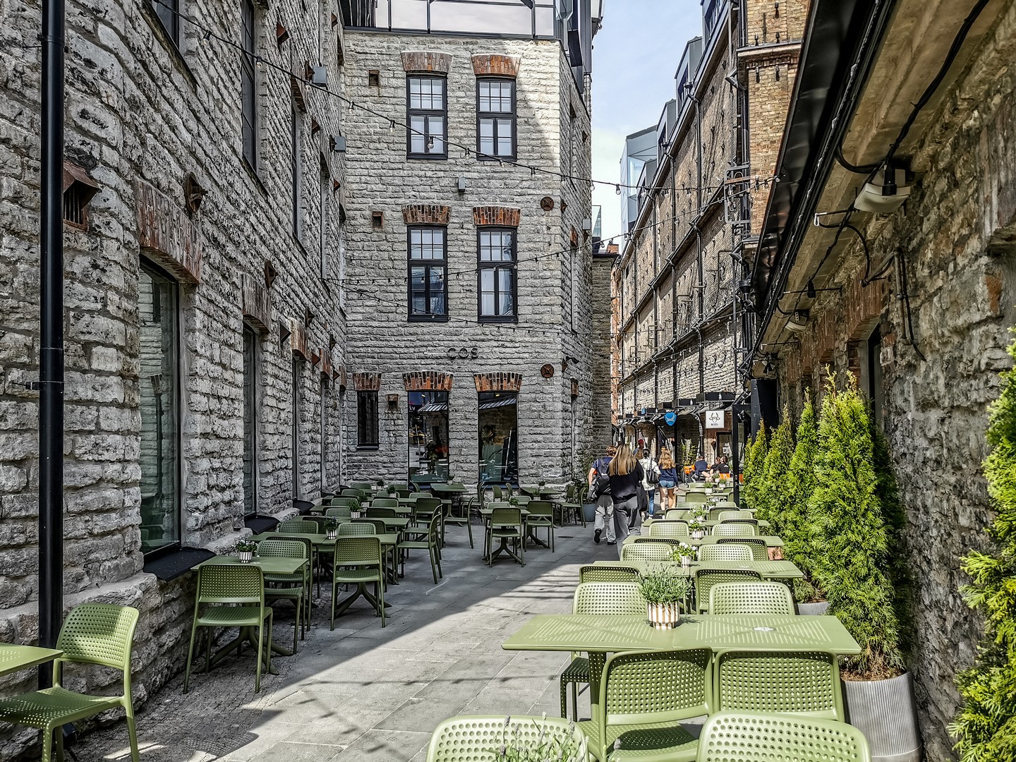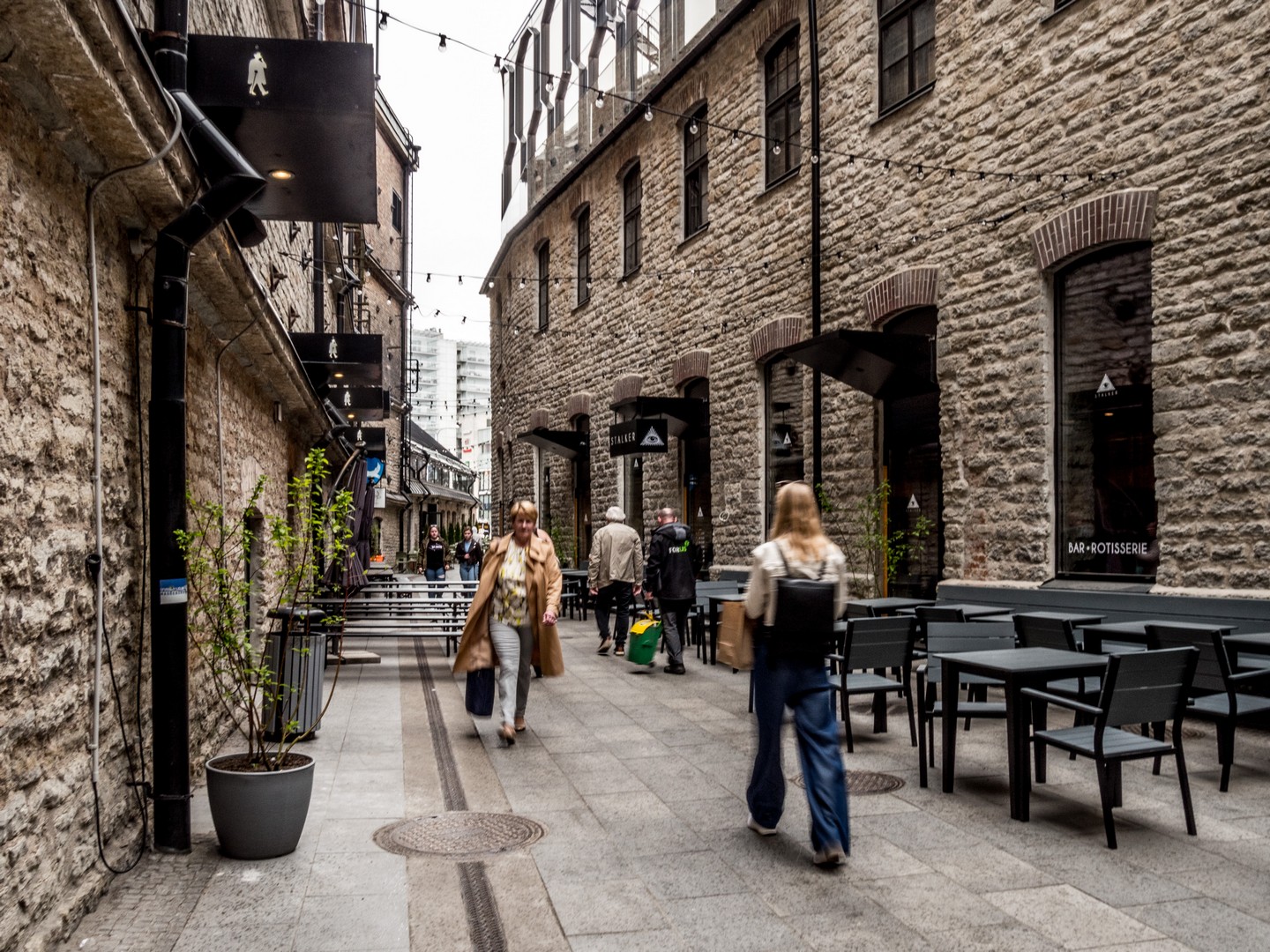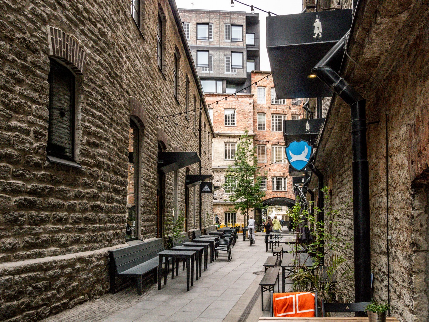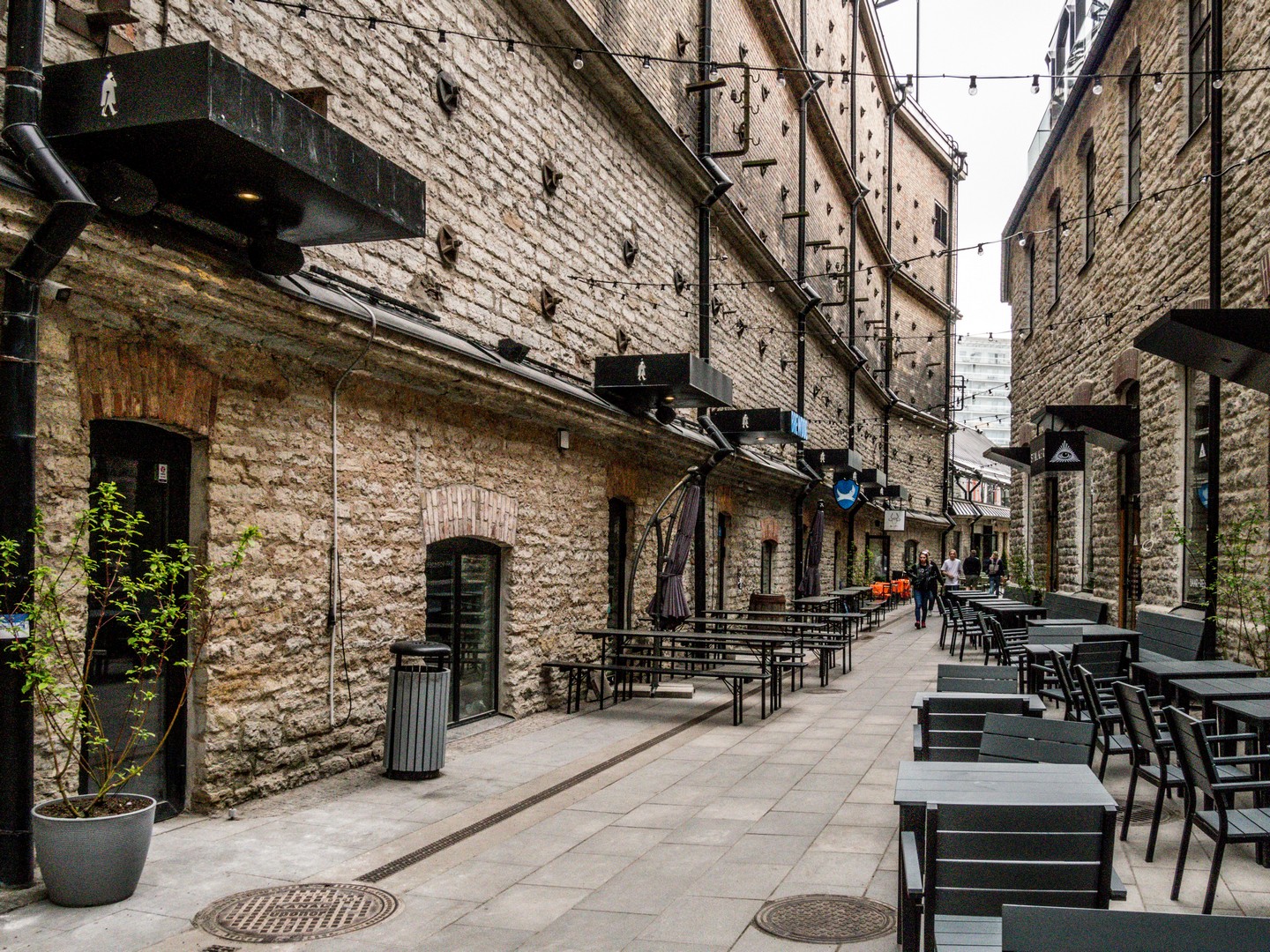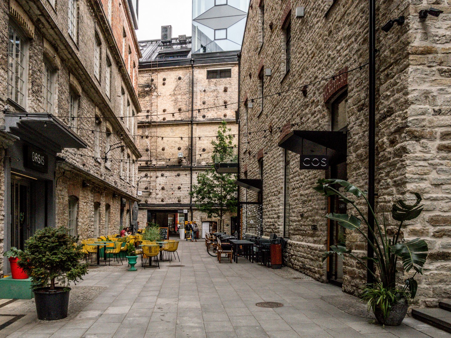 Après quelques années après la chute de l’URSS, une fois l’indépendance retrouvée, Tallinn dessine un grand projet pour le quartier de Rotermann avec quelques lignes conductrices ; conserver le patrimoine original en le rénovant, tout en l’embellissant de gestes architecturaux contemporains et que la hauteur des bâtiments ne dépasse pas celle des silos à grain. Près de 30 ans après le début du projet, Rotermann ressemble maintenant à un quartier rétrofuturiste où on trouve, entre autres, le Musée d’architecture d’Estonie, des bars, des cafés, des restaurants, un centre commercial, un méga-complexe de cinéma et des appartements… Perdez-vous dans les allées entre ces grands bâtiments de briques et de pierres. L’atmosphère y est incomparable, mais surtout très photogénique !