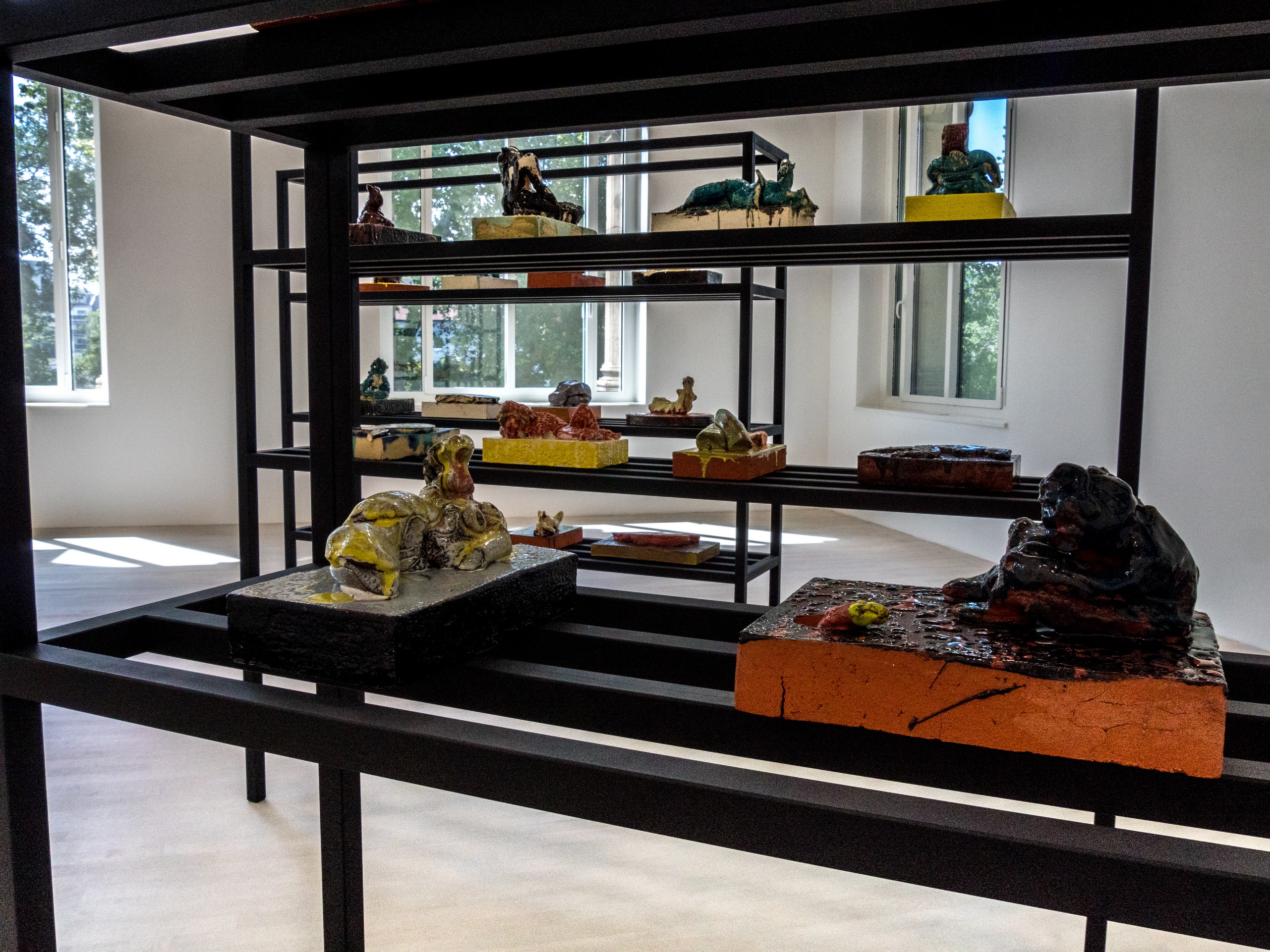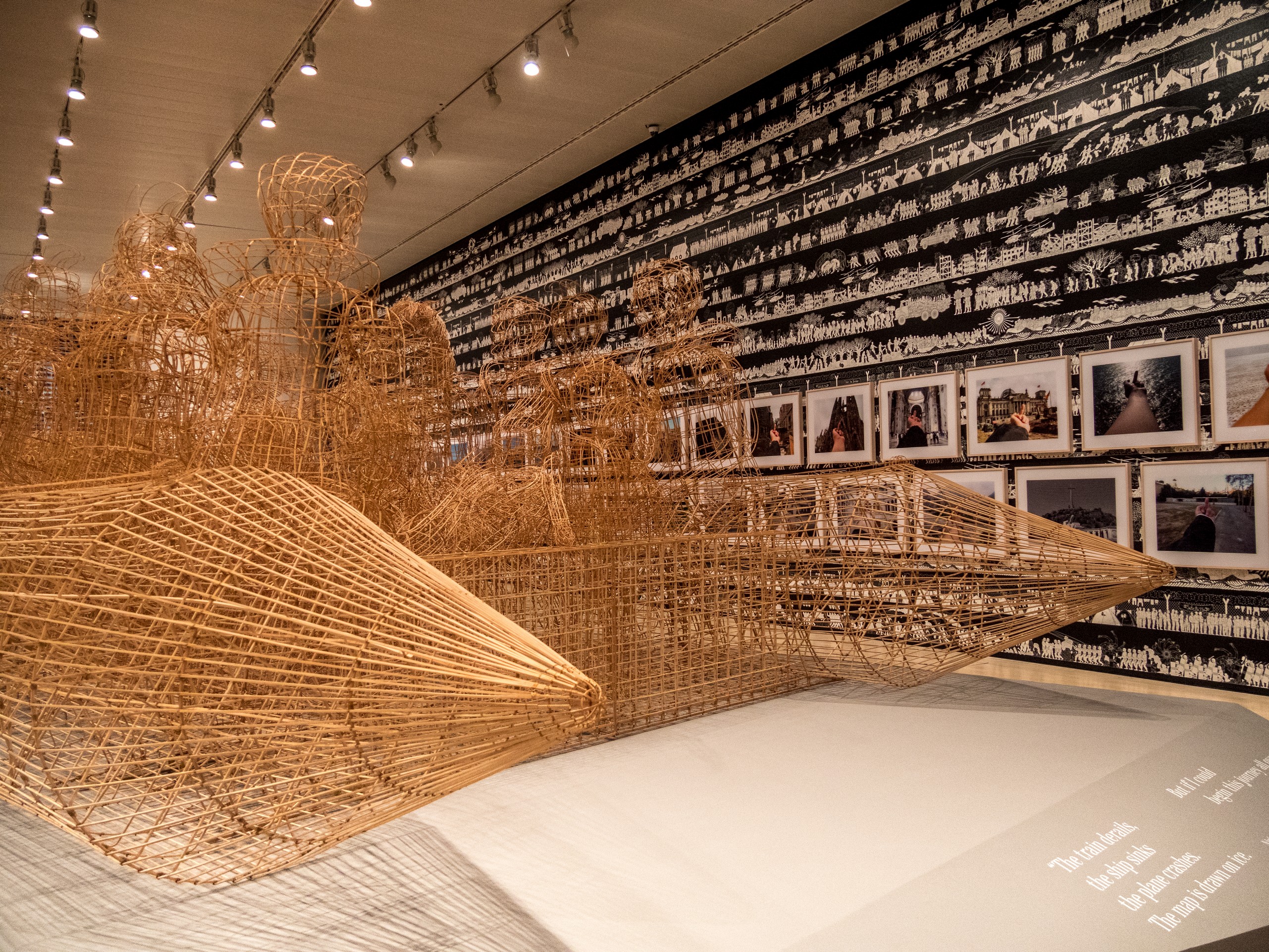 Comme les prévisions météo ne sont pas très engageantes pour la matinée, j’ai opté pour un démarrage culturel au K21, l’une des implantations du Kunstsammlung Nordrhein-Westfale (musée d’art du Land de Rhénanie-du-Nord-Westphalie). C’est que Düsseldorf compte énormément de musées et cette année, c’est vraiment le moment de visiter le Kunstsammlung puisqu’un des artistes contemporains les plus médiatisés, Ai Wei Wei, y expose. Une partie de son exposition est dans un des autres bâtiments du complexe, le K20 mais il y a déjà énormément à voir : des installations, des photos, des sculptures, de la céramique… le tout tournant autour du thème de la guerre, de la migration (Ai a passé beaucoup de temps dans un camp de migrants en Grèce) mais aussi, l’emprisonnement, le sien. Il y a vraiment beaucoup à digérer dans cette expo, sans oublier les expos permanentes dont les sujets sont tous très troublants et sombres.