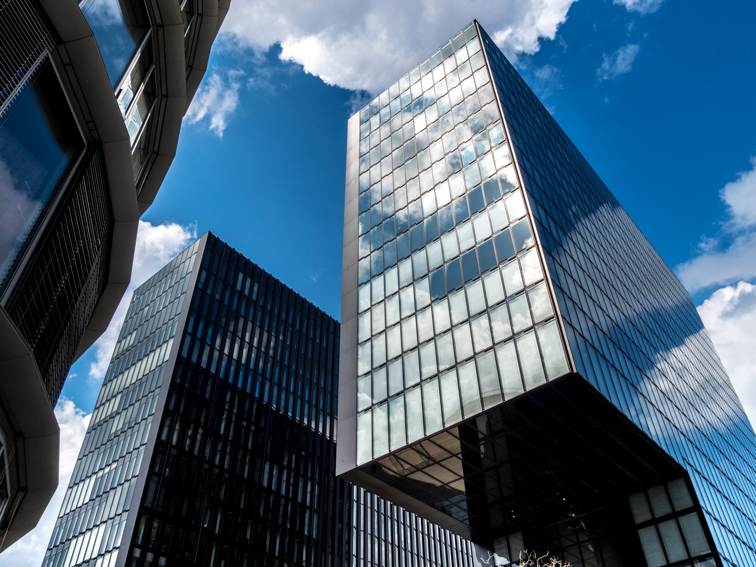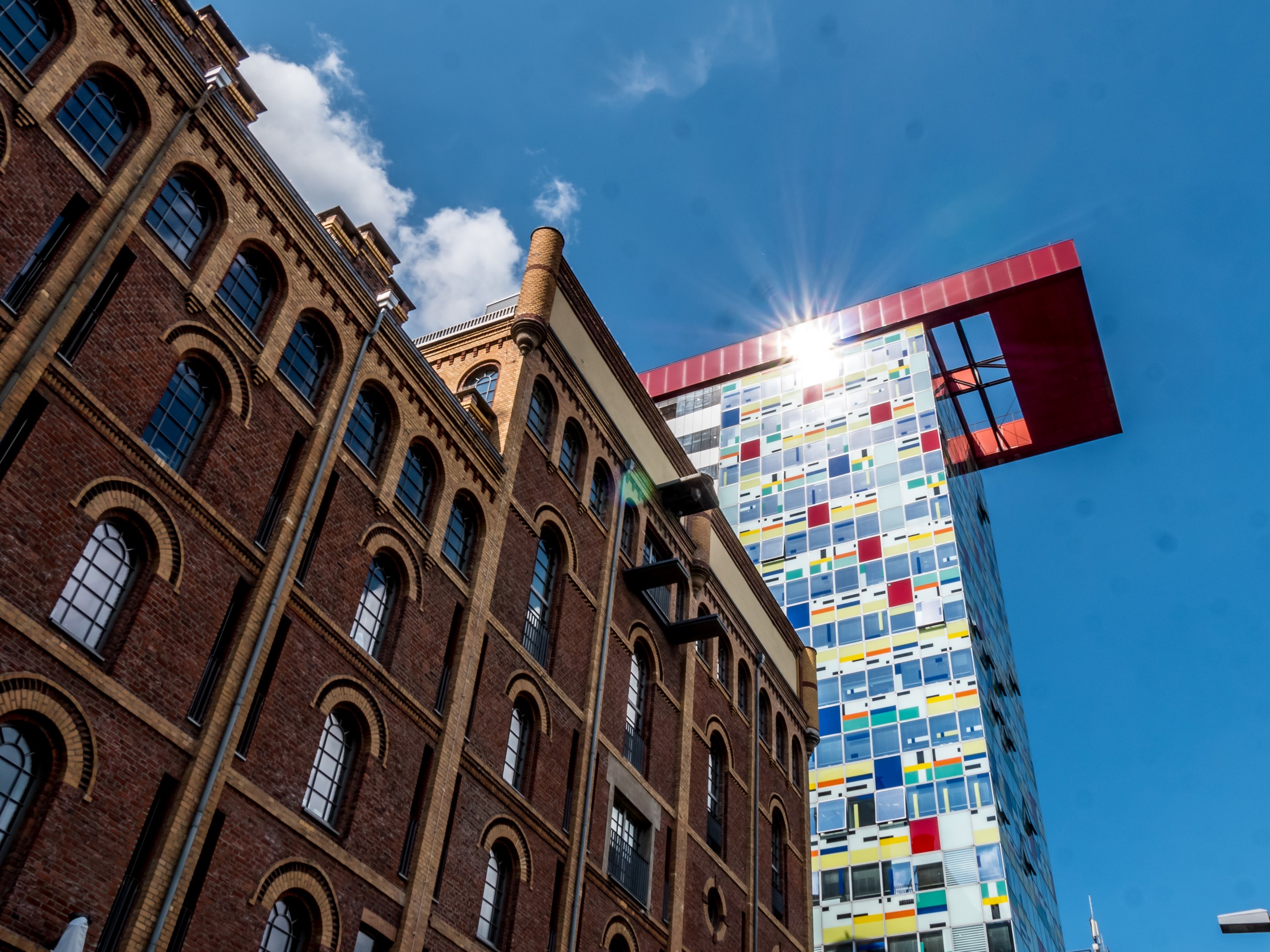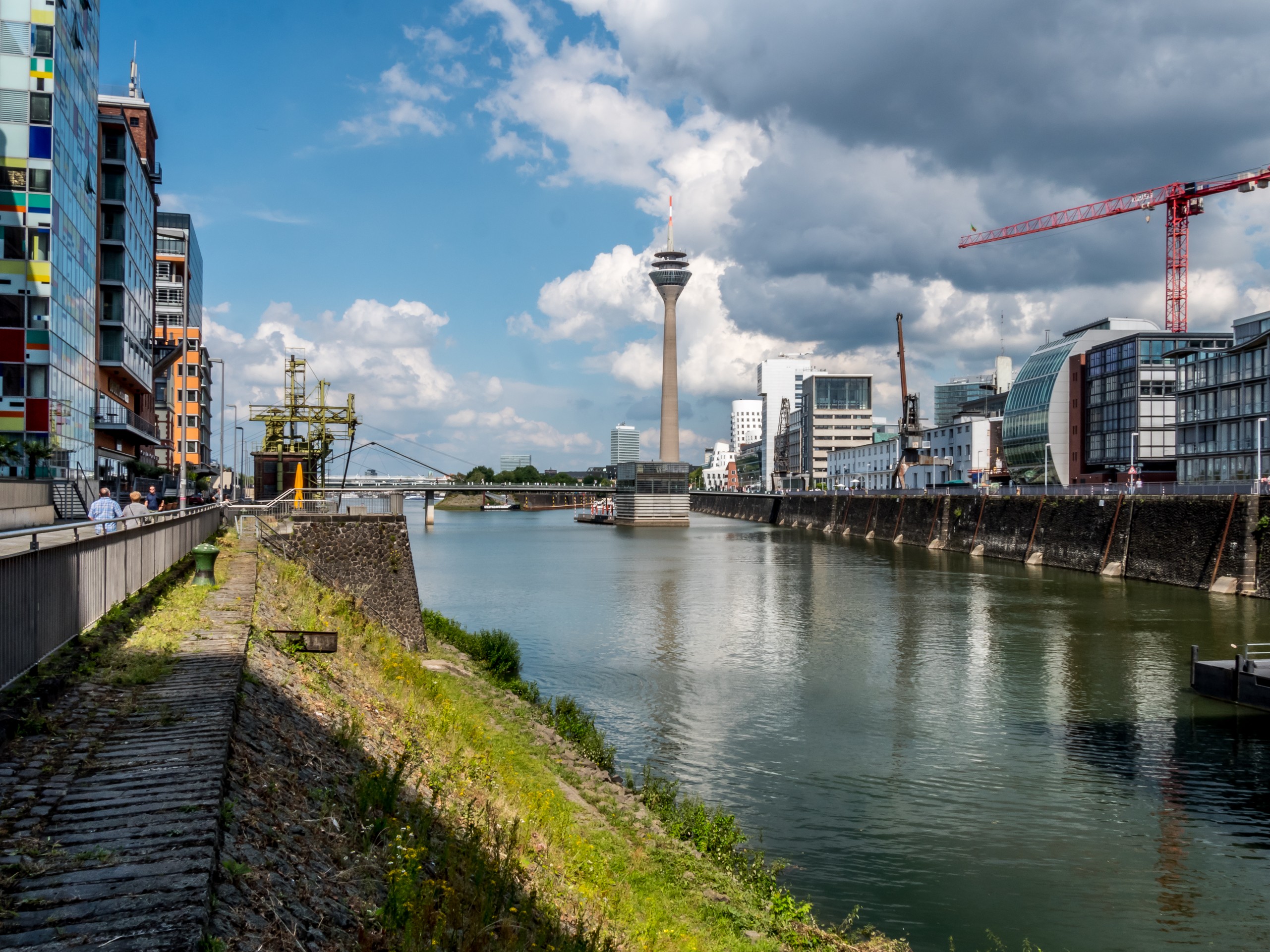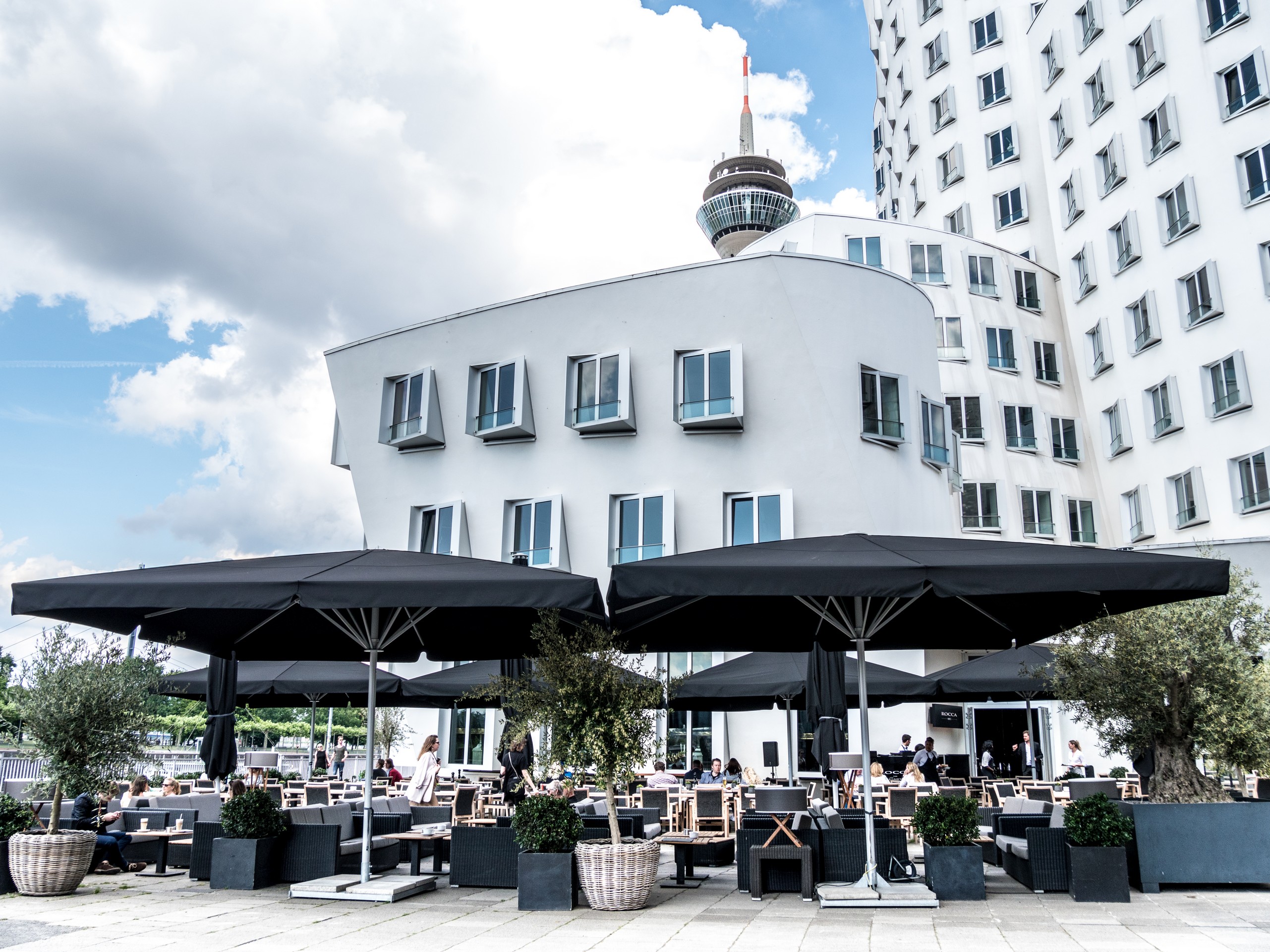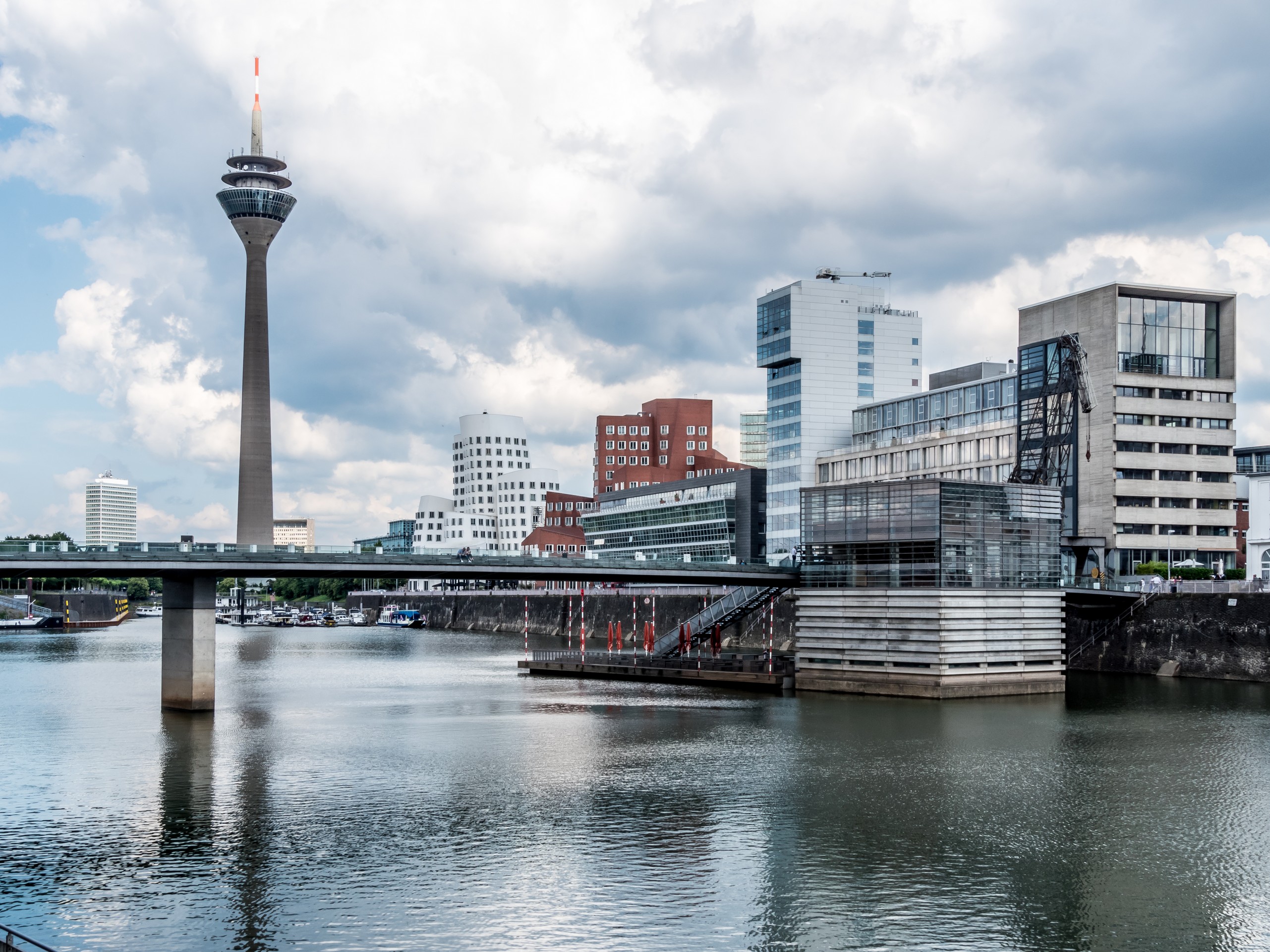 Je m’engouffre dans un métro, puis dans un tram (j’ai déjà acquis quelques repères en ville) pour retrouver un quartier plutôt insolite de Düsseldorf : Medienhafen.
