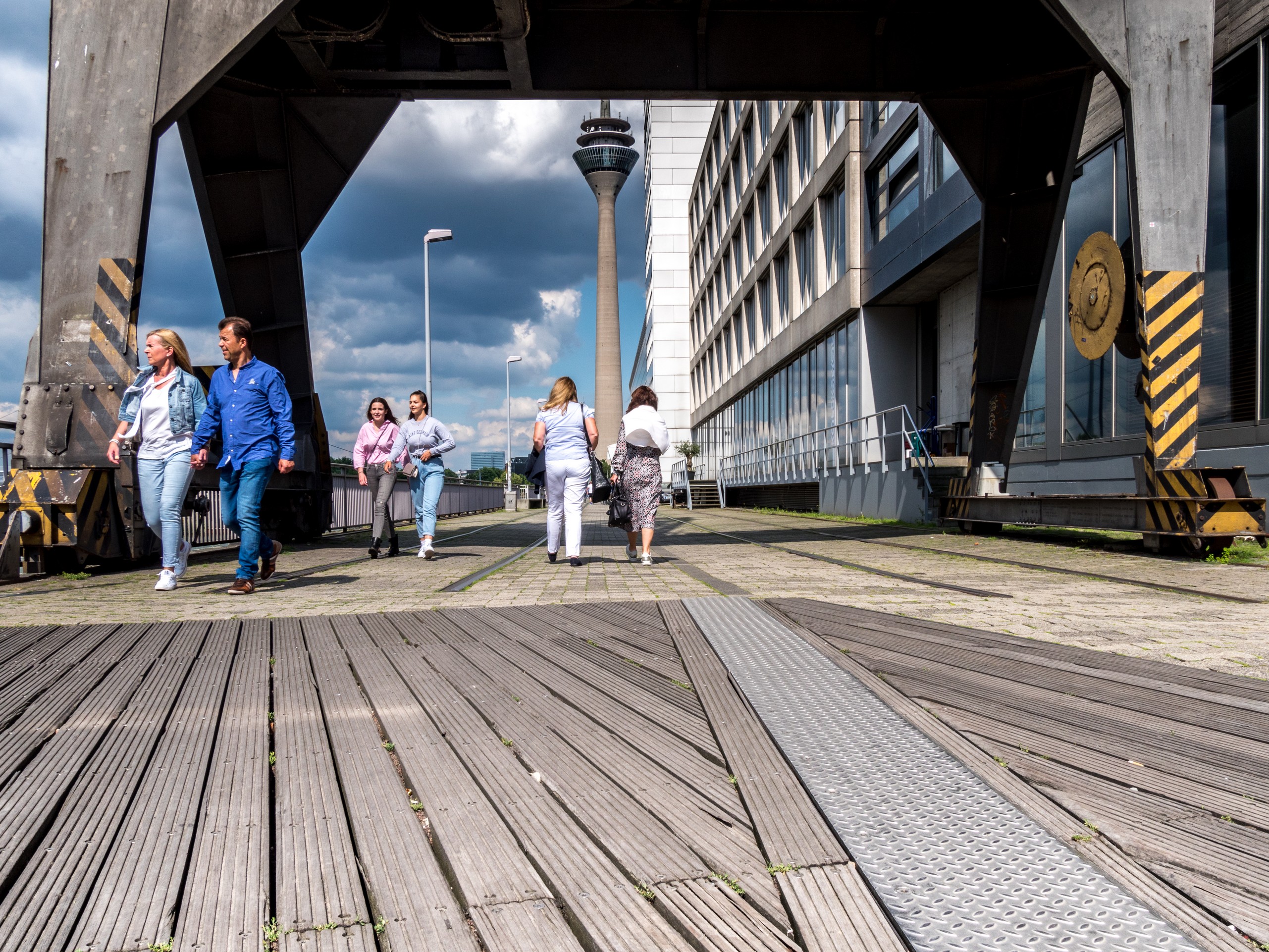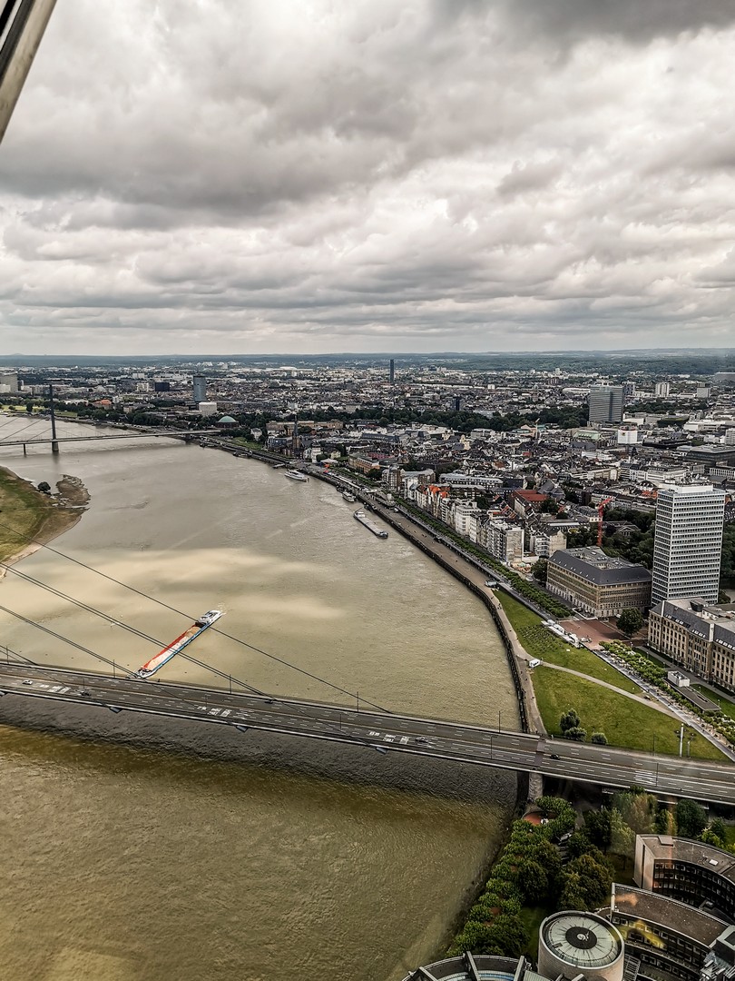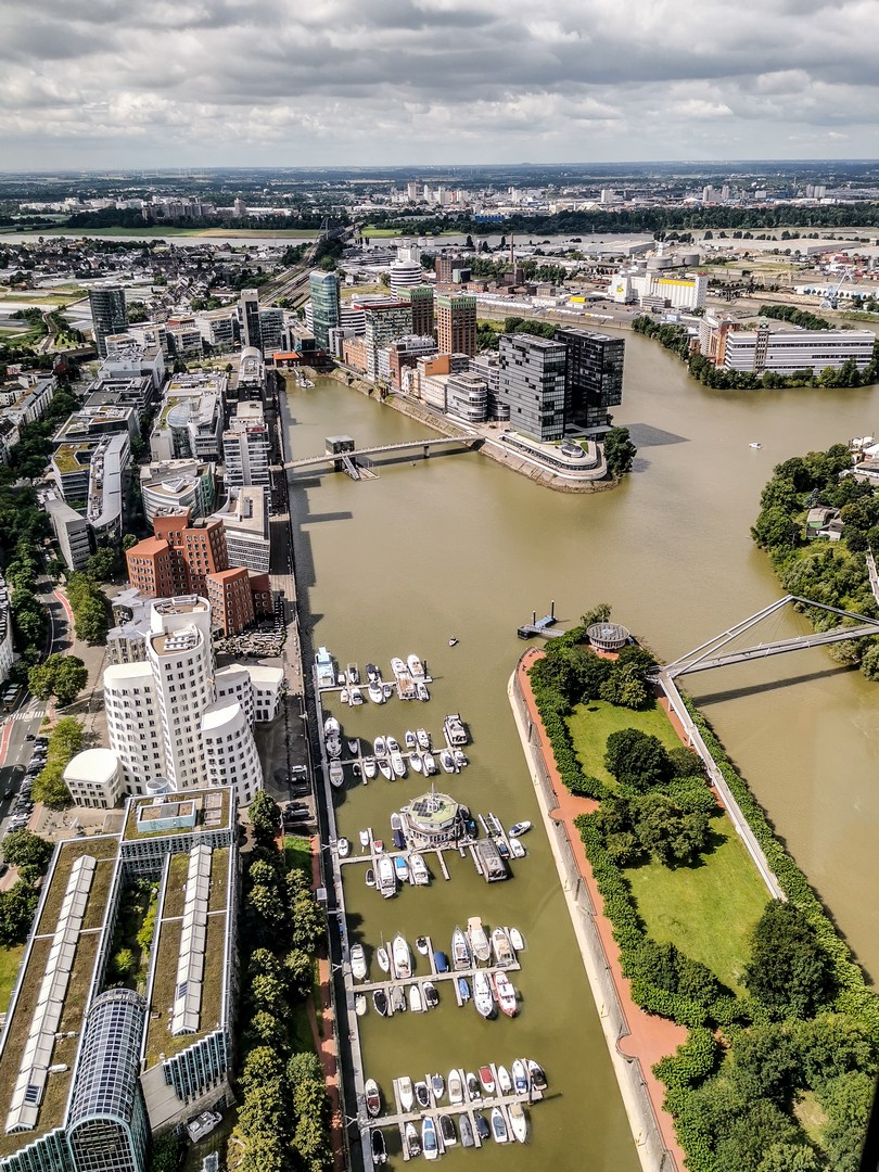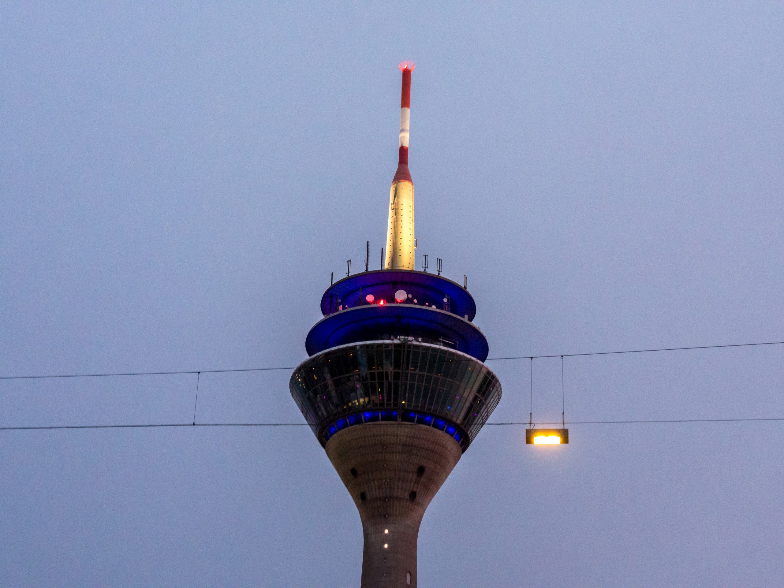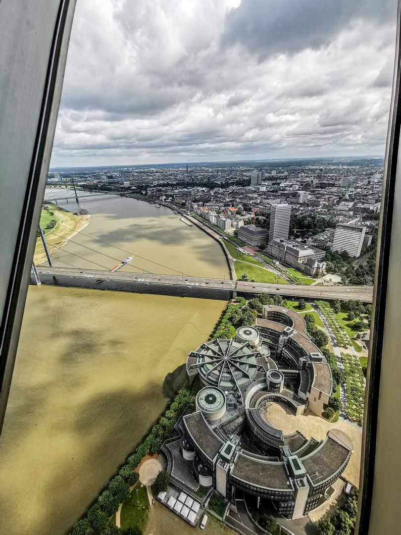 On ne peut pas la manquer tellement elle est grande, elle marque la skyline de Düsseldorf de sa silhouette de soucoupe volante posée sur un bâton et on peut y grimper ! Un ascenseur vous emmène à toute vitesse au sommet de la tour d’où on a une vue splendide (et à 360° évidemment) d’abord sur le Medienhaffen, le parlement de Rhénanie du Nord-Westphalie puis sur la vieille ville et la banlieue de Düsseldorf et plus loin encore, jusqu’en Belgique par temps clair. Faîtes-vous plaisir et profitez-en pour prendre un verre et manger un bretzel ou une part de gâteau au café du poste d’observation.