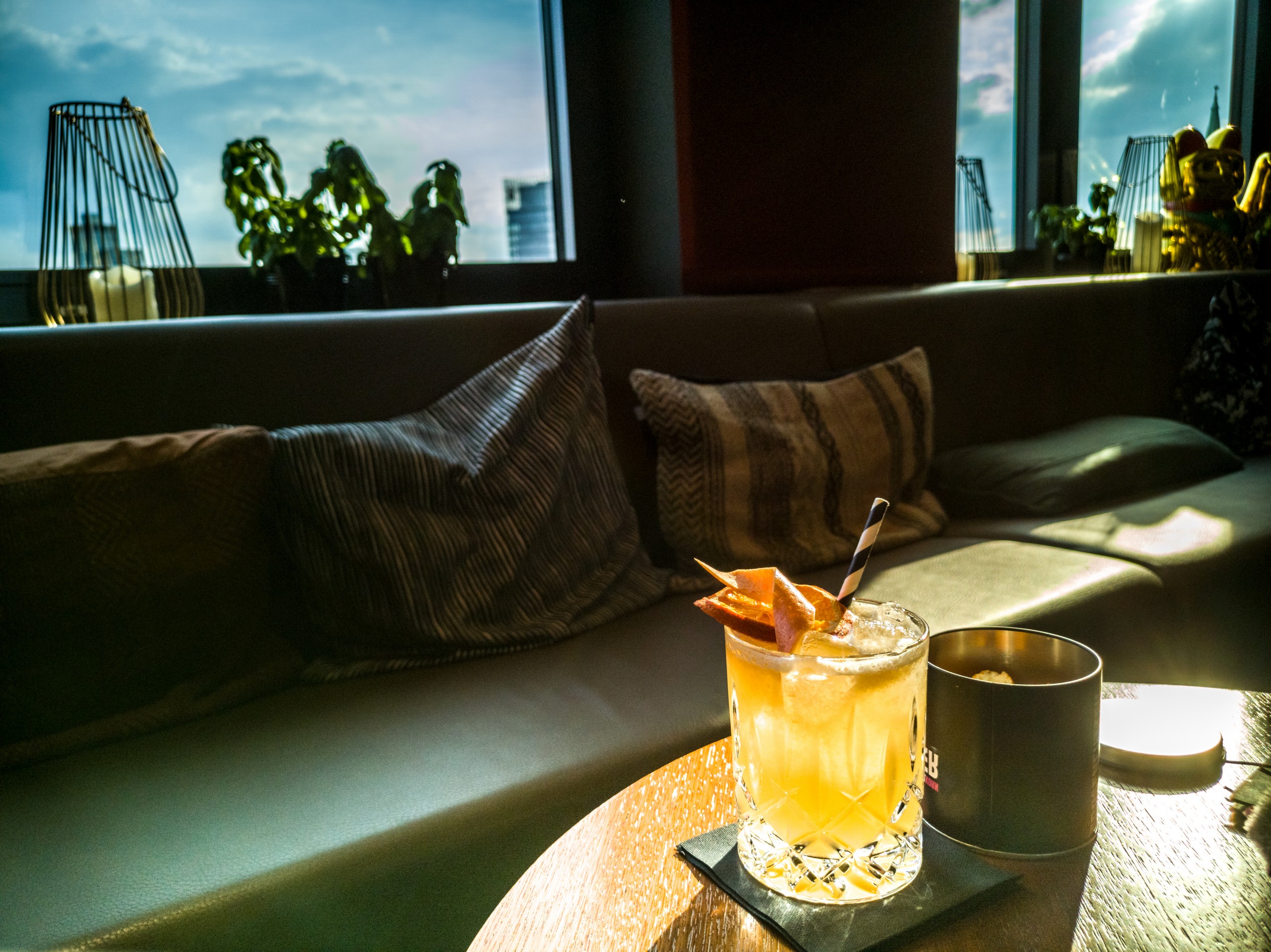 C’est l’air dégagé avec le pas assuré de celle qui serait une cliente (normal, des années d’entrainement à aller squatter des toilettes de lobbies d’hôtels) que j’entre au Me and All Hotel. C’est au dernier étage que je me rends, au lounge qui surplombe toute la ville et malgré l’heure plutôt avancée pour l’apéritif (il est 19h, nous sommes samedi), je suis… la seule cliente. J’ai l’impression que le beau temps a mis tout le monde dehors ! Du coup, le barman est au petit soin avec moi. Un cocktail artistiquement préparé va vite rejoindre ma table, servi avec des snack japonais (hommage au quartier) et franchement pas trop cher pour un lounge d’hôtel (11 Euros). Je n’ai plus qu’à m’installer nonchalamment sur le sofa et admirer la vue pendant que le soleil jette ses rayons sur mon verre. That’s the life ! Et je retiens également l’adresse parce que ce boutique hôtel m’a un peu tapé dans l’oeil (et les chambres sont à partir de 79 Euros avec petit déjeuner pour une personne, 58 sans petit-déjeuner).
