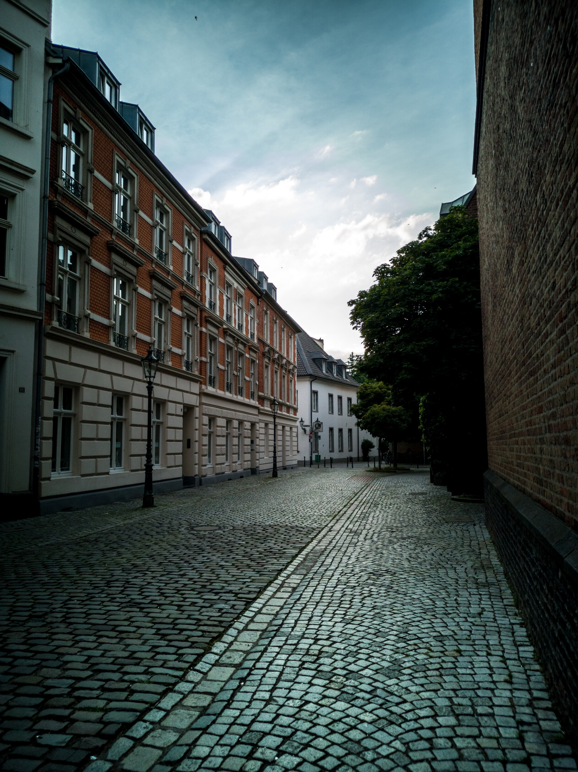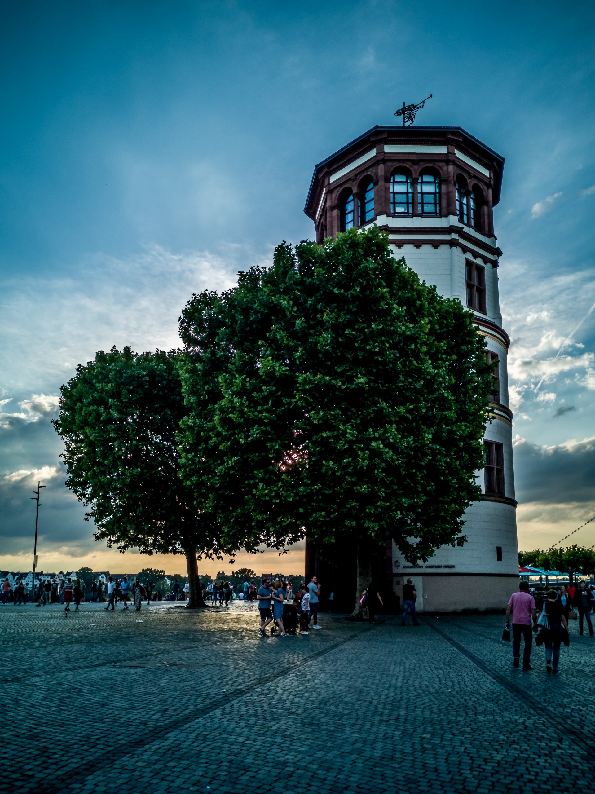 Je reprends le chemin du U-Bahn. Pas de perte de temps ! Même si les nuits d’été sont longues, j’ai envie de pouvoir profiter de Altstadt tant que le soleil passe encore au niveau des toits. Ici, je retrouve le charme des villes allemandes et de leur architecture caractéristique. Sur la place de l’hôtel de ville, y’a de l’animation. De la grosse animation puisqu’un concert punk fait sautiller les spectateurs. Qui l’eut cru dans une des patries de la musique électro ! Je vais me balader dans les rues, sans réel but, à m’imprégner d’une ambiance un peu plus calme que la veille, dans une partie plus résidentielle de la vieille ville. En passant, je saluerai la Schlossthurm, la Basilique Saint-Lambert… Je me laisse entraîner dans des petites rues, à travers des détours charmants et toujours me suivant, l’odeur pénétrante du tilleul qui est planté partout à Düsseldorf. Une odeur douce et poudrée, annonciatrice de l’été et qui sera maintenant associée à jamais à cette ville.